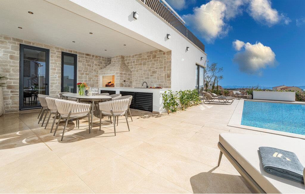 Udsigten er virkelig dejlig og går helt ud til Adriaterhavet. Nyd den i det fri fra morgenstunden på terrassen med en god kop kaffe, inden I tager dagens første tur i poolen. Udenfor finder I også mange gode sportsredskaber til både store og små, hvor I kan få pulsen op og køle jer ned i poolen efter behov i løbet af dagen. Rund en magisk sommerdag af med bøffer, grillspyd og en kølig drink under aftensolen, mens I lægger planer for de kommende dage.