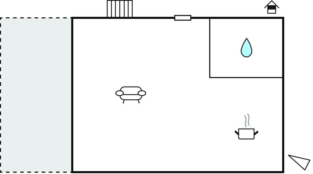 Komb. spisestue/køkken 25m2 - 2 Sovepladser. (Dobbeltseng(e)).
