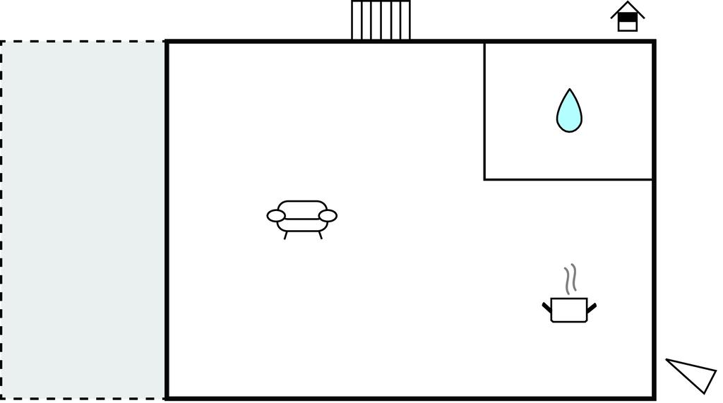 Komb. spisestue/køkken 25m2 - 2 Sovepladser. (Dobbeltseng(e)).