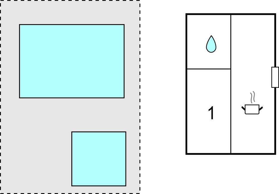 Opholdsstue/køkken 20m2 - 1 Soveplads. (Sofa, madras eller lignende).