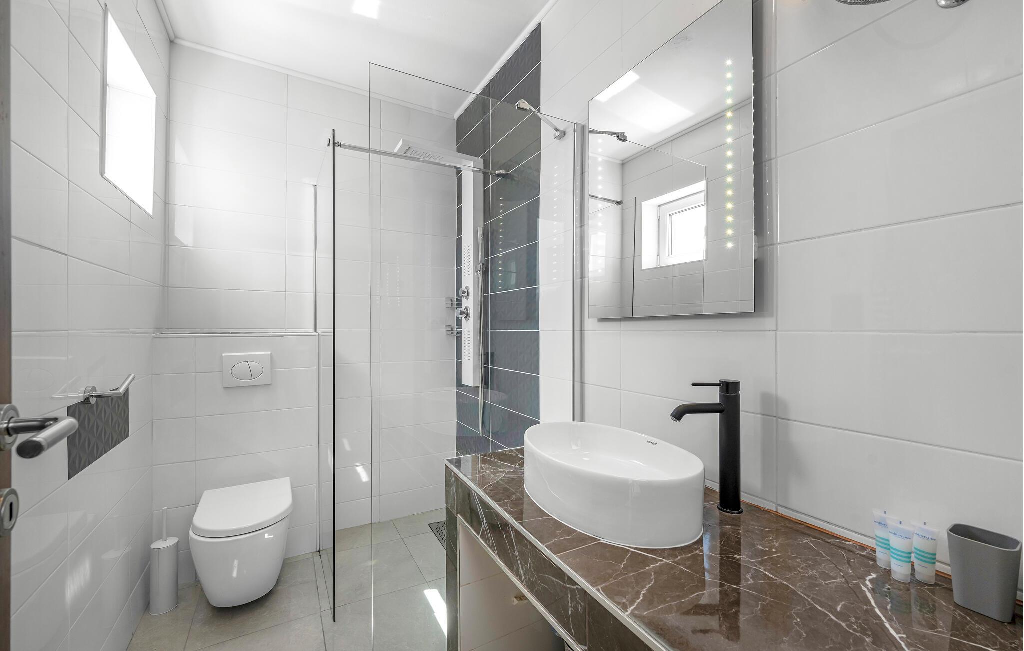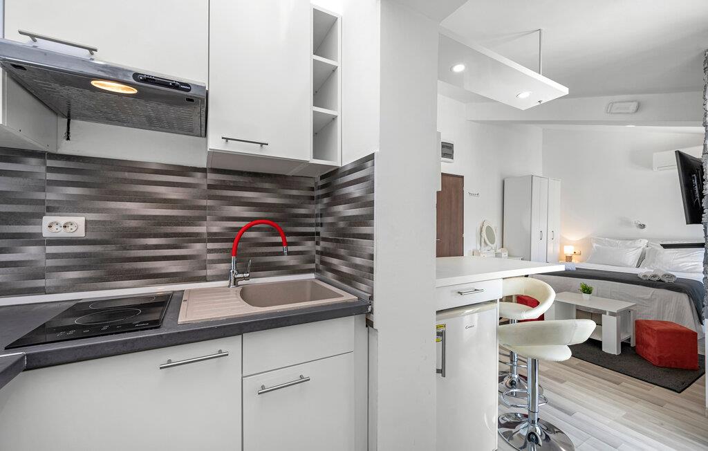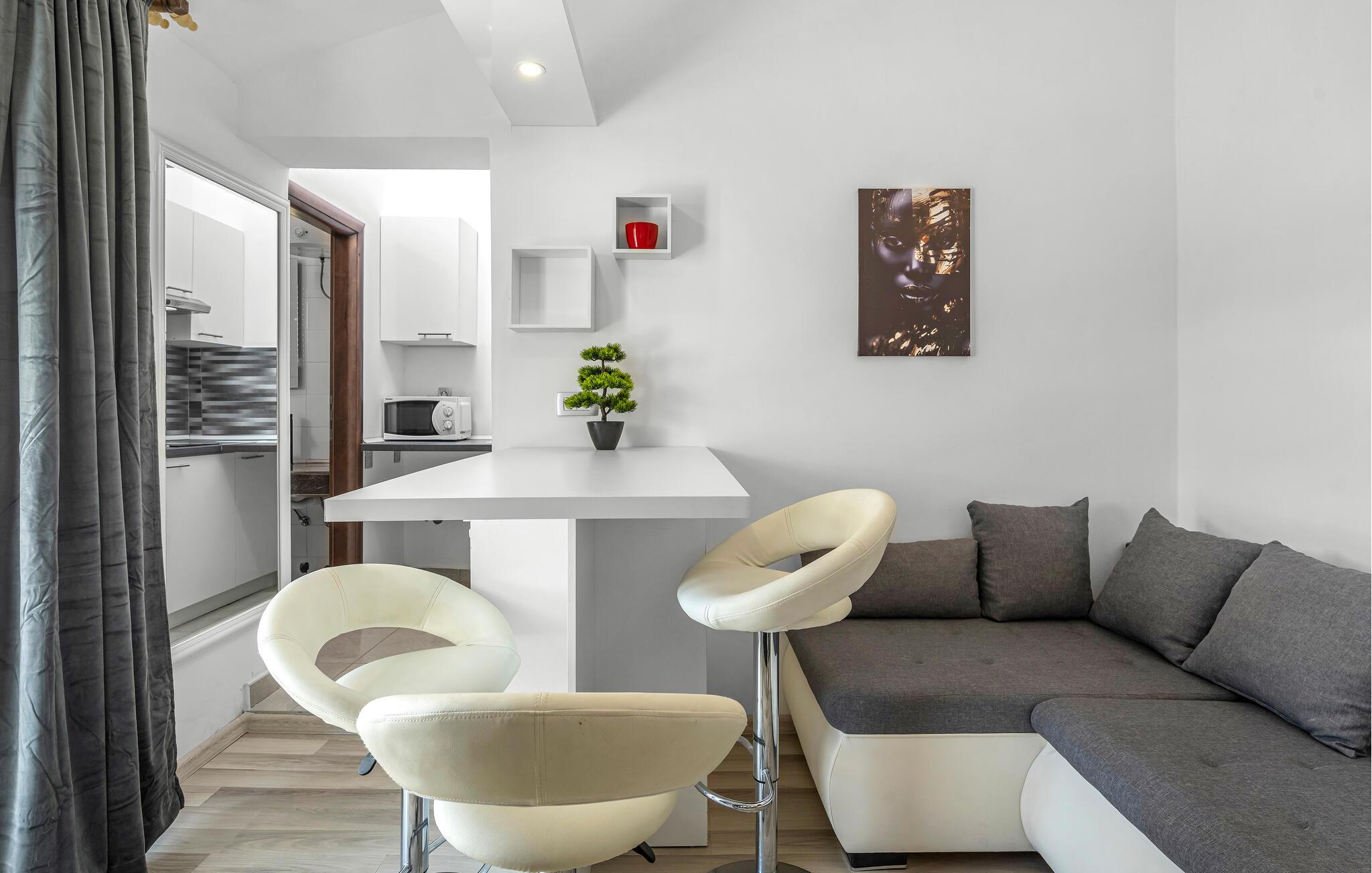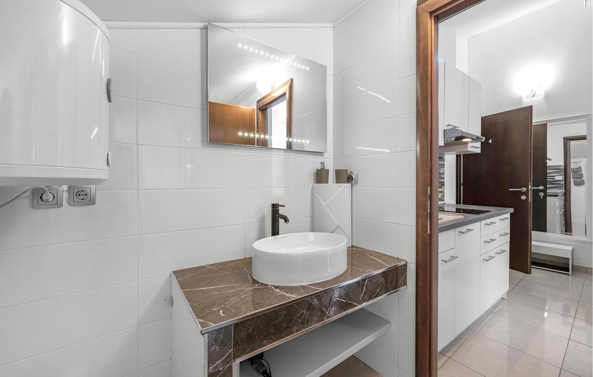 Den livlige kystby Vodice er kendt for sine smukke strande og det klare vand. Lejligheden ligger kun få minutters gang fra Plave-pladsen og stranden Hangar. Byens centrum indbyder til en gåtur med caféer, restauranter og små butikker, og den nærliggende marina er perfekt til en spadseretur langs vandet. Udflugter til Nationalpark Krka eller Kornati-øerne byder på uforglemmelige naturoplevelser og er let tilgængelige herfra.