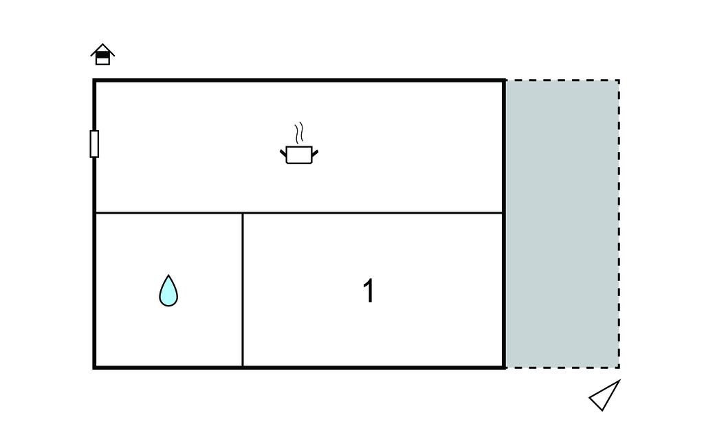 Komb. spisestue/køkken 20m2 - 2 Sovepladser. (Sofa, madras eller lignende).