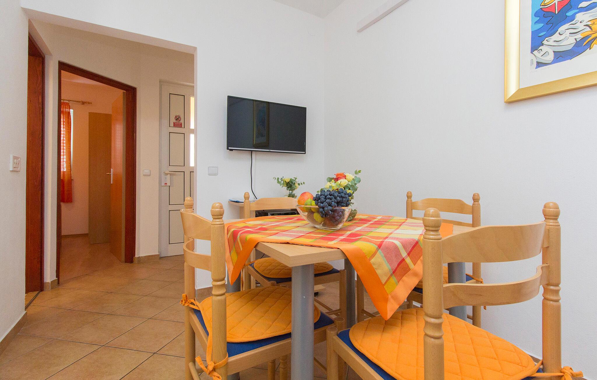 Tilbring en solrig ferie i denne charmerende ferielejlighed nær stranden. Kun en kort gåtur fra stranden kan I hygge jer i denne hyggelige ferielejlighed, mens I lader hverdagen forsvinde. Tilbered lækre måltider i det praktiske køkken og sæt jer ved det indbydende spisebord. Her kan I nyde fredelige aftener med brætspil eller en spændende film på sofaen. Jeres lille, skyggefulde terrasse er ideel til at starte dagen med en friskbrygget kaffe. Der er også en fælles grill på det fredede område, hvor I kan nyde et godt måltid efter en lang dag på stranden. Gå en tur gennem Vodice's smalle gader og nyd solnedgangen på den livlige havnepromenade. Tag en bådtur til Kornati Nationalpark, cykl rundt om Vrana-søen, eller oplev Krka Nationalpark med dens imponerende vandfald. Stop ved en hyggelig restaurant og prøv det regionale køkken.
