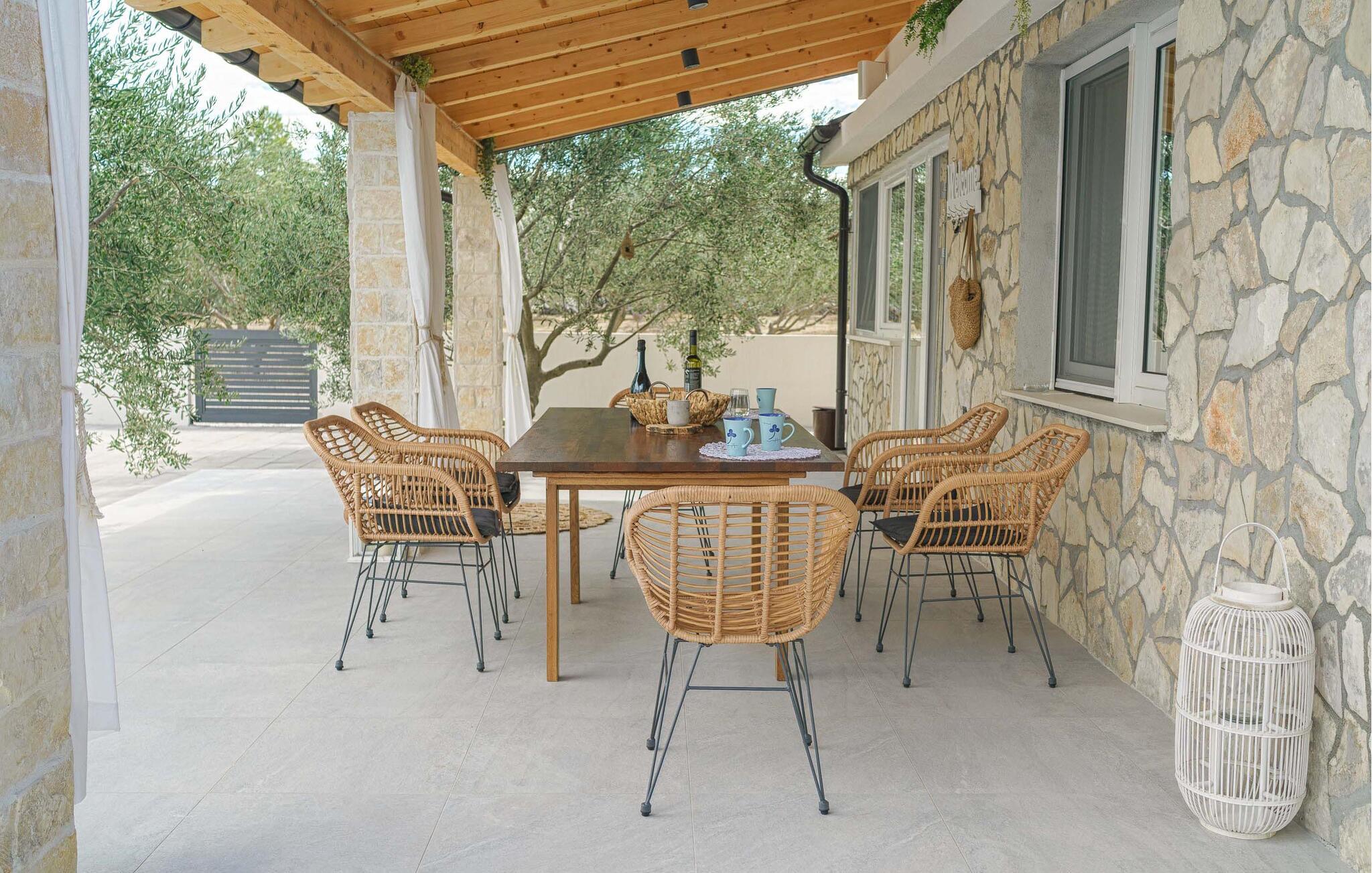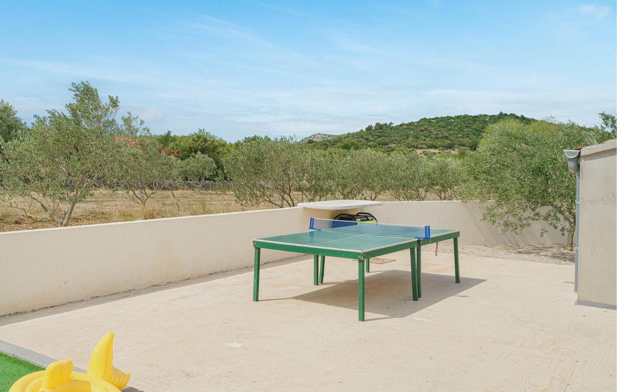 Tilbring en afslappende ferie i dette komfortable feriehus med pool og panoramaudsigt. Dette charmerende feriehus byder jer velkommen med et hyggeligt og smagfuldt interiør, hvor I vil føle jer hjemme fra den allerførste dag. Glæd jer til hyggelige måltider ved det indbydende spisebord, planlæg jeres aktiviteter sammen, og efter en lang dag kan I slappe af på sofaen for at streame en film eller slappe af med et brætspil. Jeres terrasse er det ideelle sted til en lækker morgenmad og mindeværdige grillfester. Forfrisk jer selv i poolen, når I har lyst, lad batterierne op på liggestolene, spil bordtennis, og lad jeres børn have det sjovt på trampolinen. Tag en bådtur til Kornatiøerne og snorkel i de turkisblå bugter omkring Tribunj og Srima. Tag en dagstur til Šibenik, og beundr den storslåede Sankt Jakobs Katedral. Beundr de imponerende vandfald i Krka Nationalpark, og smag frisk fisk og skaldyr og lokale vine i traditionelle konobas.