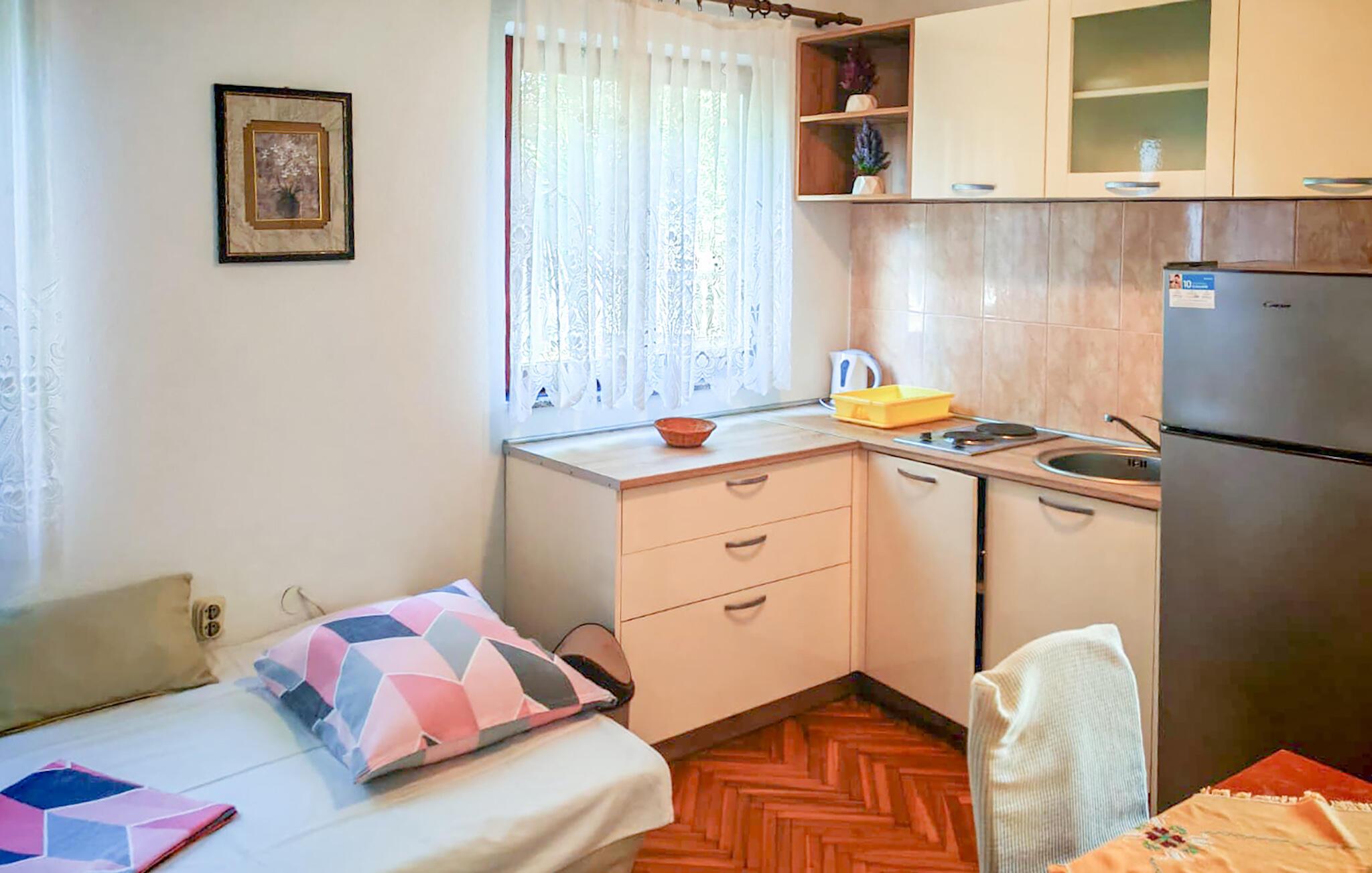 Tilbring afslappende dage i denne charmerende ferielejlighed med en fantastisk beliggenhed. Kun et stenkast fra Vodice centrum, men omgivet af fred og frodighed, tilbyder denne velholdte lejlighed i stueetagen den perfekte base for en varieret ferie når som helst på året. Tilbered lette måltider og planlæg jeres aktiviteter sammen. Efter en lang dag kan I finde tid til at se en film sammen eller nyde sjove spilleaftener. Server en lækker morgenmad på altanen, nyd den fredelige atmosfære med et glas vin om aftenen, eller få nye venner ved den fælles grill. Gå en tur til stranden eller tag en bådtur til øerne Prvic og Zlarin og snorkel i det krystalklare vand. Udforsk den gamle bydel i Šibenik med dens imponerende Jakobskatedral og vandr gennem de smalle gader. Beundr de imponerende vandfald i Krka Nationalpark, prøv regionale specialiteter i hyggelige konobas (traditionelle taverner), og nyd en drink ved solnedgang på Punta-stranden.