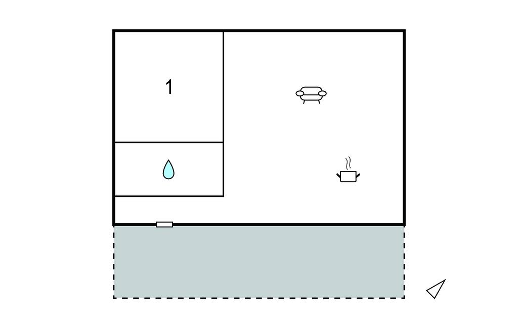 Opholdsstue/køkken 20m2 - 2 Sovepladser. (Enkeltseng(e)).