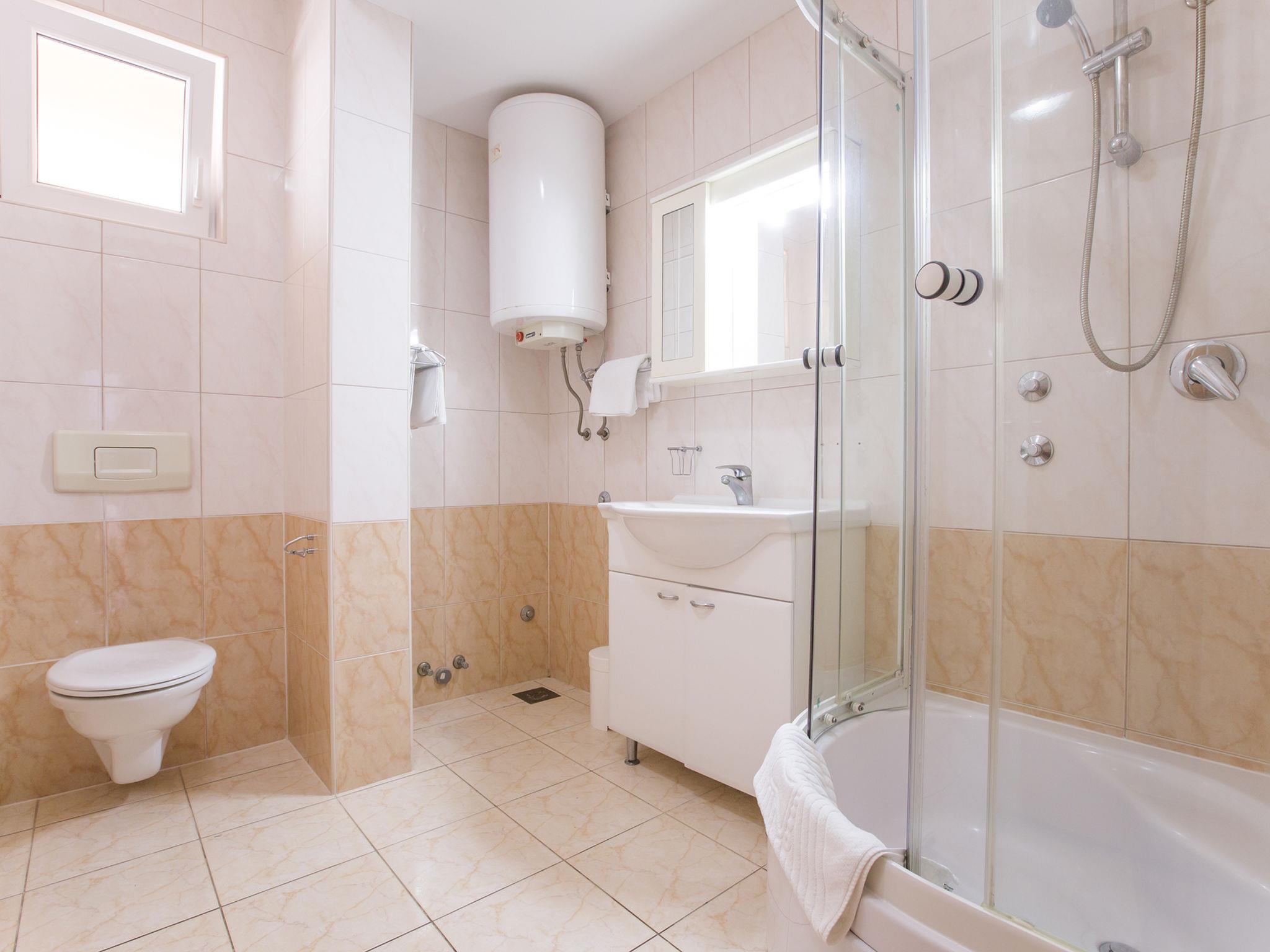 Child friendly, cosy resort "Matilde Beach Resort", surrounded by trees. 300 m from the centre of Vodice, in a sunny position, at the seaside, on the beach. For shared use: property (fenced) with trees, swimming pool (200 m2, depth 125 cm, seasonal availability: 15.May. - 30.Sep.) with internal staircase. Unconventional pool shape. Shower/WC in the pool area, children's pool, children's playground. In the complex: reception, restaurant, bar, internet café, laundry (extra), bicycle rental. Available: canoe, boat (extra). Breakfast (included). Parking at the house. Shop 500 m, bus stop 550 m, pebble beach, concrete beach 50 m. Surf school, sailing school 50 m, tennis 200 m, minigolf 800 m. Please note: nightclub/disco close by. The photograph shows a typical example. The apartments are situated 50-70 m from the sea and the beach.