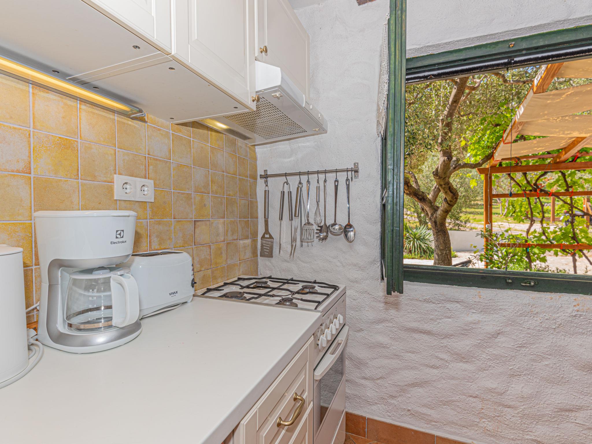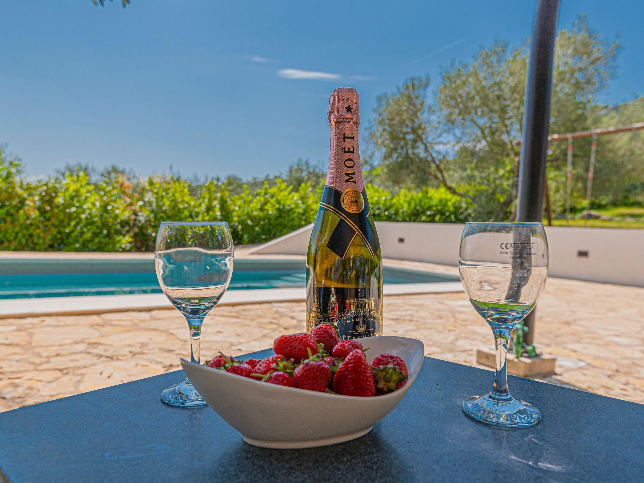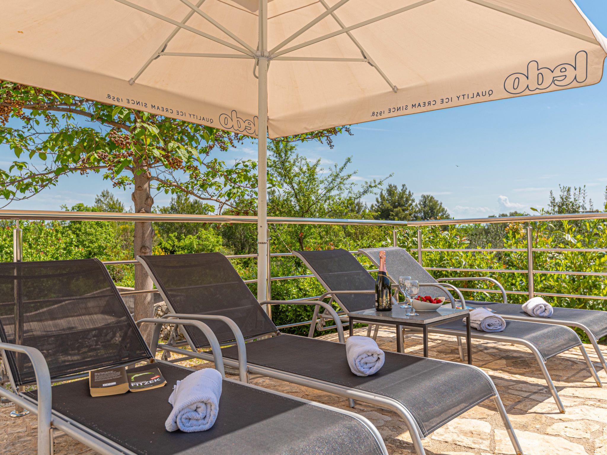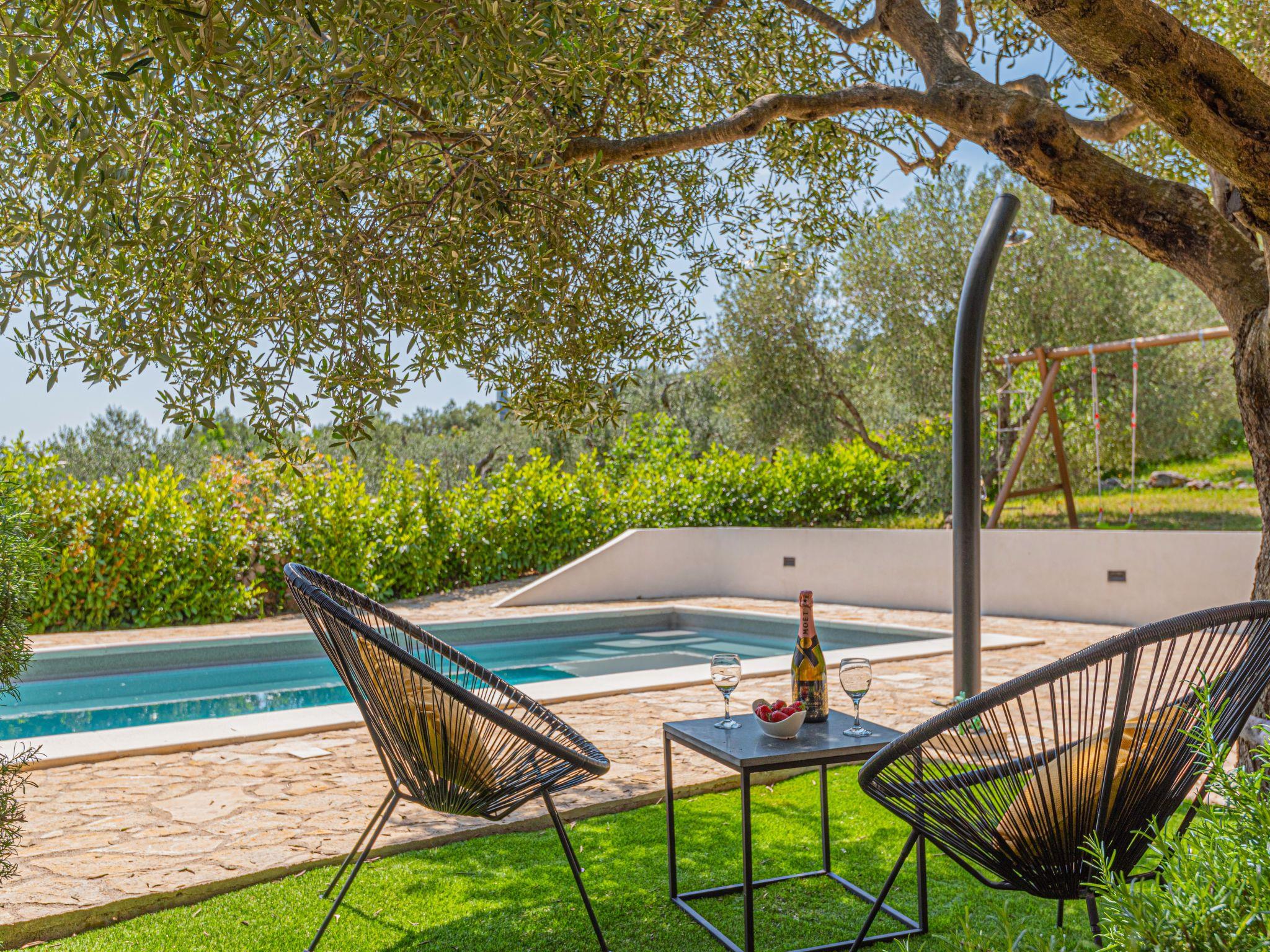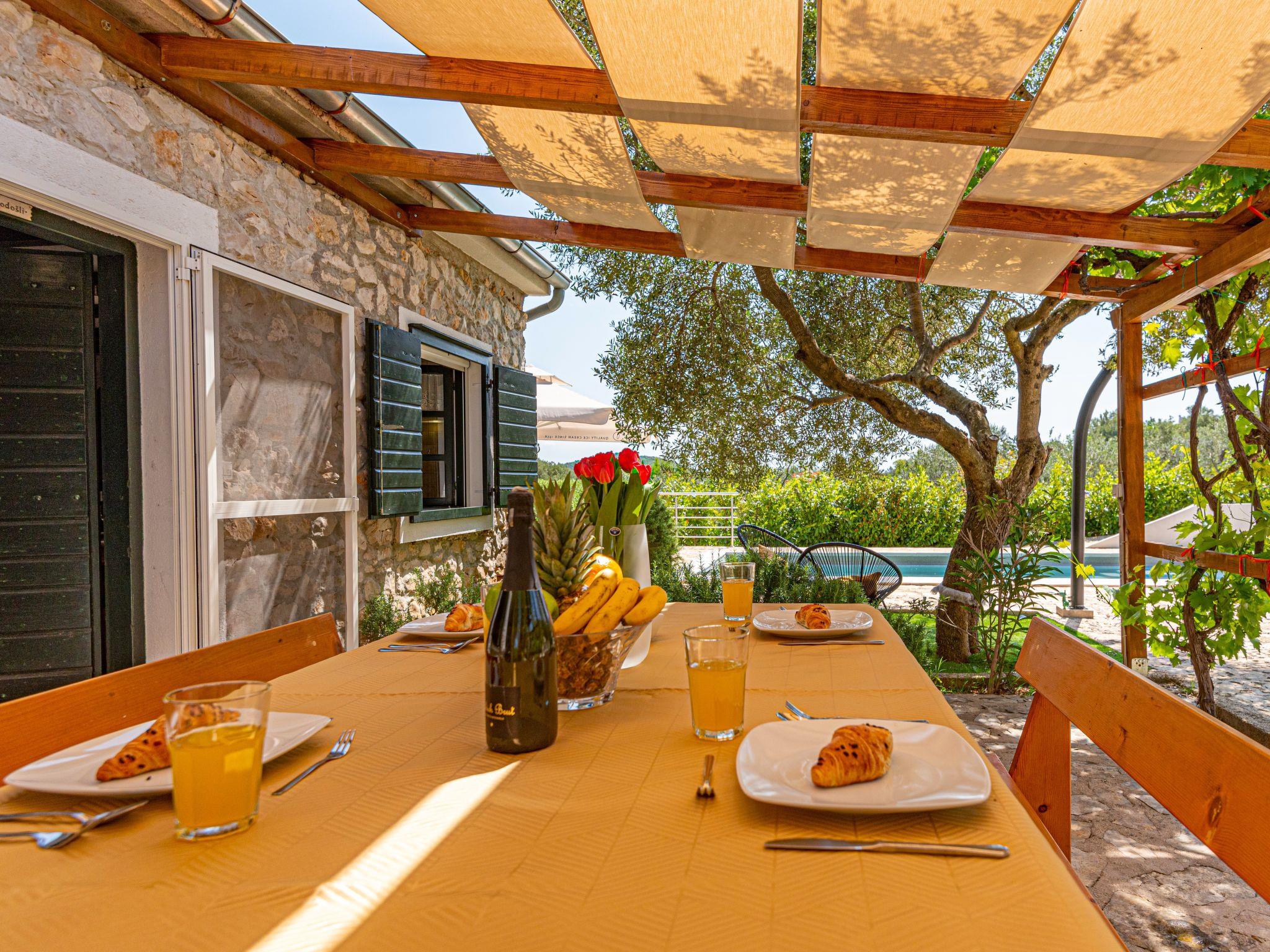 Single-family house "Okit", 2 storeys. 5 km from the centre of Vodice, in a quiet, sunny position, 6 km from the sea. Private: property 3'000 m2 with trees, swimming pool angular (32 m2, depth 150 cm, seasonal availability: 01.May. - 30.Sep.) with internal staircase. Outdoor shower, terrace (20 m2), garden furniture, barbecue, children's playground (swing). In the house: internet access, washing machine. Parking (for 3 cars) at the house on the premises. Shop 4 km, restaurant 5 km, bus stop 4 km, pebble beach 6 km, public bathing area 6 km. Marina 5 km, cycle lane 6 km. Nearby attractions: NP Krka 25 km, Aquapark 27 km. Well-known lakes can easily be reached: Vransko jezero 20 km.