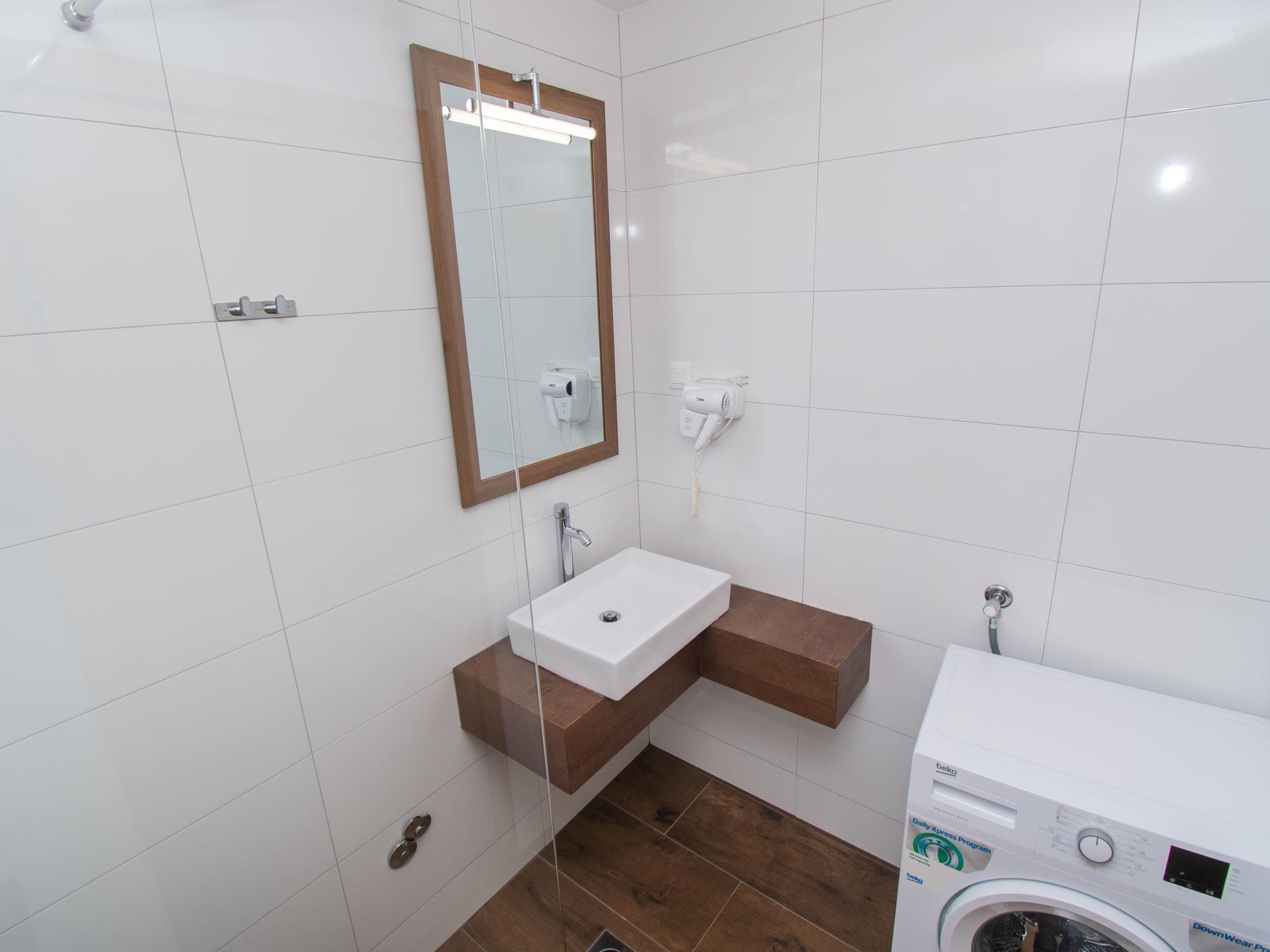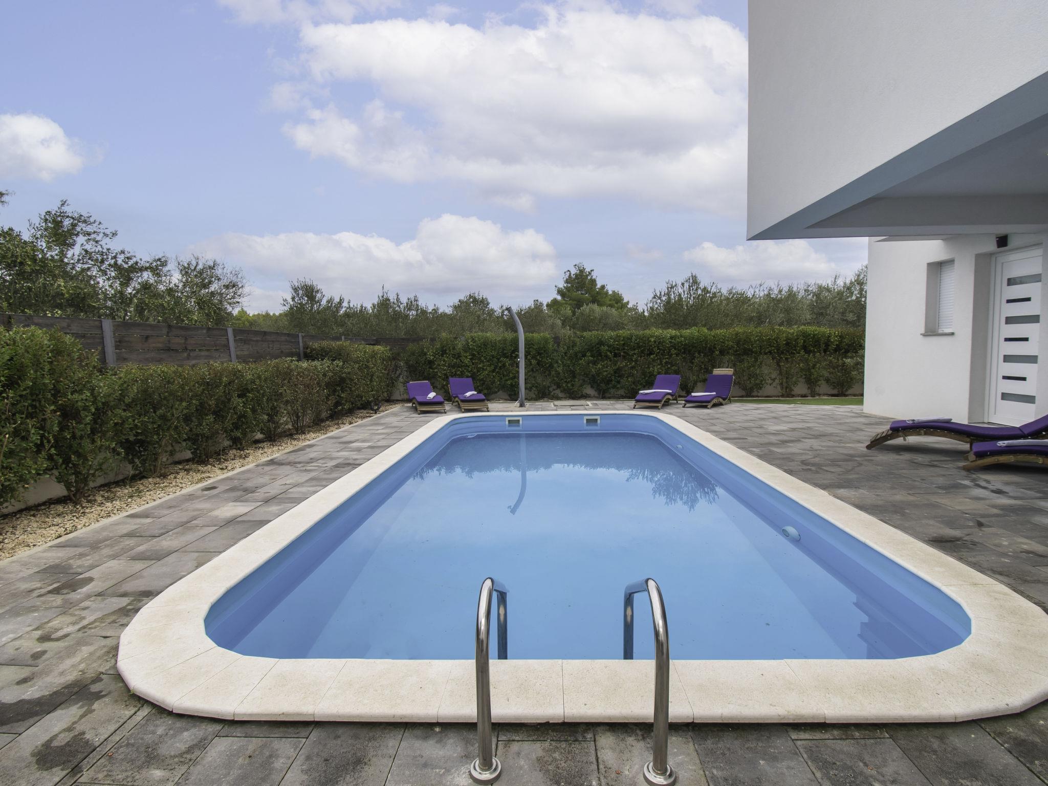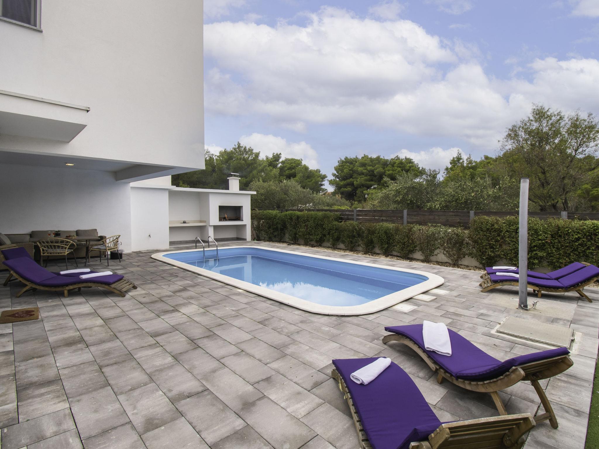 Semi-detached house "Villa Loreta", 2 storeys. In the district of Srima 3 km from the centre of Vodice, in a sunny position, 400 m from the sea, 400 m from the beach. Private: property 450 m2 (fenced), swimming pool angular (7 x 3 m, 24 m2, depth 150 cm, seasonal availability: 01.Apr. - 15.Oct.). Outdoor shower, barbecue. In the house: internet access, washing machine. Airport transfer (extra). Parking (for 2 cars) at the house on the premises. Shop 200 m, restaurant 400 m, bus stop 2.2 km, pebble beach 400 m. On request: airport transfer to the holiday accommodation.