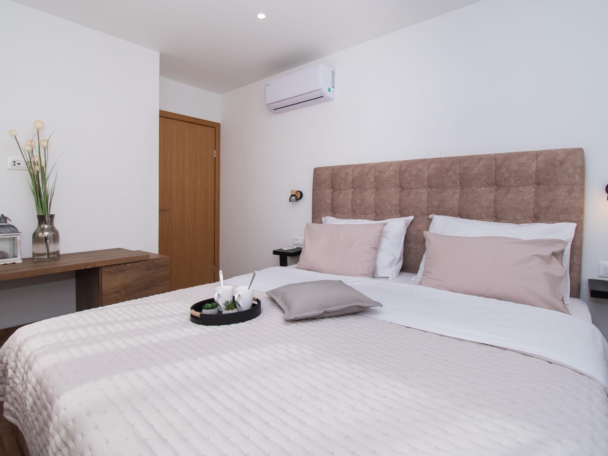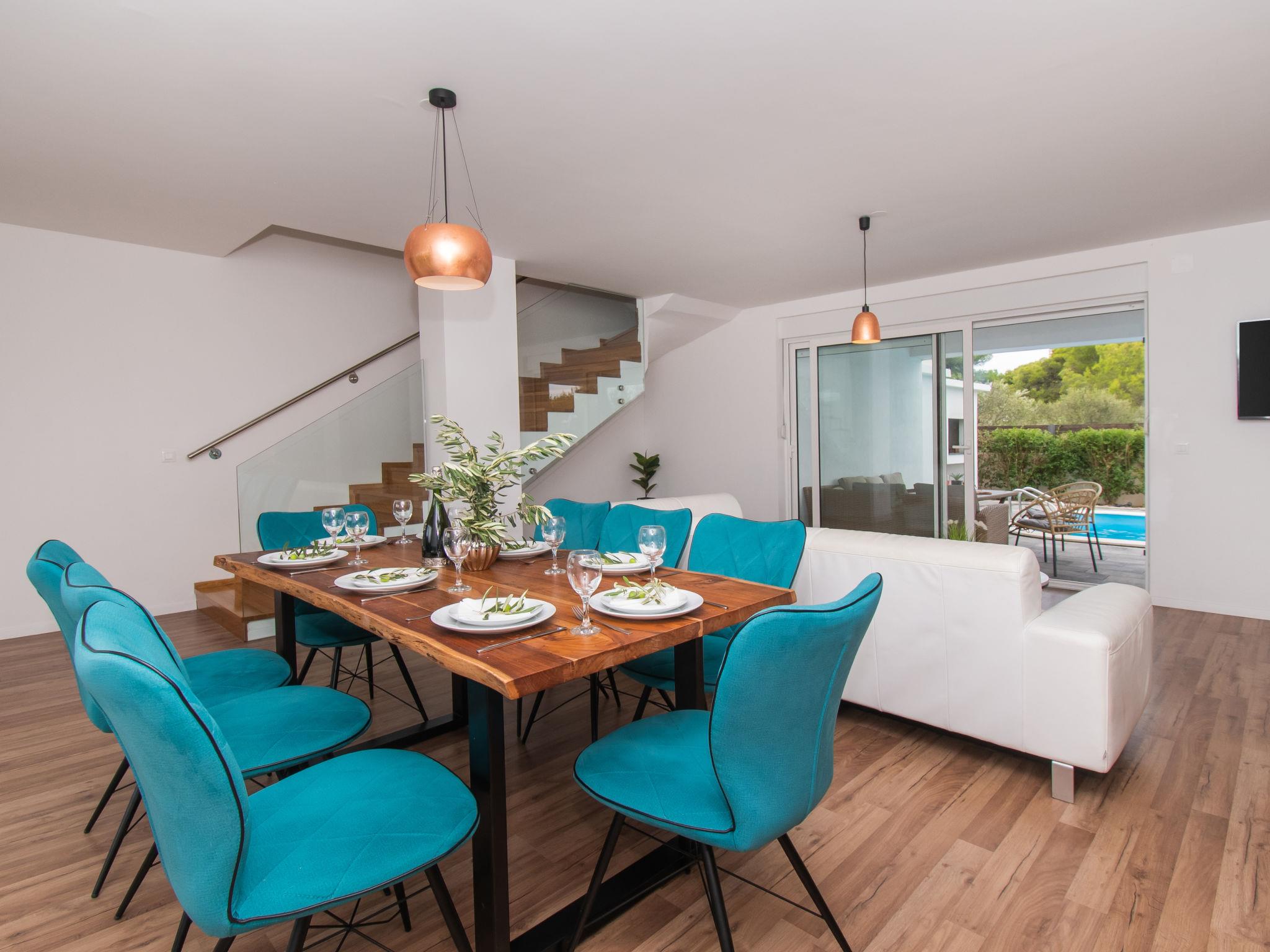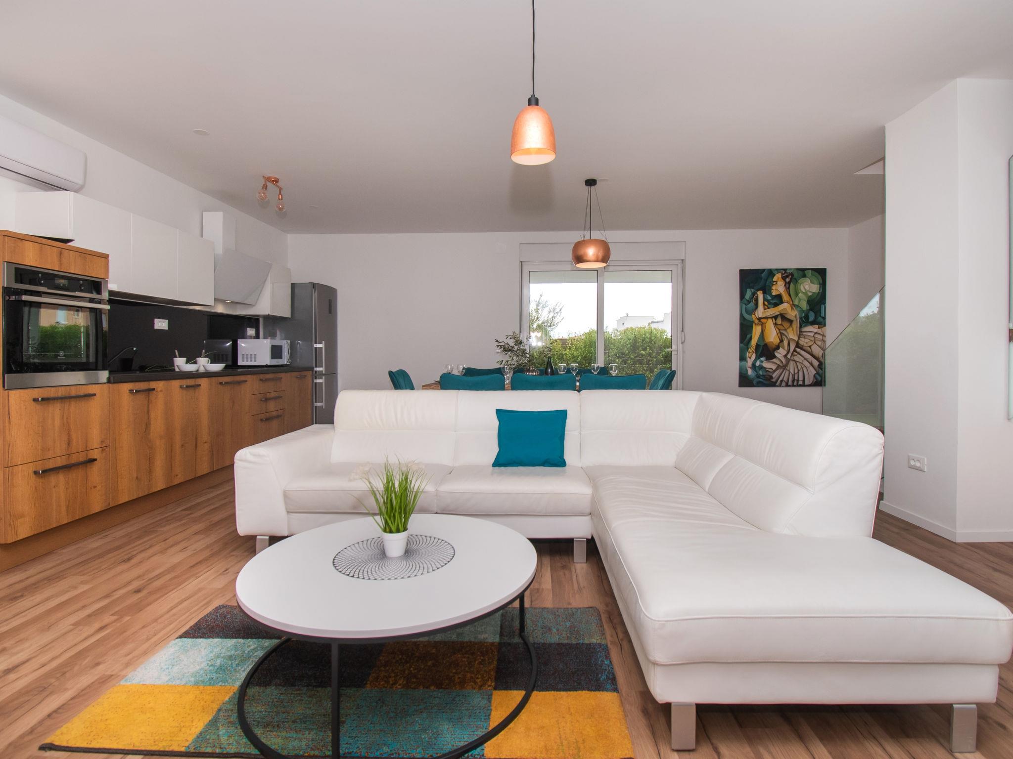 Semi-detached house "Villa Loreta", 2 storeys. In the district of Srima 3 km from the centre of Vodice, in a sunny position, 400 m from the sea, 400 m from the beach. Private: property 450 m2 (fenced), swimming pool angular (7 x 3 m, 24 m2, depth 150 cm, seasonal availability: 01.Apr. - 15.Oct.). Outdoor shower, barbecue. In the house: internet access, washing machine. Airport transfer (extra). Parking (for 2 cars) at the house on the premises. Shop 200 m, restaurant 400 m, bus stop 2.2 km, pebble beach 400 m. On request: airport transfer to the holiday accommodation.