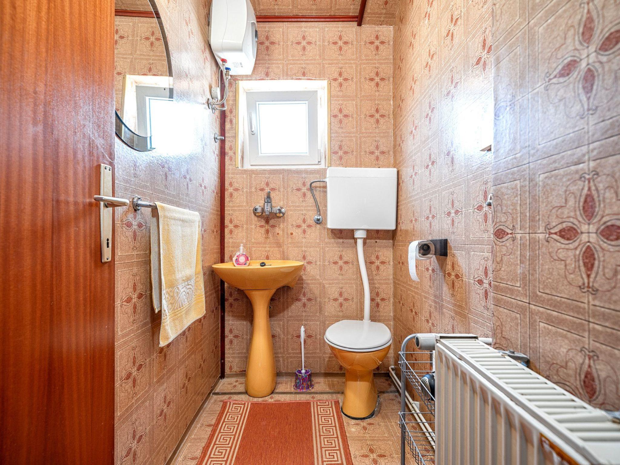 This 30m² holiday apartment has a separate entrance and is on the first floor of the house. It has a bedroom with a double bed (180 x 190cm) and its own bathroom with a shower. The toilet with a washbasin is separate. The living room-kitchen comprises a sitting area with a sofa bed for two people (150 x 190cm), a dining space and a small, open kitchenette with two cooking rings, a fridge and a coffee machine.