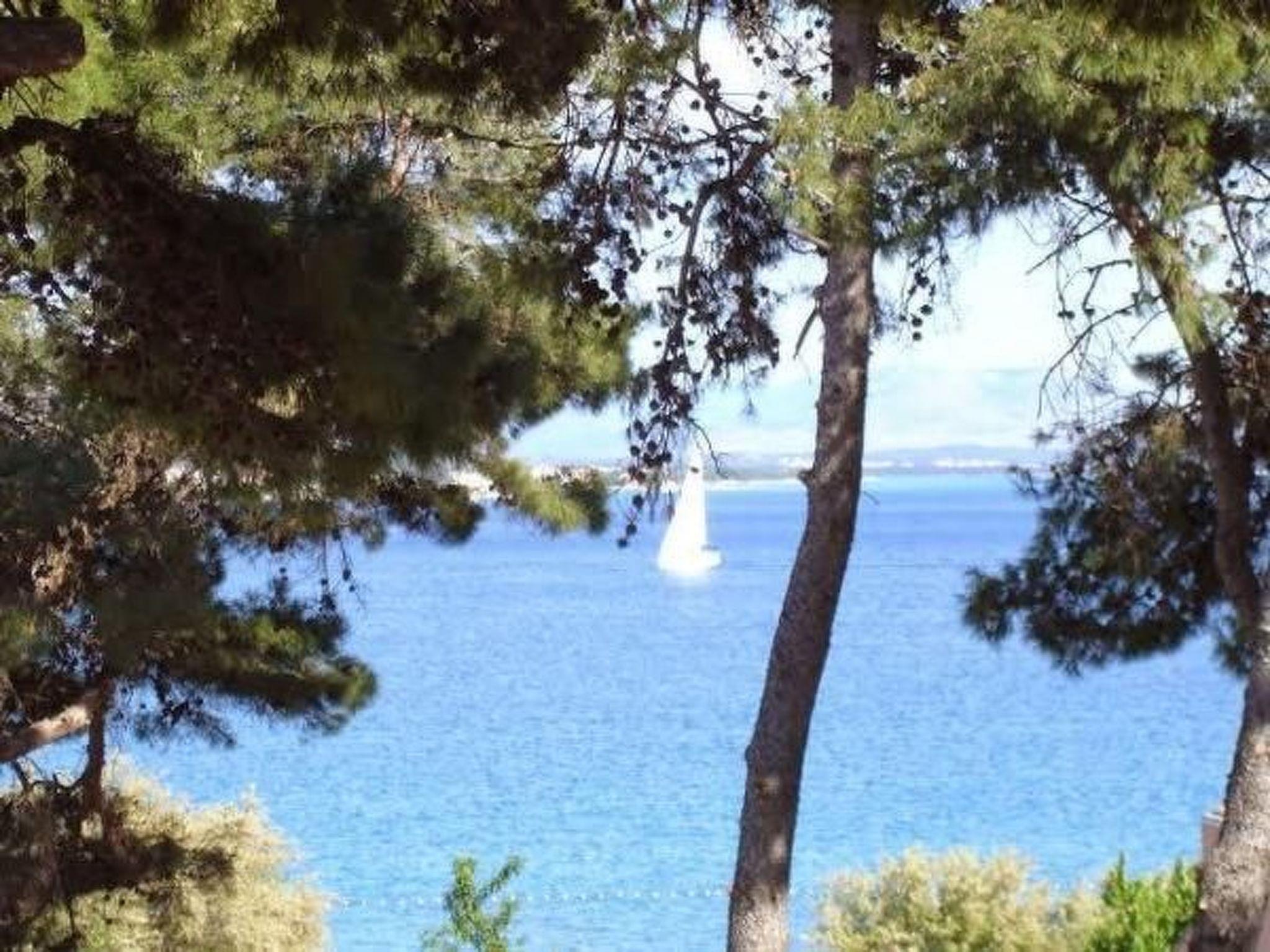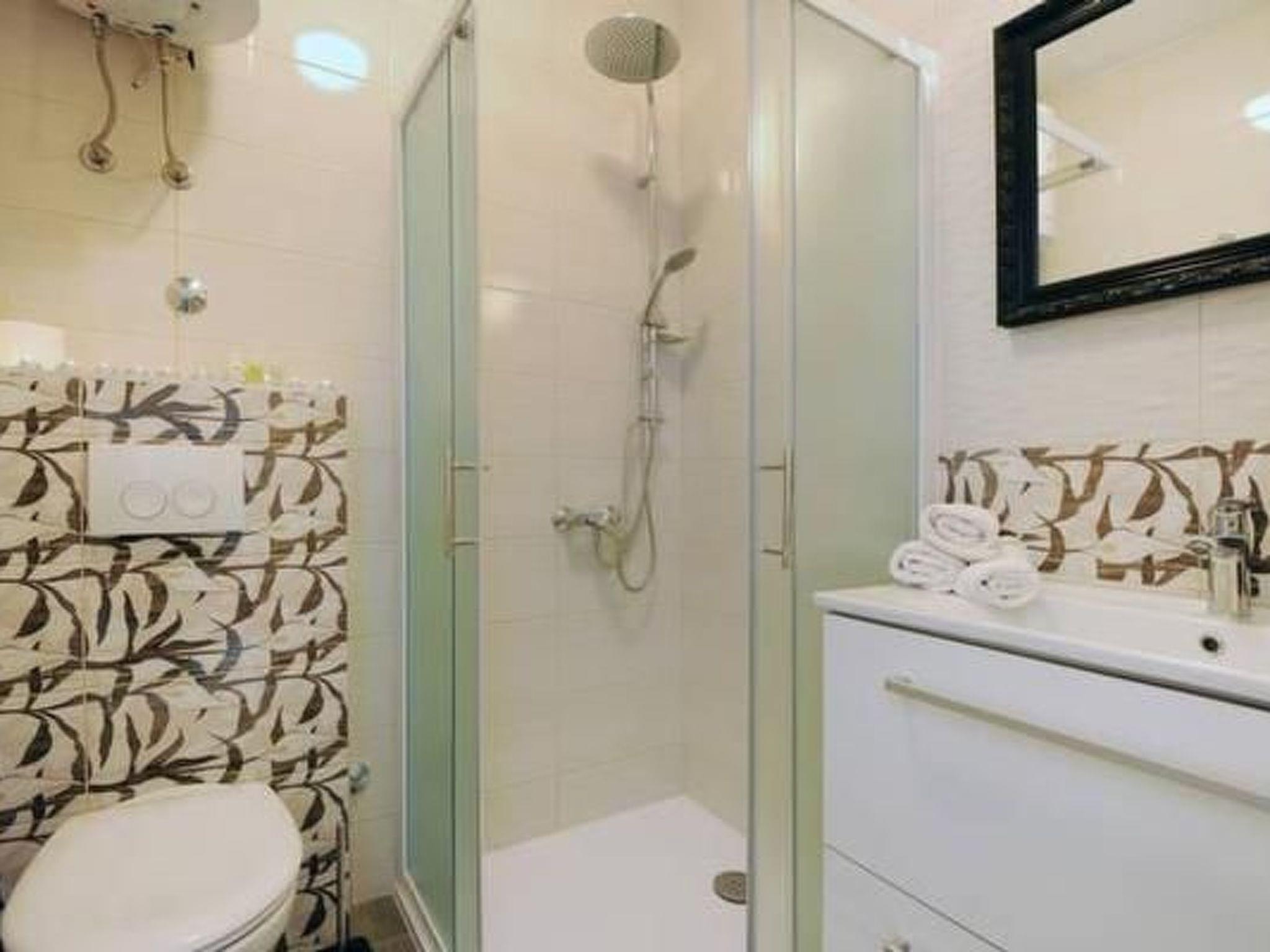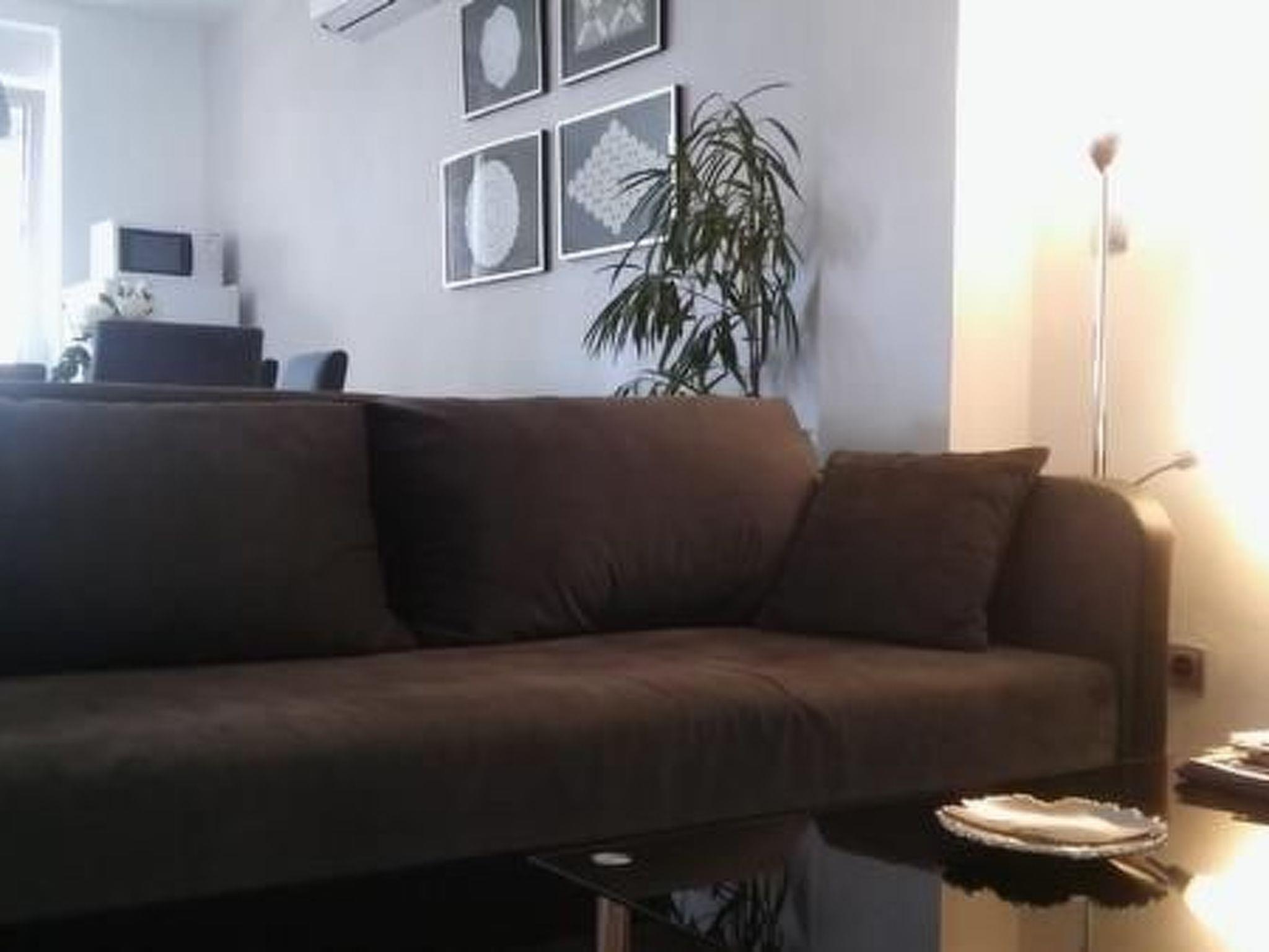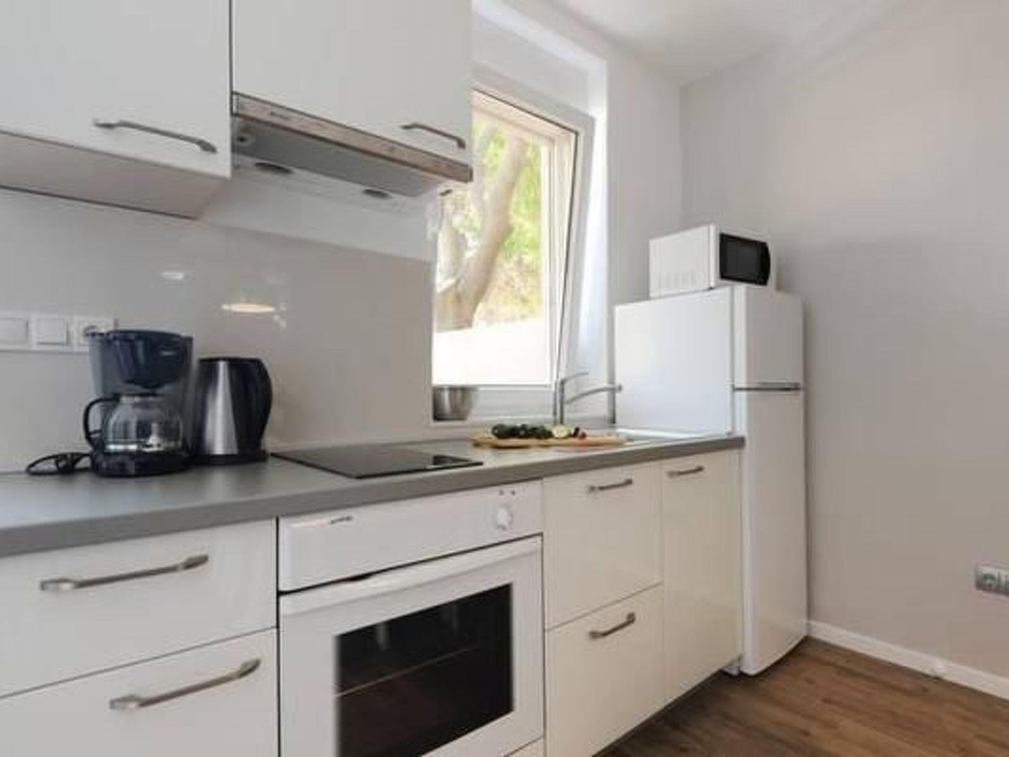 Apartment has a 2 bedrooms with double beds, living room with flatscreen TV with satellite programs with dining room and fully equipped sea view kitchen. Bed linen is provided and the beds are already made on arrival.There is also bathroom with shower cabine, toilet with toilet paper, soap. Washing machine is in laundry (option, paymnet). This apartment has large terrace with garden furniture and Mediterranean plants. Villa has private parking space and for 1 apartment is reserved 1 parking space.