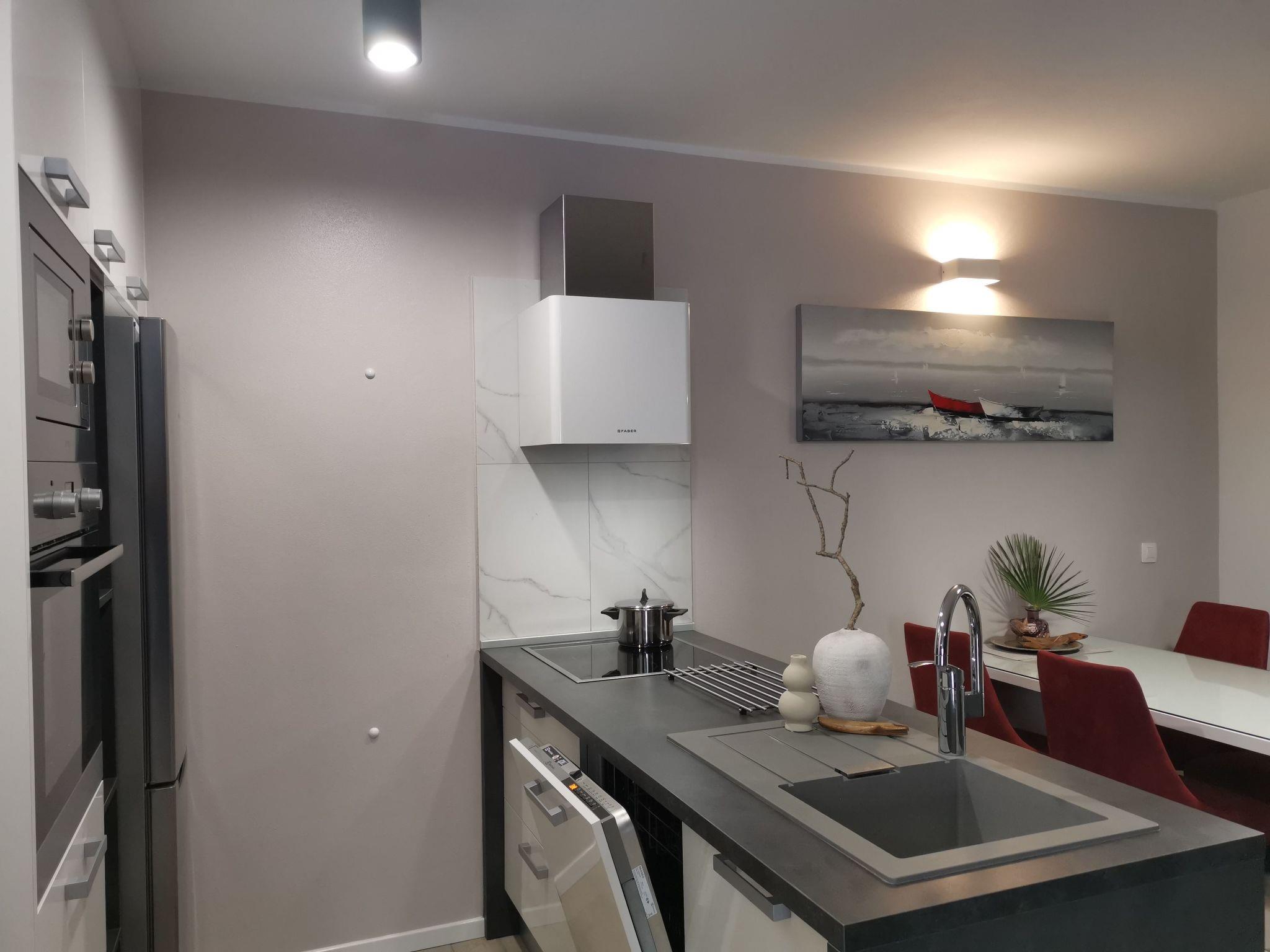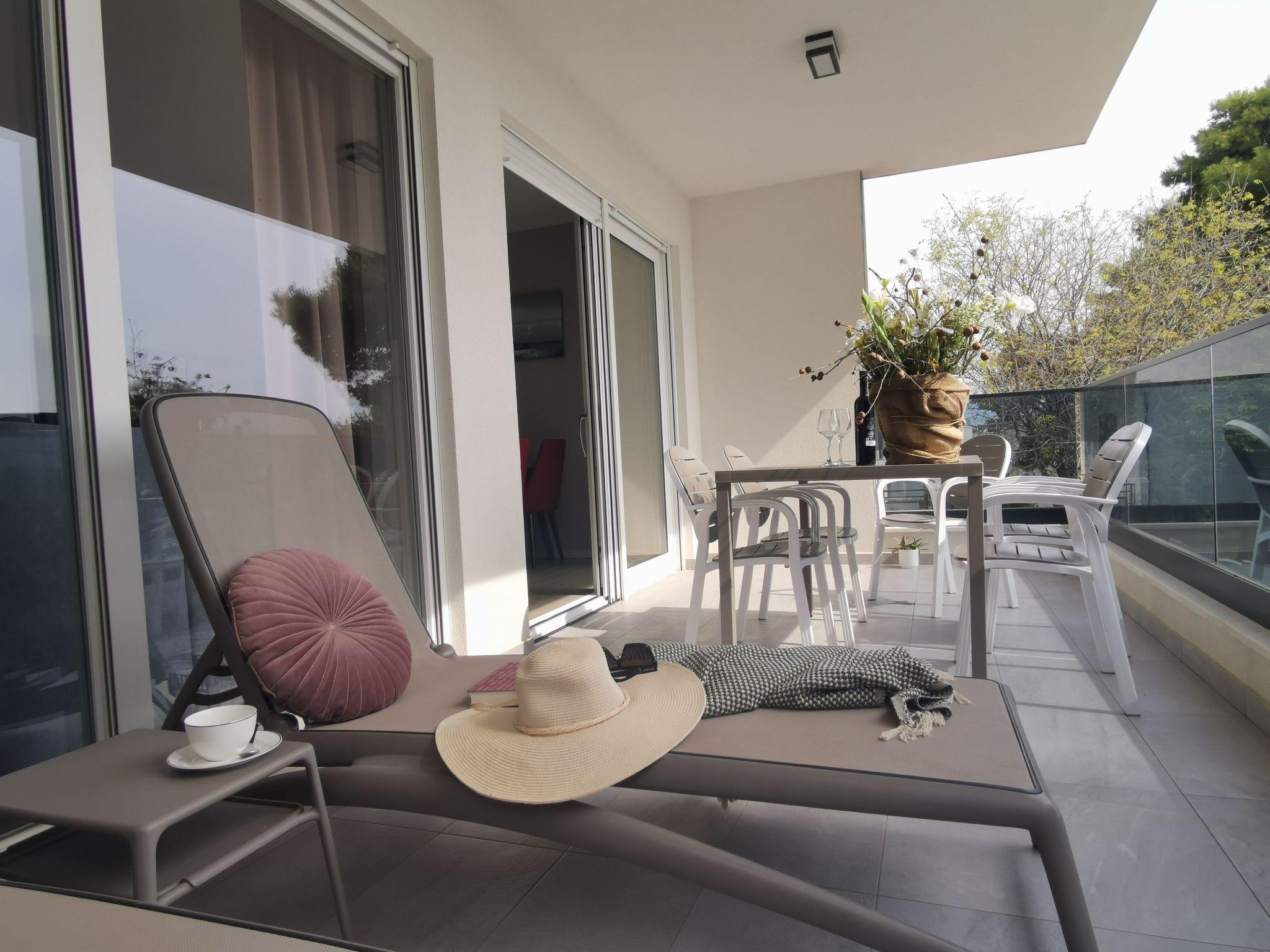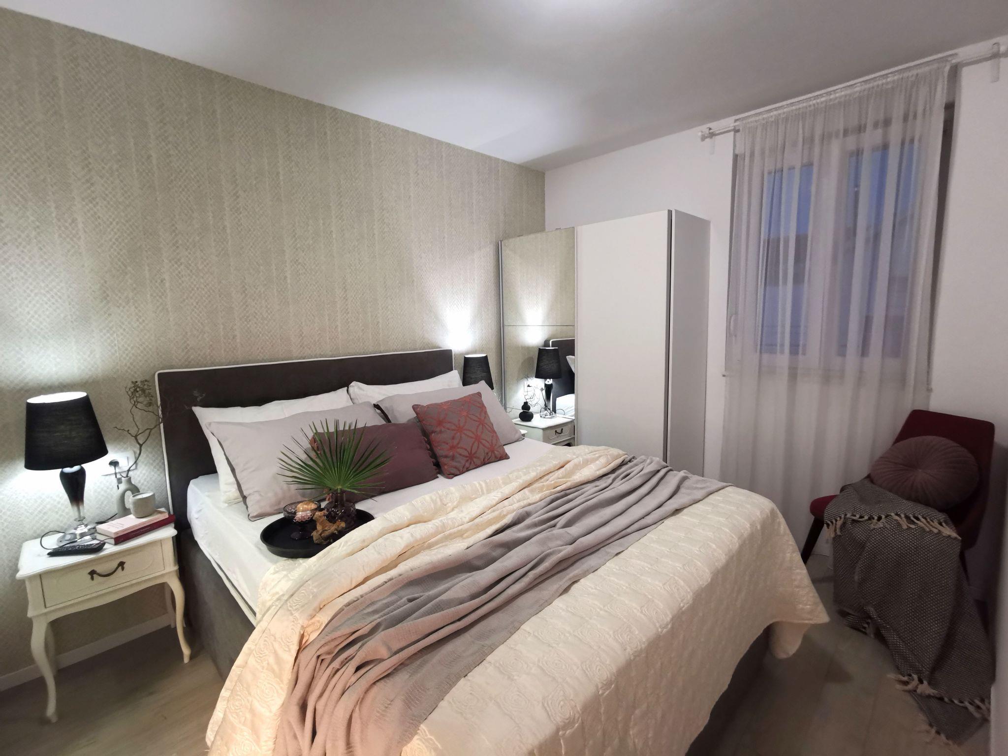 Luxury apartment in new and modern designed house. This holiday home is located in Vodice and is only 50 m from the sea and the beach. Really excellent location! Everything is close to villa (restaurants, beach, shops, ATMs, water sports, boat, bakery and gloom, bank and pharmacy) and that makes it so special. Holiday without a car.