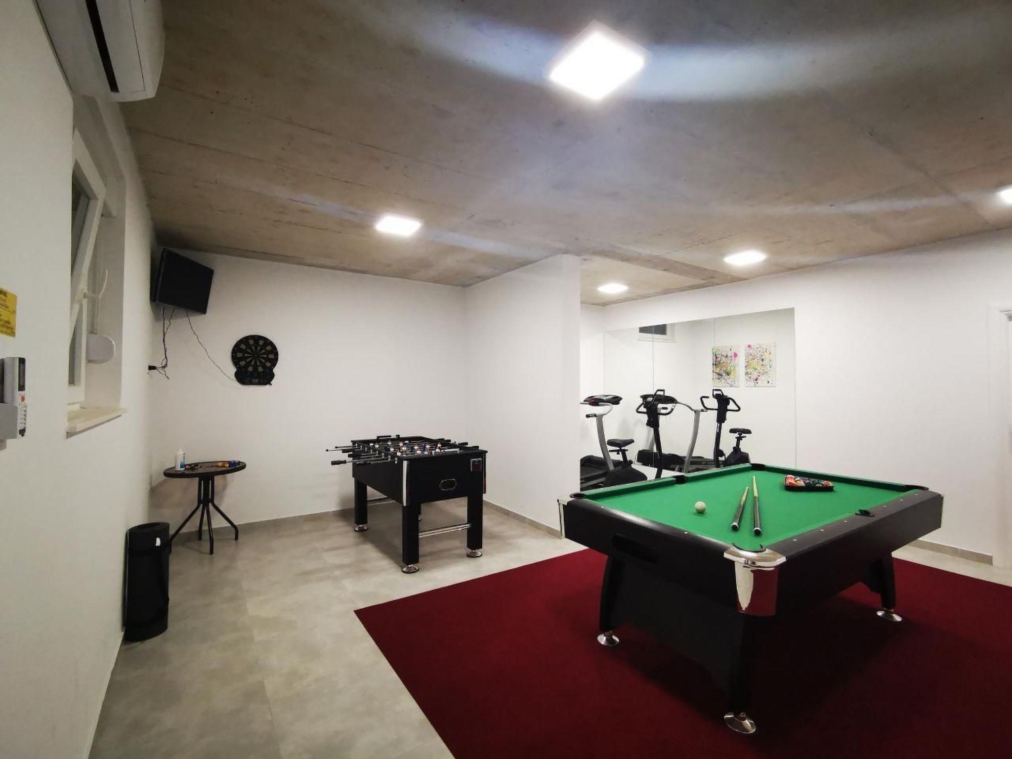 In the basement there is a nice fitness room with exercise equipment, stepper, running belt and bicycle. There is also billiards, table football and darts.