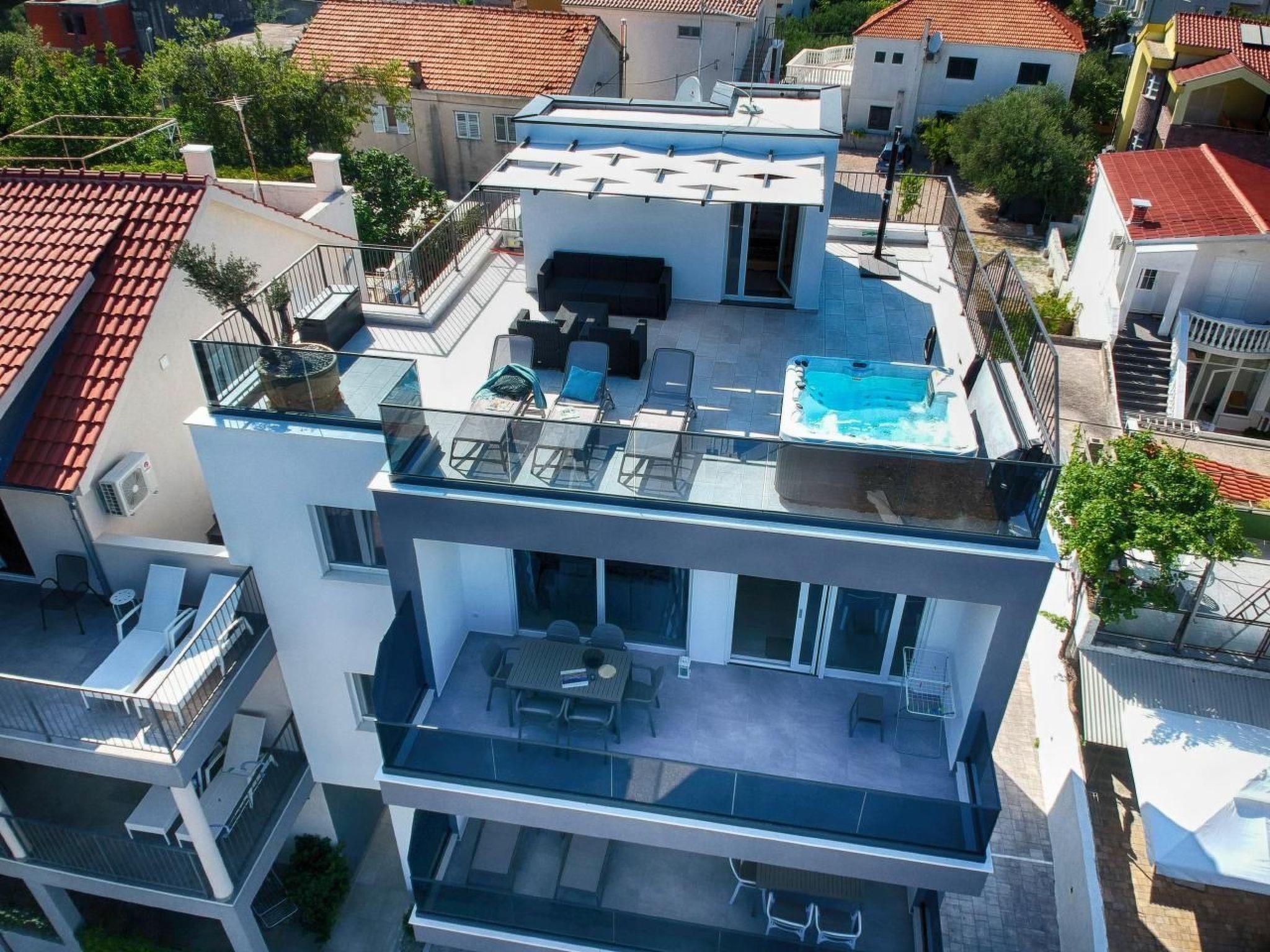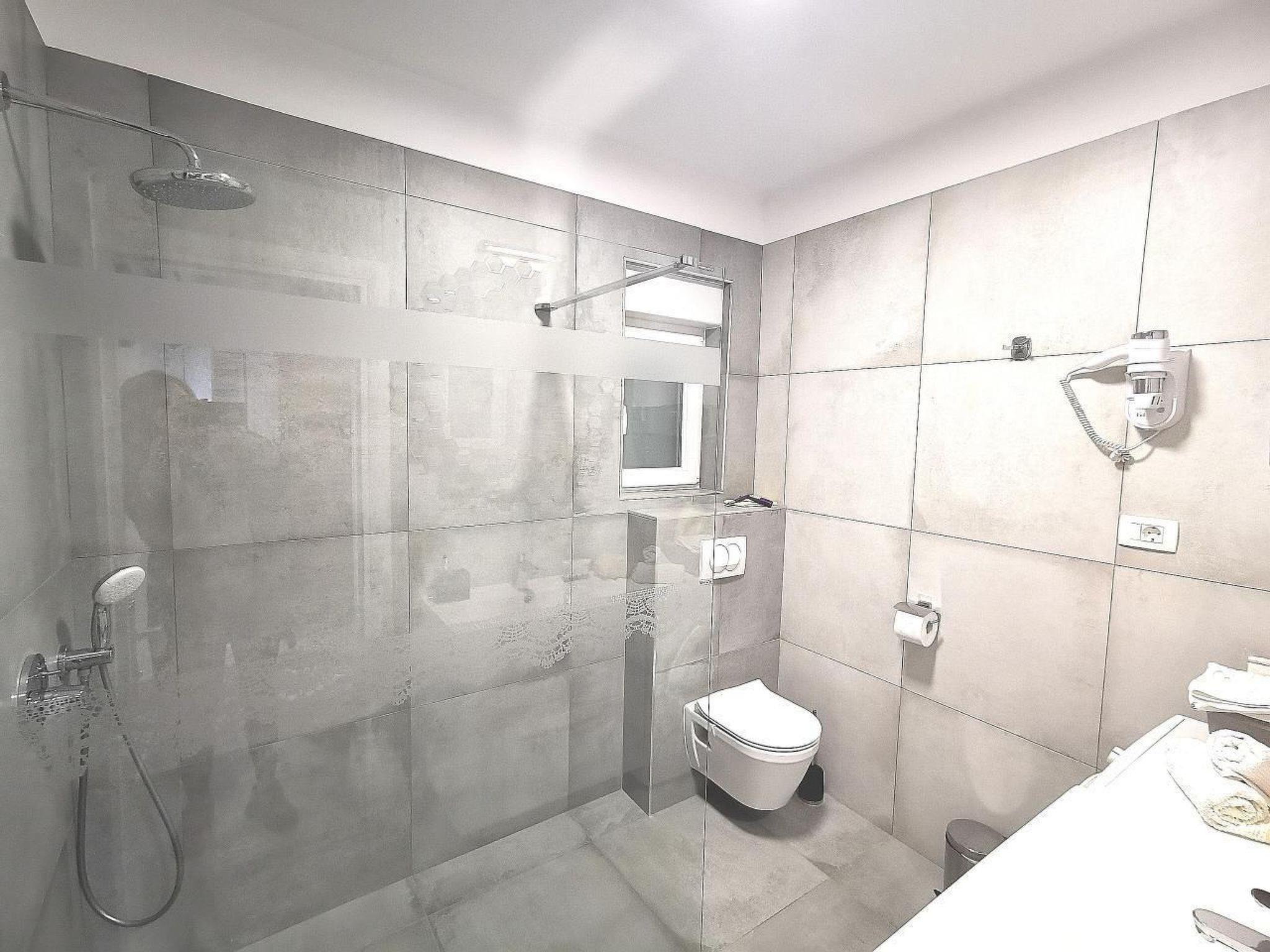 Apartment with 2 bedrooms with double beds, 2 bathrooms with shower cabine and toliet, living room with kitchen and dining room, sauna and jacuzzi (on foor terrace). Air conditioning in each room; satellite tv in each room, fantastic sea view. Private parking for 1 car.Property is been designed by designers, they have a loocked for every little details and special attention was made in lighting and materials.Car Our pool is 100% reliable, has no chemicals and chlorine, it works on the principle of electrolysis of salt water, which means that instead of chlorine and chlorine formulations in the pool we put salt. Salt water travels through the device, whereby by the process of electrolysis we extract chlorine from the salt. The chlorine water is appropriately purified and disinfected, then returned back into the salt. There is no fear of harmful skin reactions, and even small children can swim unhindered.Seasonal outdoor Pool :end of May- OctoberVilla is situated on a perfect location.
