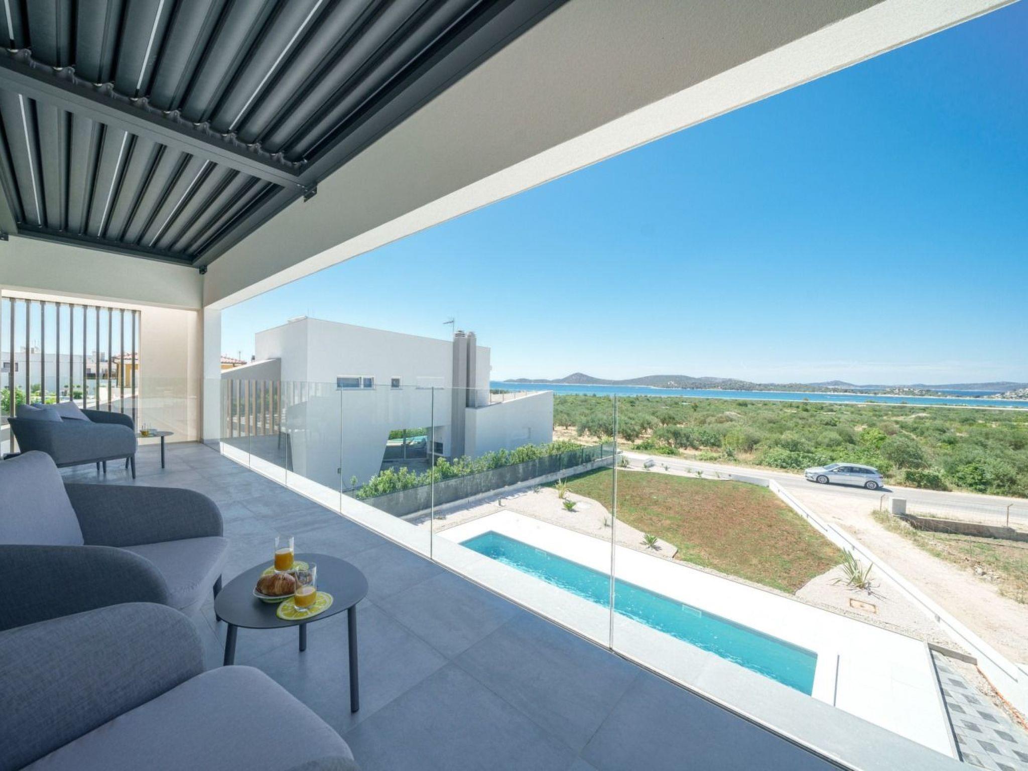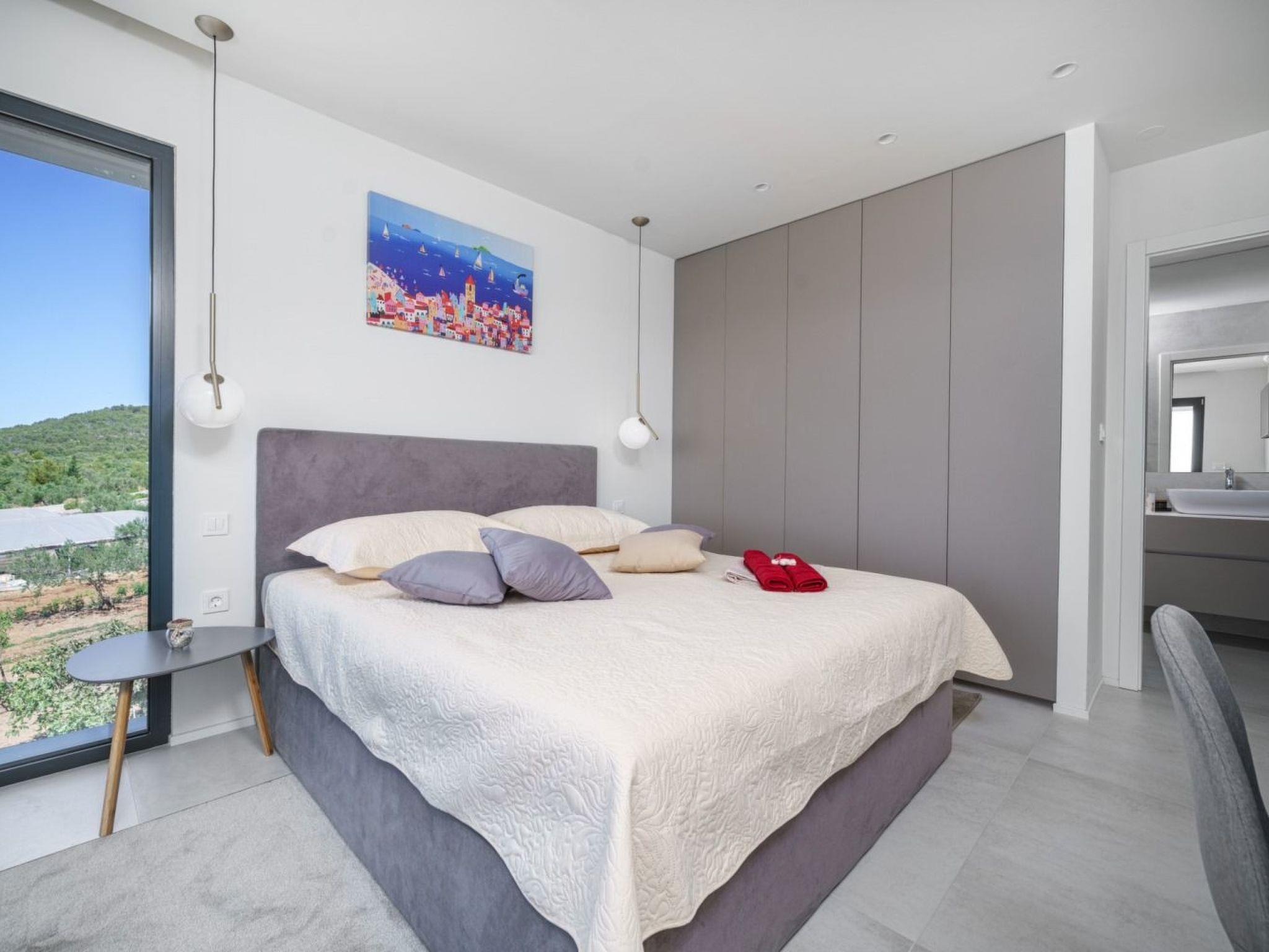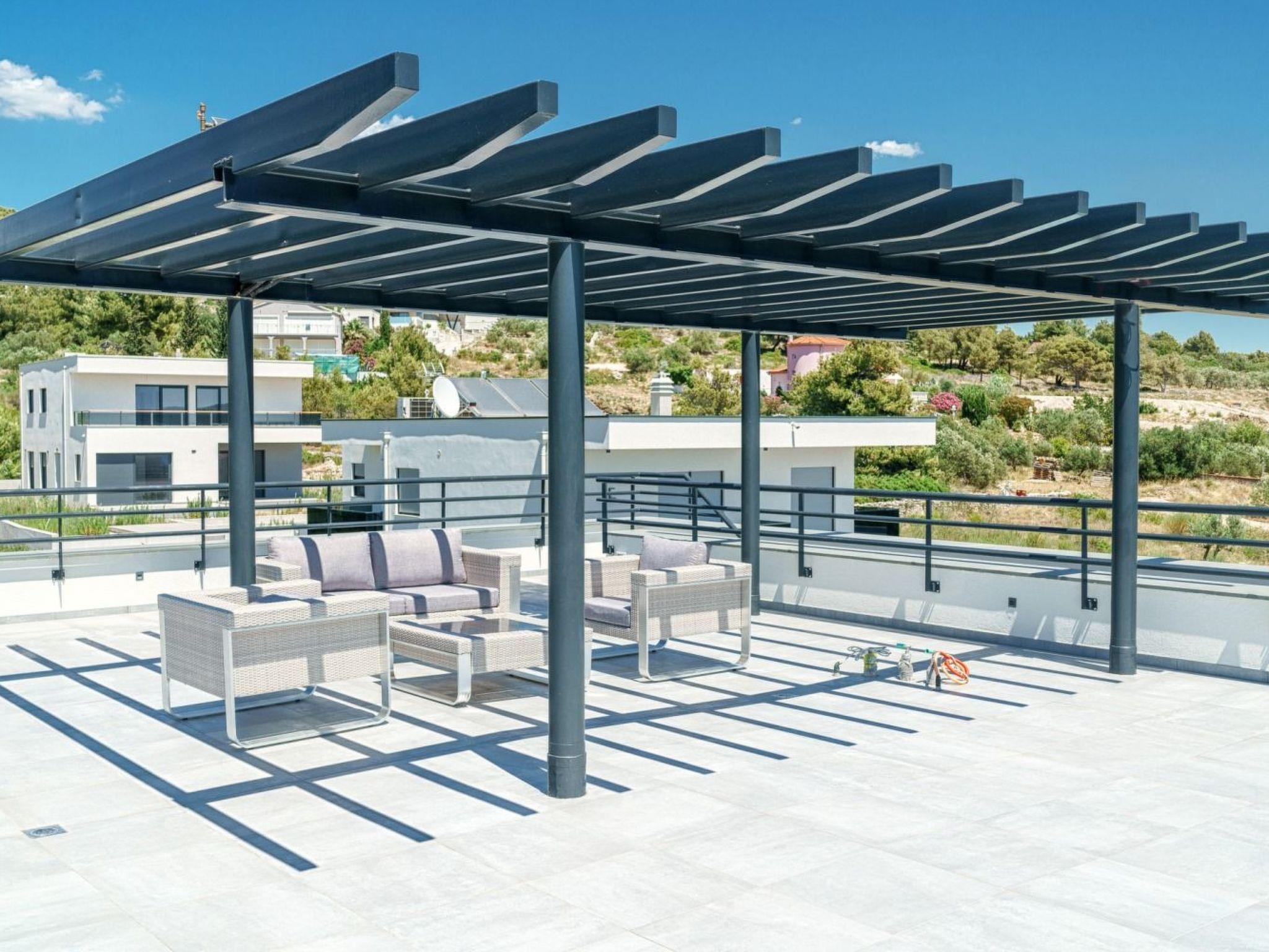 The outdoor area of this holiday house is designed to offer you a peaceful and private oasis. The highlight is undoubtedly the expansive 55m² pool, perfect for cooling off on warm summer days and nights. Surrounding the pool, the well-maintained garden, reserved solely for your use, provides a lush backdrop and additional space for relaxation. The villa boasts terraces on both floors and an additional one on the roof, all furnished with comfortable lounge furniture. These terraces are ideal for enjoying the fresh air, soaking in the panoramic sea and island views, or simply spending quality time with loved ones.