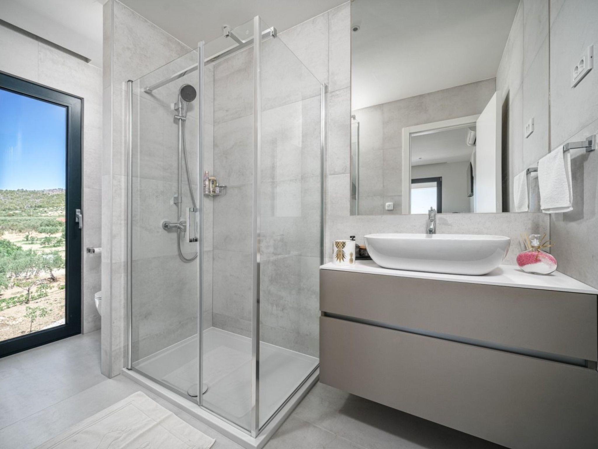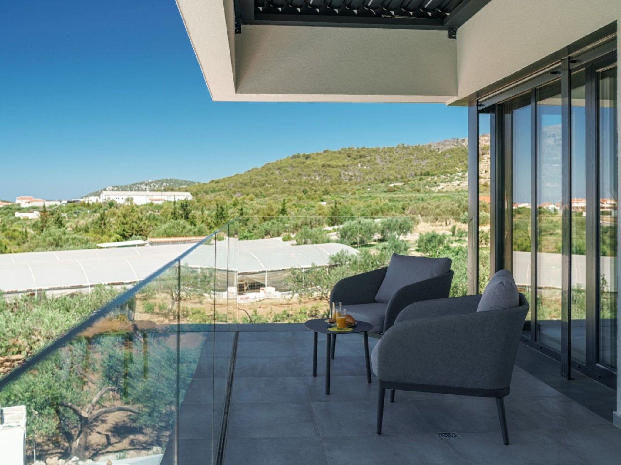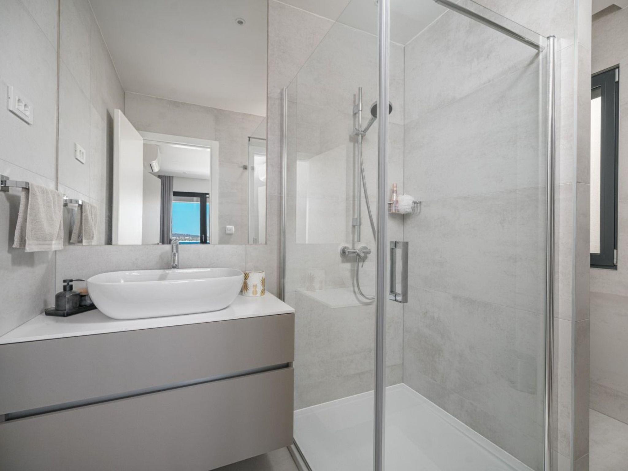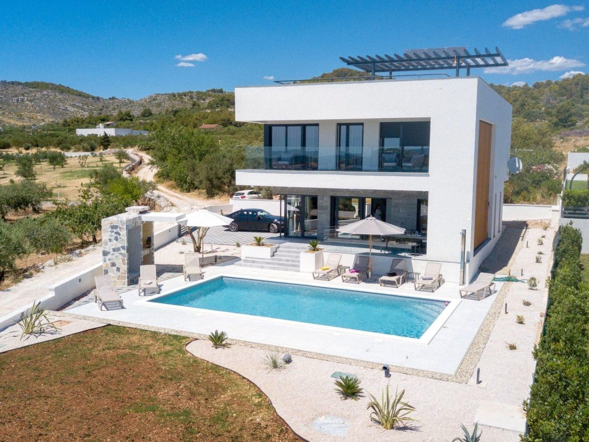The outdoor area of this holiday house is designed to offer you a peaceful and private oasis. The highlight is undoubtedly the expansive 55m² pool, perfect for cooling off on warm summer days and nights. Surrounding the pool, the well-maintained garden, reserved solely for your use, provides a lush backdrop and additional space for relaxation. The villa boasts terraces on both floors and an additional one on the roof, all furnished with comfortable lounge furniture. These terraces are ideal for enjoying the fresh air, soaking in the panoramic sea and island views, or simply spending quality time with loved ones.