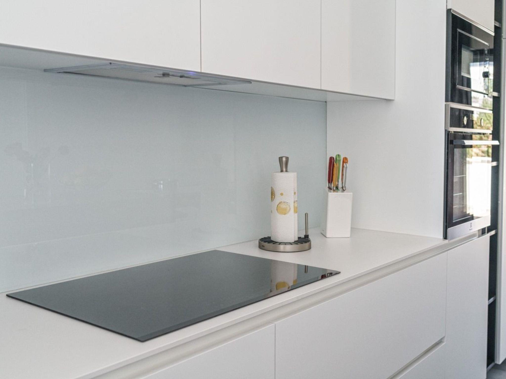 Inside, the villa is equipped to ensure that every moment of your stay is comfortable and convenient. With air conditioning available throughout the premises, your comfort is guaranteed no matter the weather. The villa features four well-appointed bedrooms, each with its own double bed, en-suite bathroom, TV, and air conditioning, ensuring that up to 8 guests can enjoy their stay in utmost comfort. For those traveling with infants, a baby cot is readily available. Moving through the house, you'll appreciate the practical amenities like a washing machine and clothes dryer, exclusively for your use, simplifying the chores so you can focus on relaxation. The kitchen is fully equipped with a dishwasher and coffee machine, making meal preparation and morning routines a breeze.