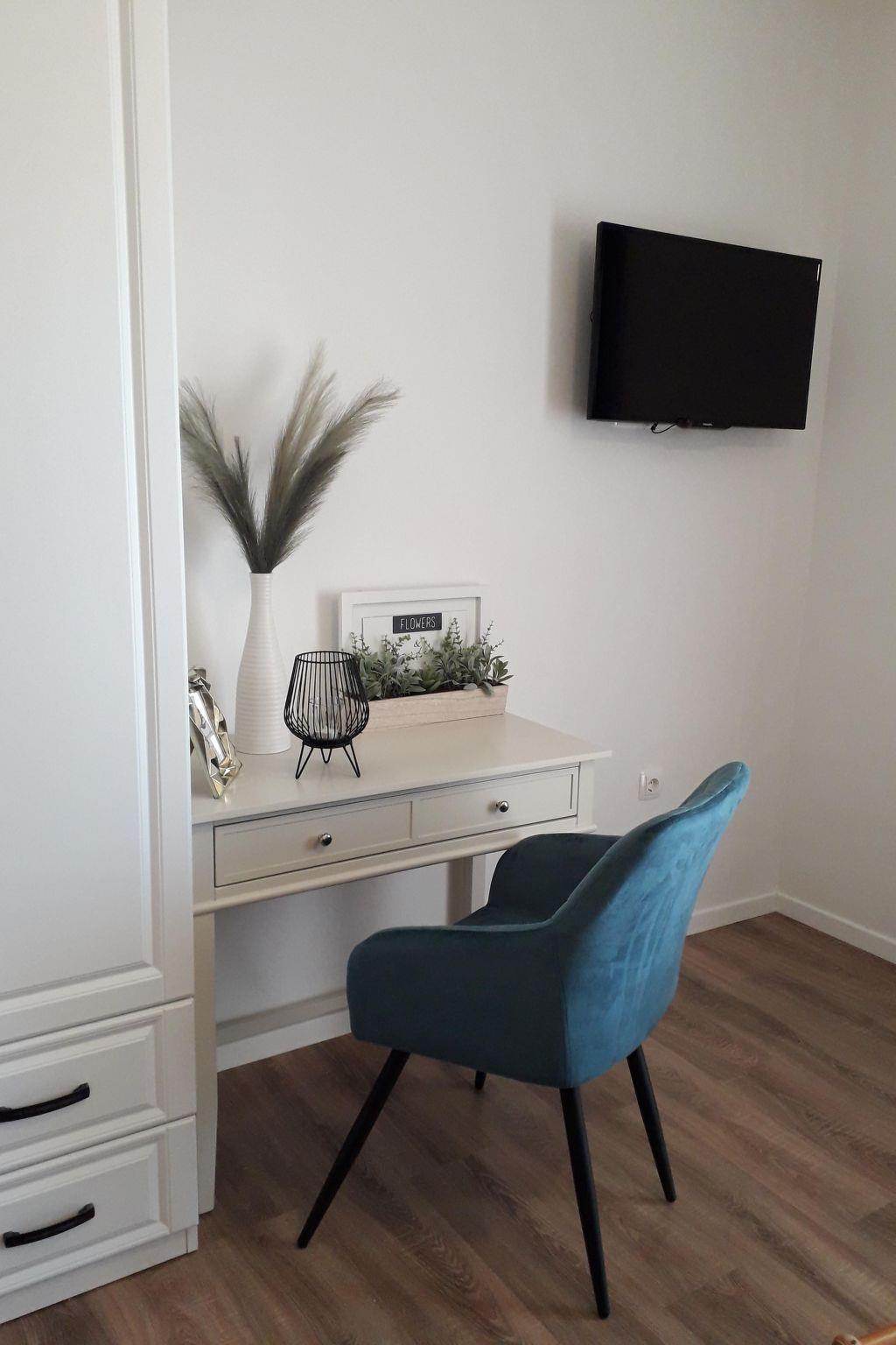 The cosy flat on the first floor impresses with its well thought-out interior design. At 30m², plus an inviting balcony overlooking the peaceful courtyard, this flat offers a separate entrance for maximum privacy. The bedroom, equipped with a comfortable 160cm x 200cm bed and a TV, promises peaceful nights. The integrated kitchen, which flows seamlessly into a small living room, is fully equipped and opens onto the balcony. Here, a sofa, a table with chairs and another TV invite you to relax. The modern bathroom with shower rounds off the offer, while the entire flat benefits from pleasant air conditioning.