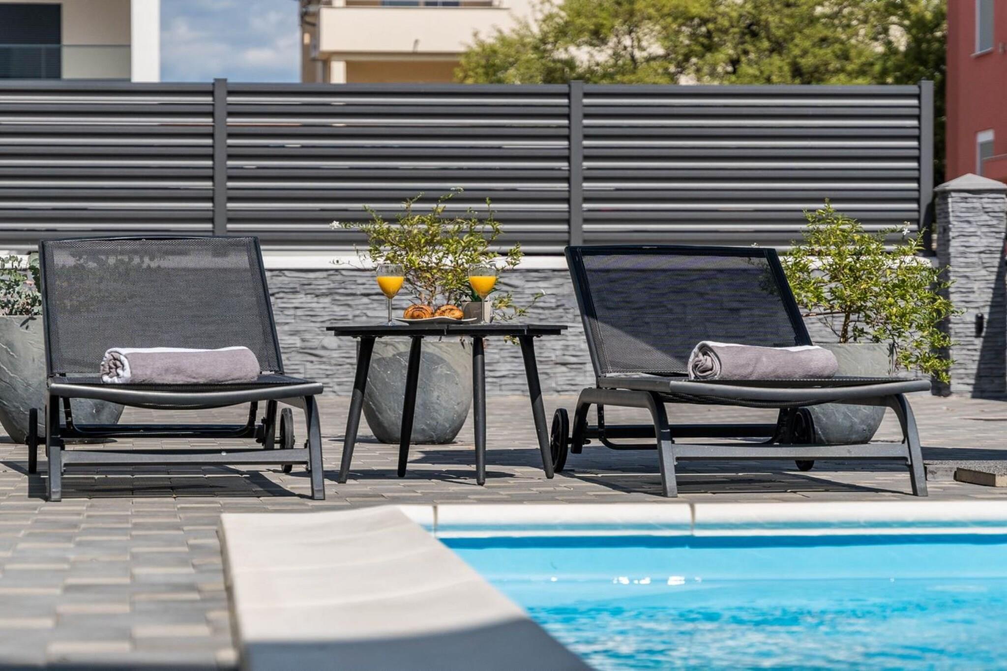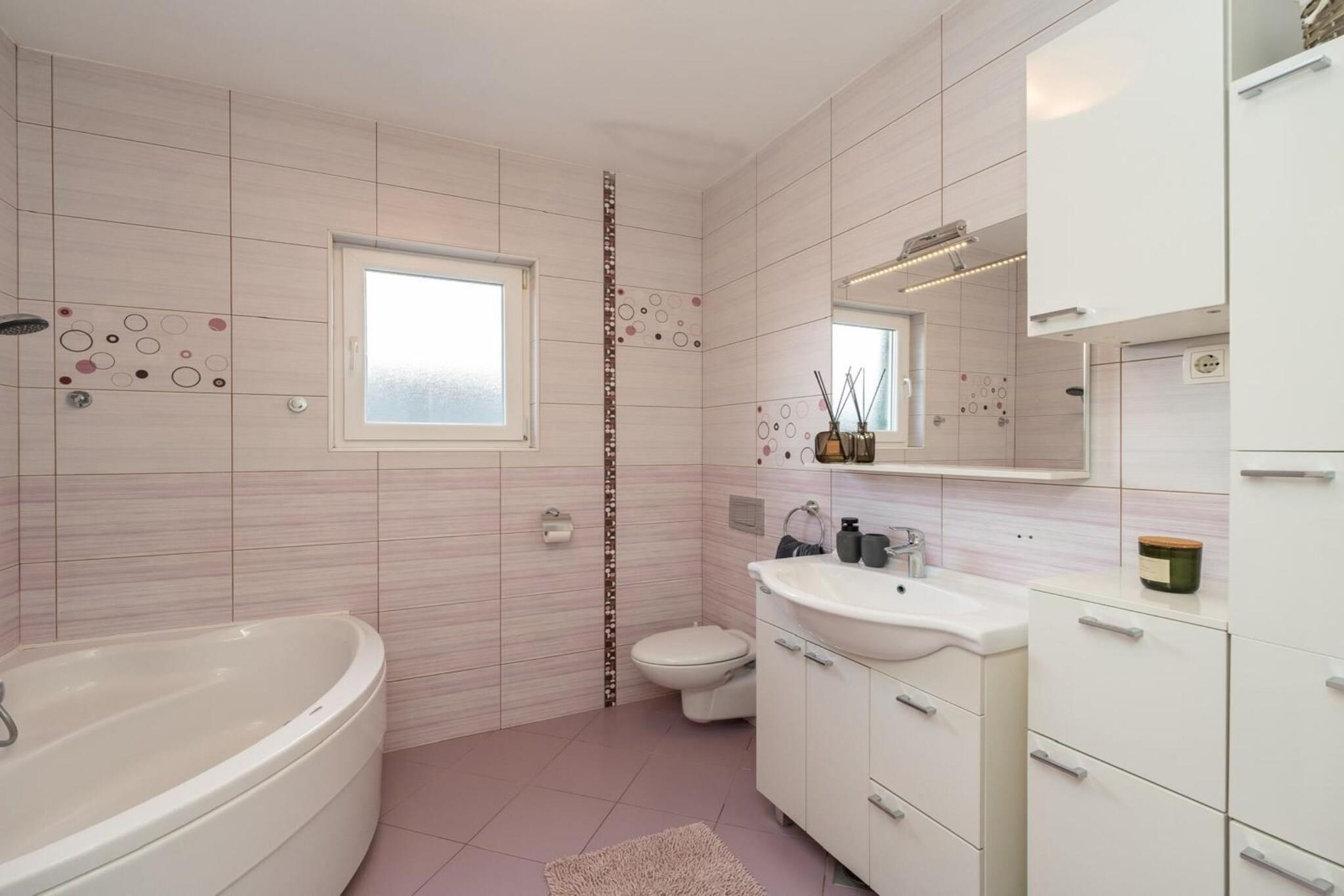 Villa S Vodice is a luxurious property located in Vodice, a popular tourist destination in the Šibenik-Knin County of Croatia. This villa is often praised for its modern design, spacious interiors, and excellent amenities. It typically offers features such as private pools, outdoor terraces, and well-equipped kitchens, making it ideal for families or groups seeking a comfortable and upscale vacation stay. Vodice itself is known for its vibrant atmosphere, beautiful beaches, and proximity to attractions like the historic city of Šibenik. Note: Private parking is available, reservation is not required. Baggage drop-off is available before check-in. Wi-Fi is available throughout the property. Pets are not allowed. This five-bedroom can accommodate up to ten guests. It features an SAT TV and is combined with a Safety deposit box, sofa, and Kitchenette. The private bathroom is equipped with a shower and toilet. Free toiletries are available on request. Thanks to its excellent location, everything you'll need for your vacation is just a short walk away from the property. Grocery stores, cafes, restaurants—everything is within 200 m radius. The beach is 200 m away from the property. The airport is 60 km away from the property.