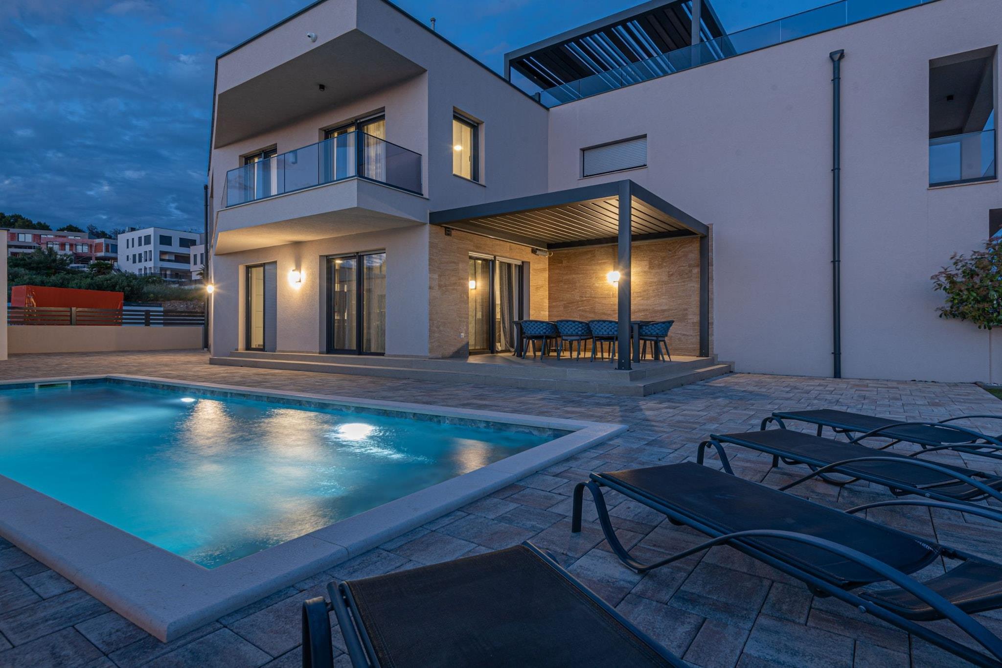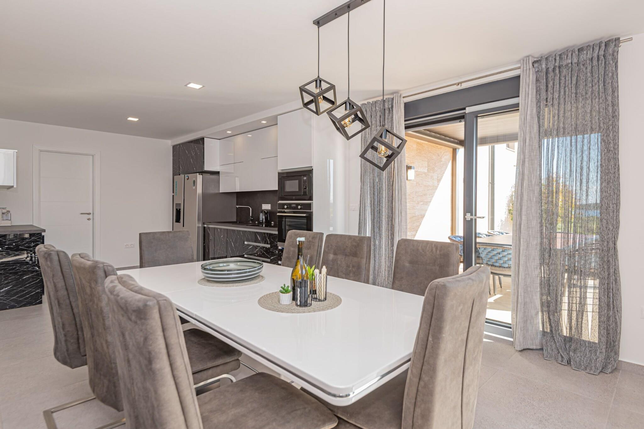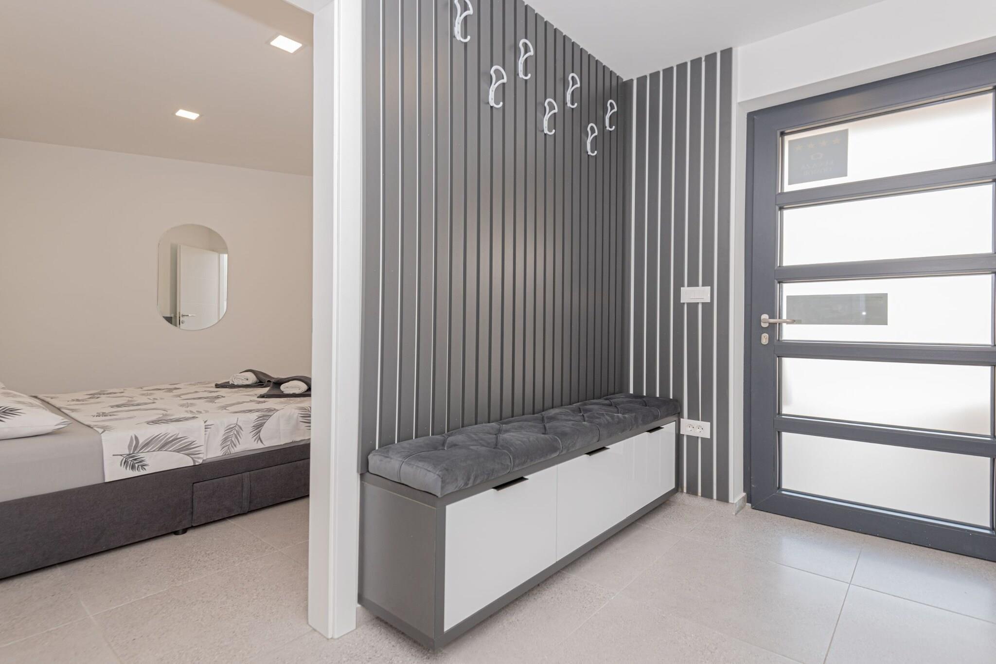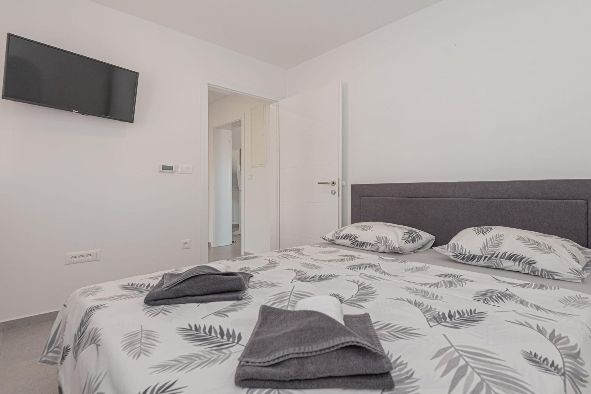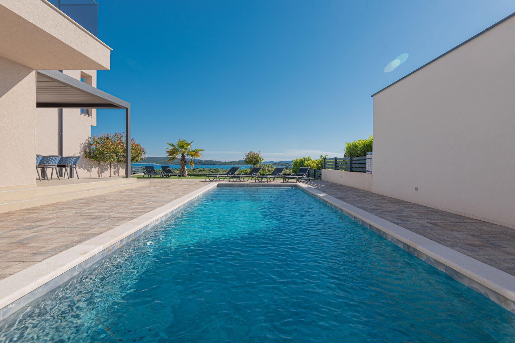 Villa HIA is a luxurious retreat located in Vodice, a vibrant coastal town in Šibenik-Knin County, Croatia. This modern villa offers an exceptional blend of comfort and style, making it an ideal choice for families and groups seeking a premium vacation experience. Note: Private parking is available, and a reservation is not required. Baggage drop-off is available before check-in. Wi-Fi is available throughout the property. Pets are allowed with notice. Semi-detached house on two floors with an internal staircase. Damage Deposit of 500EURO that will be returned upon checkout. This four-bedroom can accommodate up to eight guests. It features a flat-screen TV. The private bathroom is equipped with a shower and toilet. Thanks to its excellent location, everything you'll need for your vacation is just a short walk from the property. Grocery stores, cafes, restaurants—everything is within a 1.00 km radius. The beach is 1.00 km away from the property. The airport is 45 km away from the property.