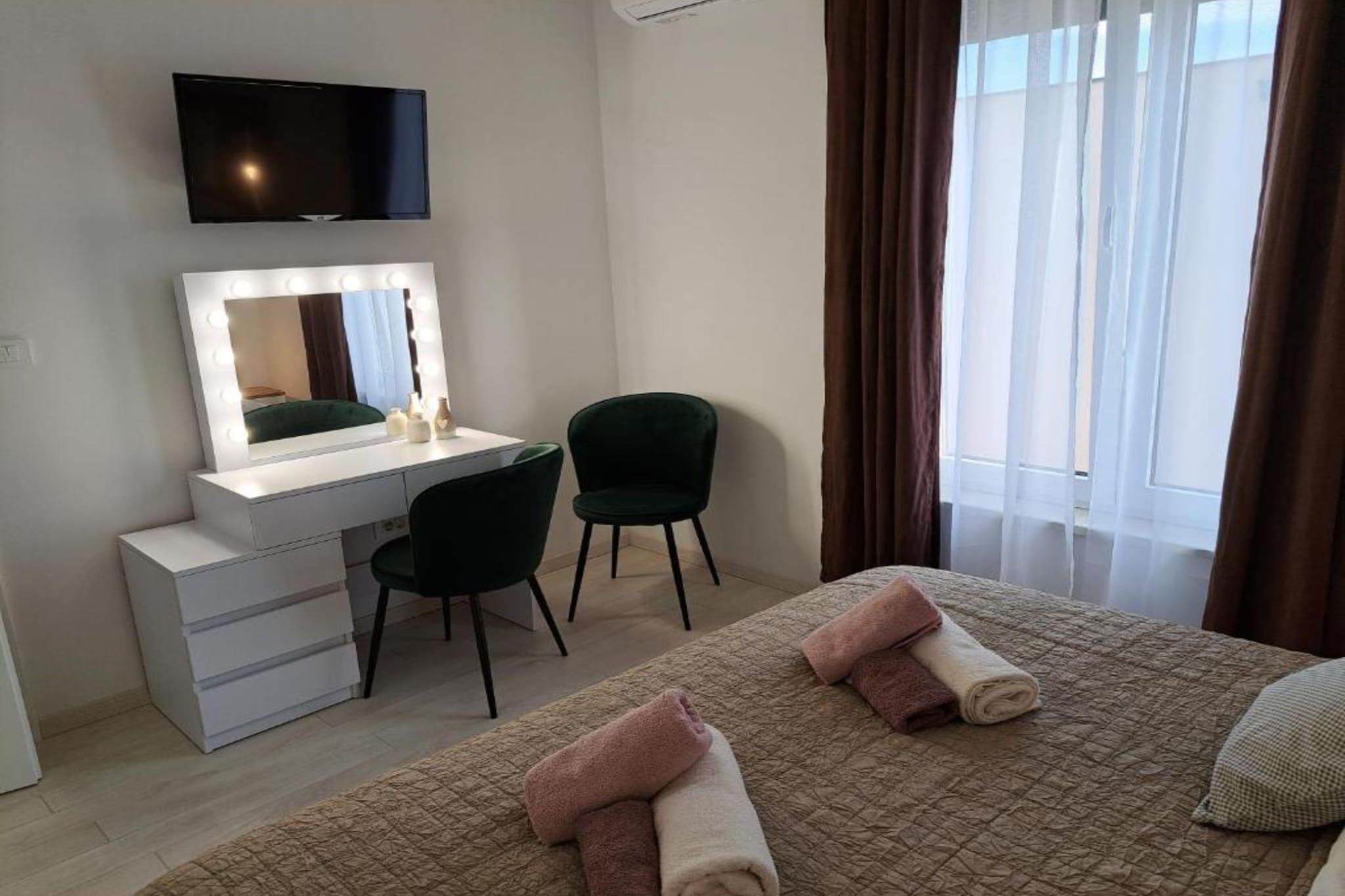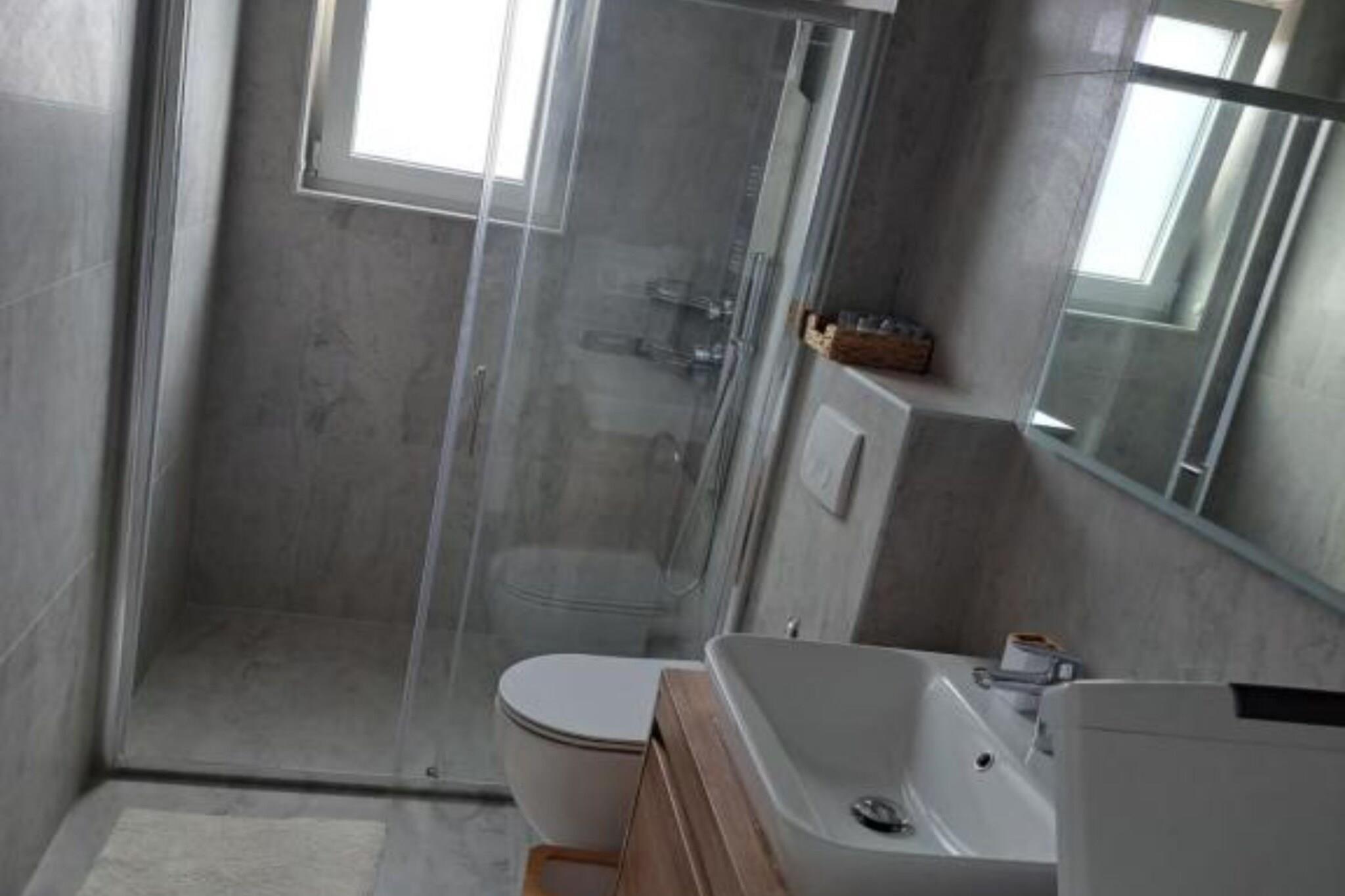 Elegant Villa Ilma with Pool is a luxurious retreat located in Vodice, a vibrant coastal town in Šibenik-Knin County, Croatia. This modern villa offers an exceptional blend of comfort and style, making it an ideal choice for families and groups seeking a premium vacation experience. Note: Private parking is available, and a reservation is not required. Baggage drop-off is available before check-in. Wi-Fi is available throughout the property. Pets are allowed with notice. A baby cot is available on request. This three-bedroom can accommodate up to six guests. It features an SAT/flat-screen TV and is combined with a Safety deposit box. The private bathroom is equipped with a shower and toilet. Thanks to its excellent location, everything you'll need for your vacation is just a short walk from the property. Grocery stores, cafes, restaurants—everything is within a 500 m radius. The beach is 1.20 km away from the property. The airport is 50 km away from the property.
