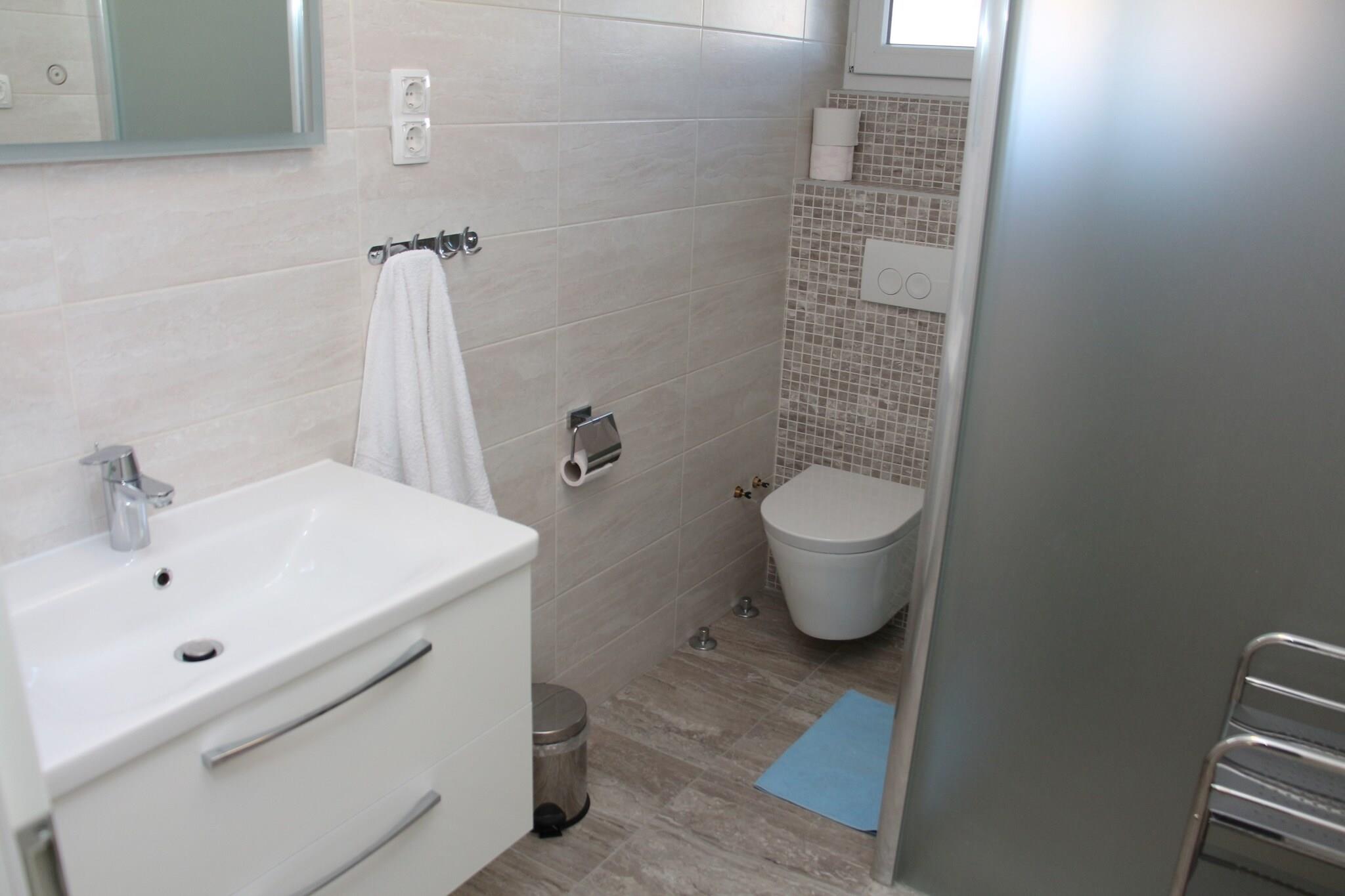 Denne hyggelige og velindrettede lejlighed med to soveværelser tilbyder et perfekt tilflugtssted for familier eller vennegrupper med plads til op til fire gæster. Lejligheden har en queen-size seng i det ene soveværelse og to enkeltsenge i det andet soveværelse. Opholdsområdet omfatter en komfortabel sovesofa, ideel til yderligere gæster, og et spisebord til fælles måltider. Gæsterne kan nyde en privat udendørs terrasse eller balkon med smuk udsigt til haven. Lejligheden er kæledyrsvenlig og tillader kæledyr med varsel og uden ekstra beregning. Gratis Wi-Fi, aircondition og privat udendørs parkering tilbydes for gæsternes bekvemmelighed. Denne lejlighed ligger kun 400 meter fra den fantastiske Malo Vitra-strand og tilbyder nem adgang til både sandede og stenede kyster. Vodices centrum, kun 850 meter væk, er hjemsted for en række butikker, restauranter og caféer. For dem, der søger eventyr, omfatter nærliggende attraktioner Aquapark Dalmatia og den betagende Krka Nationalpark. Med byens offentlige transportmuligheder let tilgængelige, kan gæster nemt udforske den smukke dalmatiske kyst. Lejligheden har et fuldt udstyret køkken med moderne apparater, herunder køleskab, ovn, opvaskemaskine og kaffemaskine, ideel til at tilberede måltider. De to badeværelser har moderne brusere for ekstra bekvemmelighed. Ejendommen omfatter også en fælles gårdhave med grillplads, så gæsterne kan nyde udendørs spisning og afslapning. Yderligere tjenester såsom daglig rengøring og tøjvask er tilgængelige mod et gebyr, hvilket sikrer et behageligt og problemfrit ophold.