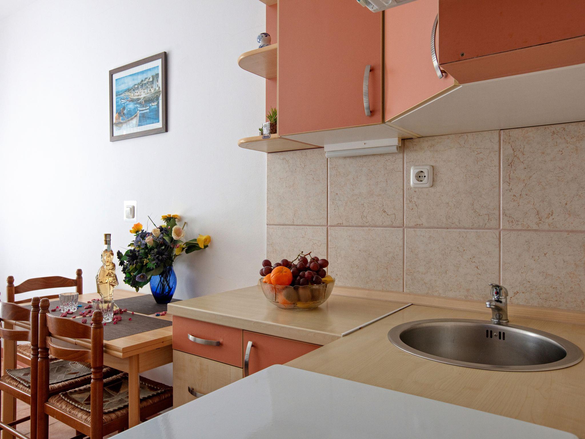 Objekt 19577 im Ort Vodice, Vodice - Norddalmatien hat Unterkunftseinheiten vom Typ Studio (1), Ferienwohnung (1) und ist 600 m von Meer entfernt. Der nächste Strand zu dieser Unterkunft ist ein Kiesstrand. Das Objekt hat mehrere Unterkunftseinheiten, so ist es möglich, dass sich während Ihres Urlaubes auch andere Gäste dort befinden werden. Die Hausbesitzer werden während Ihres Urlaubes im Objekt wohnen. Der Eigentümer ist nicht verpflichtet, zusätzliche unangemeldete Personen und Haustiere zu akzeptieren. Sie sollten im Voraus bekannt gegeben werden. INHALT