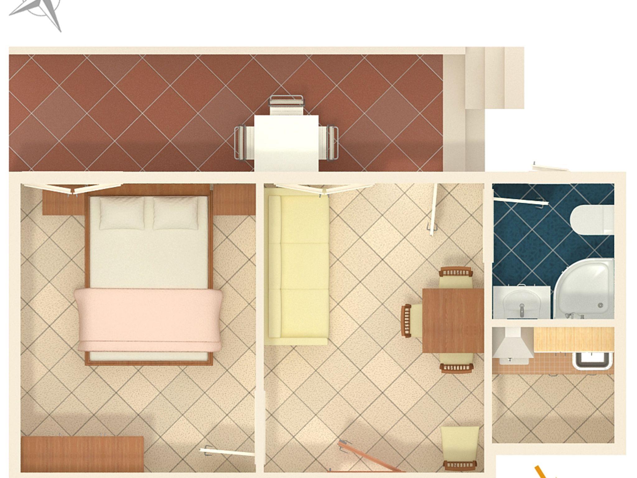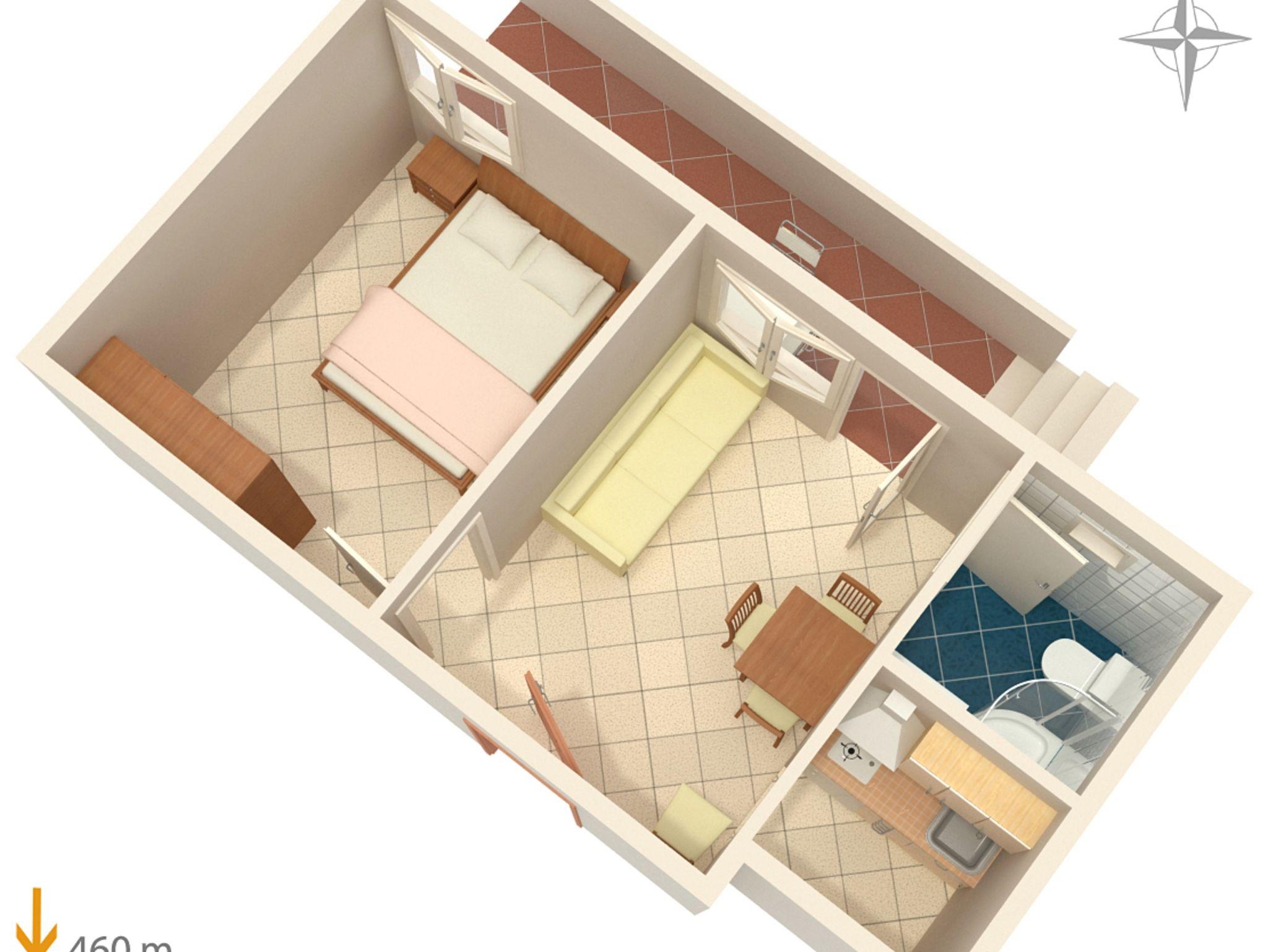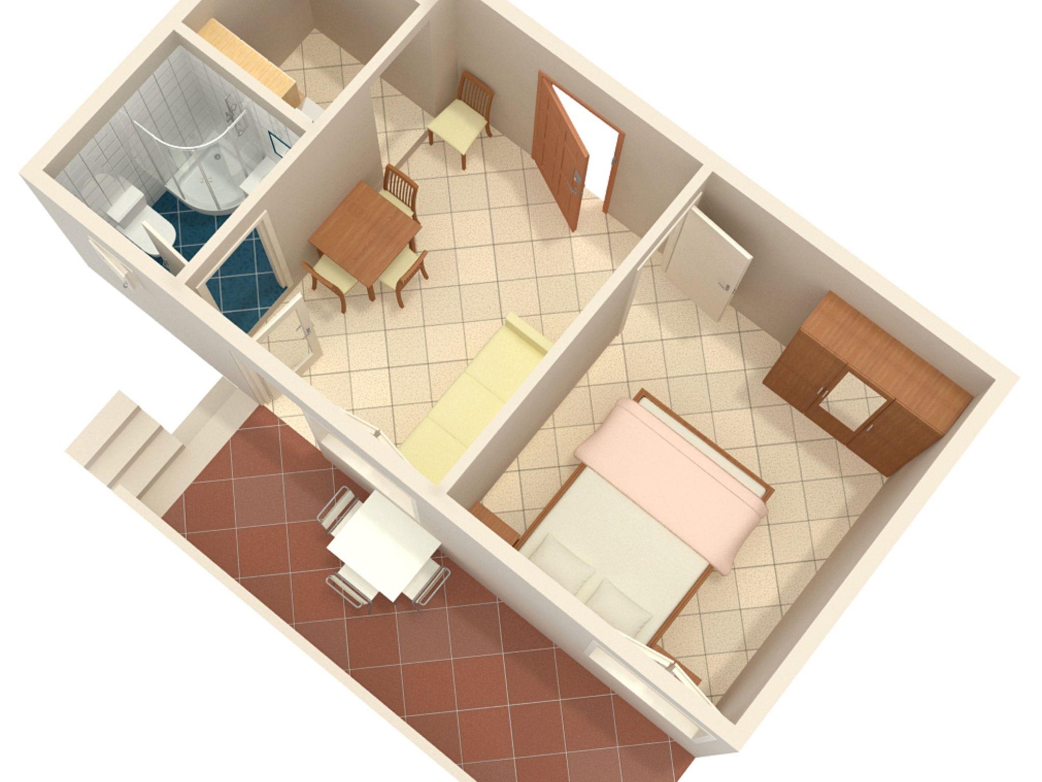 Ferienwohnung bietet Platz für 4 Gäste. Die Betten sind in Schlafzimmern, die es 1 gibt, und in Esszimmer, innerhalb einer Gesamtfläche von 25m2, angeordnet. Die Gäste haben eine eigene Terrasse zur Verfügung, auf der sie in warmen Sommernächten genießen können. Es ist erlaubt, Speisen auf dem Gemeinschafts-Grill vorzubereiten. IM PREIS INBEGRIFFEN: Kurtaxe, Endreinigung, Klimatisierung, Parkplatz, Internet, Kinderbett, tragbarer Grill. VERBINDLICHE ZUSÄTZLICHE KOSTEN: Aufzahlung für Kurzaufenthalte (prozentualer Zuschlag pro Nächtigungsanzahl: 30% - 1, 20% - 2, 10% - 3). Die Verfügbarkeit zusätzlicher Dienstleistungen in Ihrem reservierten Termin und die Preise derselben (falls nicht aufgeführt) müssen im Voraus überprüft werden. Zusätzliche Dienstleistungen die in der Zahlungsaufforderung nicht aufgeführt sind werden direkt beim Vermieter bezahlt, angenommen der Gast nutzt auch diese.