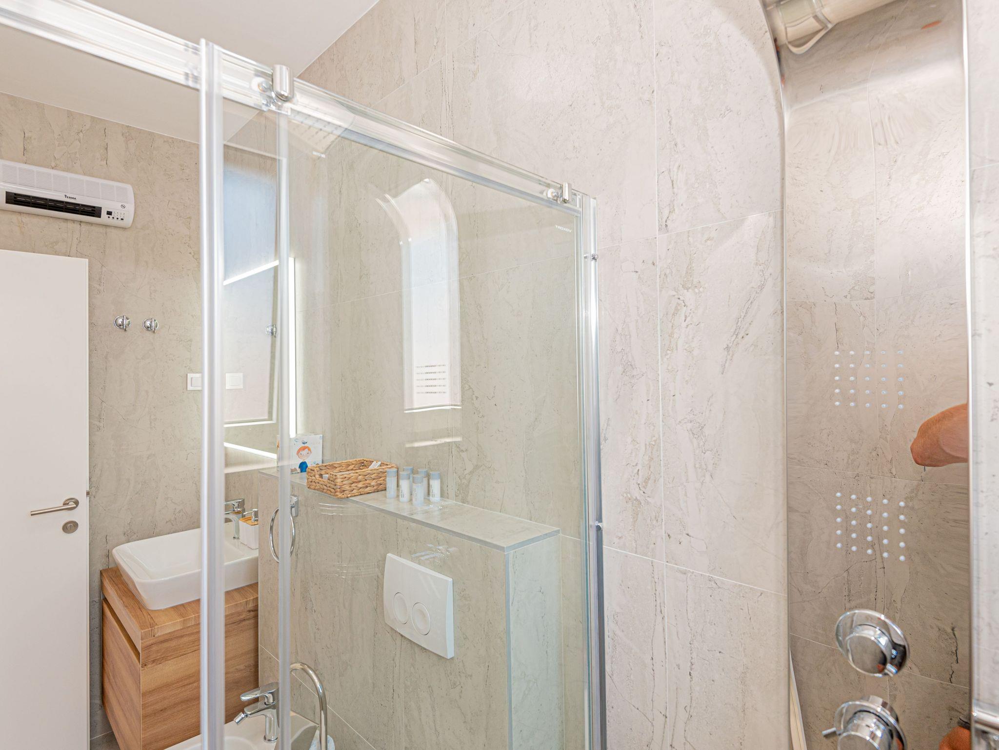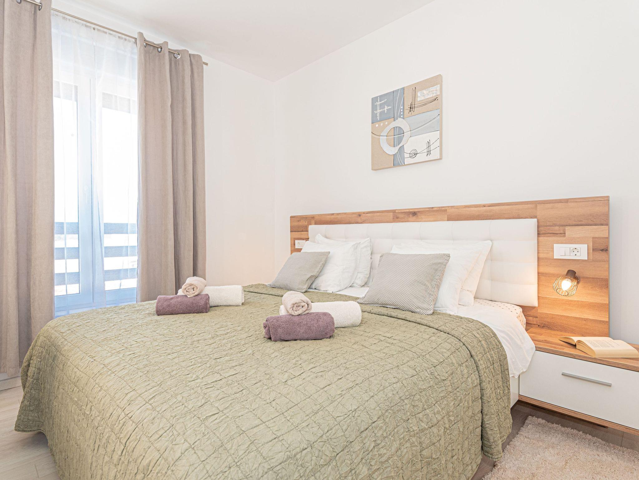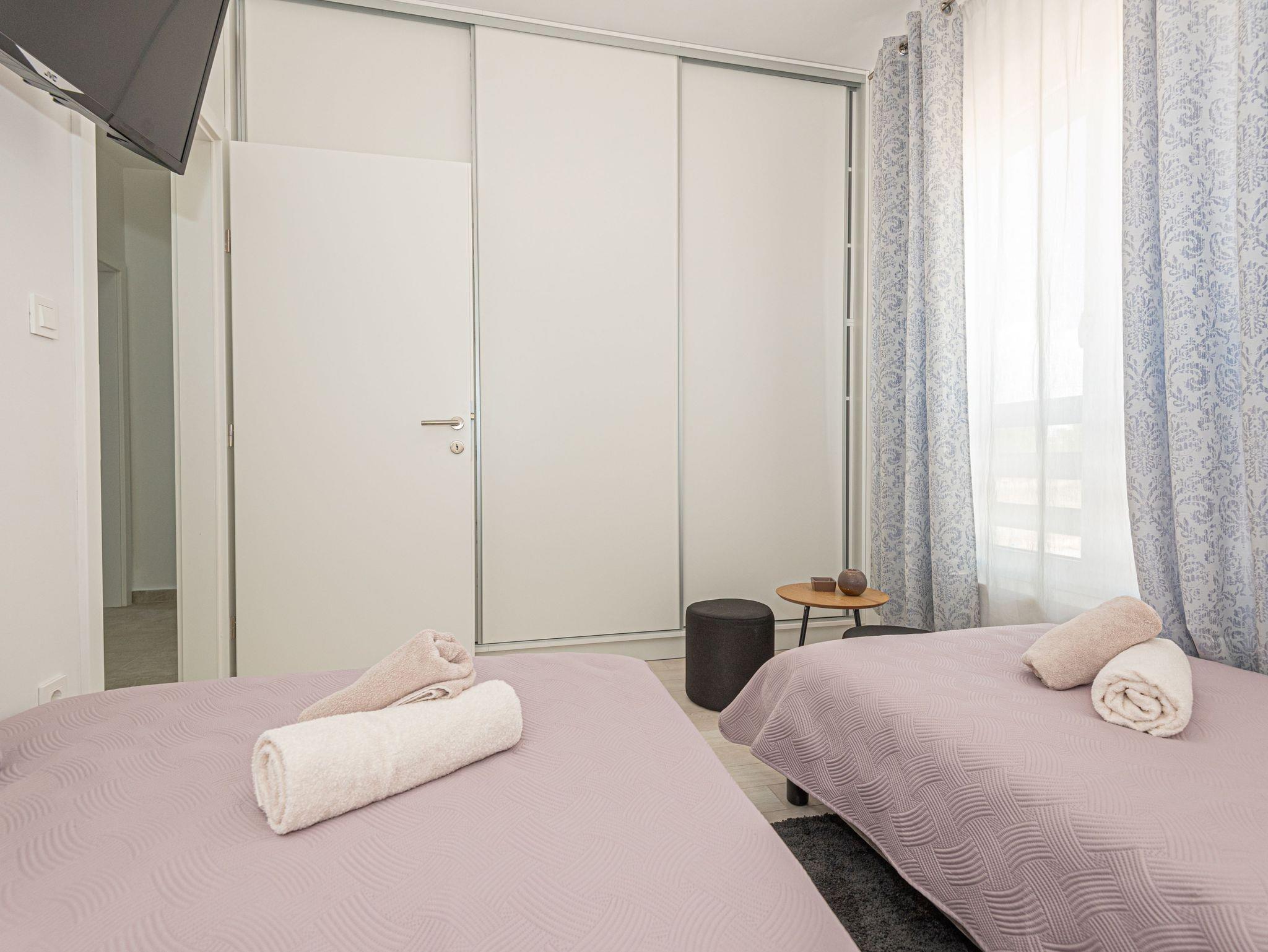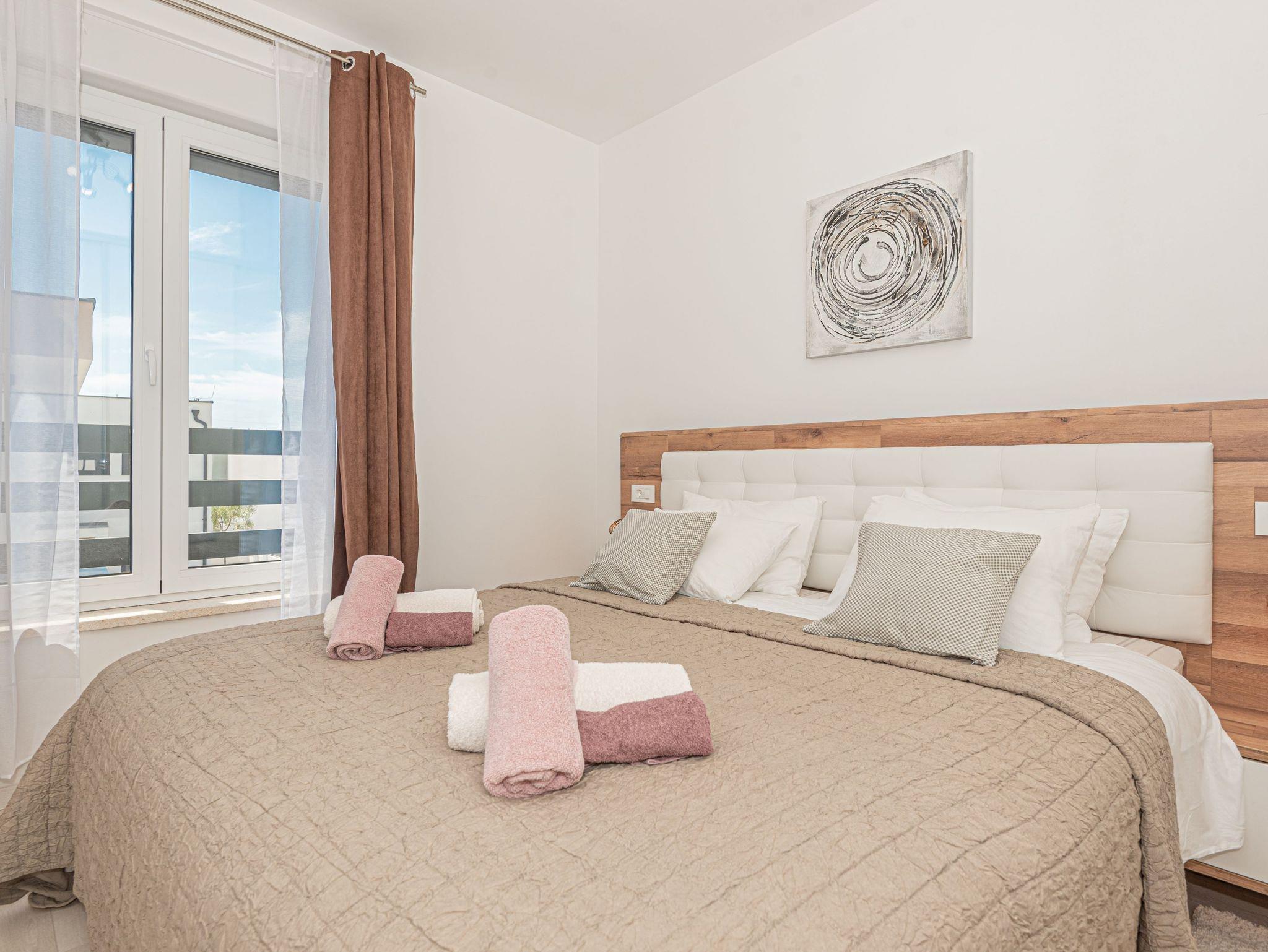 Haus bietet Platz für 6 Gäste. Die Betten sind in Schlafzimmern, die es 3 gibt, innerhalb einer Gesamtfläche von 101m2, angeordnet. Die Gäste haben eine eigene Terrasse zur Verfügung, auf der sie in warmen Sommernächten genießen können. Für vollen Genuss und Entspannung gibt es einen privaten Grill für Gäste dieser Unterkunft. Während ihres Aufenthalts können sich Gäste im privaten Schwimmbad entspannen. IM PREIS INBEGRIFFEN: Kurtaxe, Endreinigung, Klimatisierung, Pool, Parkplatz, Internet, Kinderbett, Bügeleisen, Bügelbrett, Föhn. VERBINDLICHE ZUSÄTZLICHE KOSTEN: Aufzahlung für Kurzaufenthalte (prozentualer Zuschlag pro Nächtigungsanzahl: 30% - 1, 20% - 2, 10% - 3). UNVERBINDLICHE ZUSÄTZLICHE KOSTEN: Boot (200,00 € pro Nacht). Die Verfügbarkeit zusätzlicher Dienstleistungen in Ihrem reservierten Termin und die Preise derselben (falls nicht aufgeführt) müssen im Voraus überprüft werden. Zusätzliche Dienstleistungen die in der Zahlungsaufforderung nicht aufgeführt sind werden direkt beim Vermieter bezahlt, angenommen der Gast nutzt auch diese. Ermäßigung auf den Grundpreis: Gratistag 14=13 (bei einem Aufenthalt von 14 Tagen oder mehr erhalten Sie einen Gratistag für den Aufenthalt bis 31.12.26).