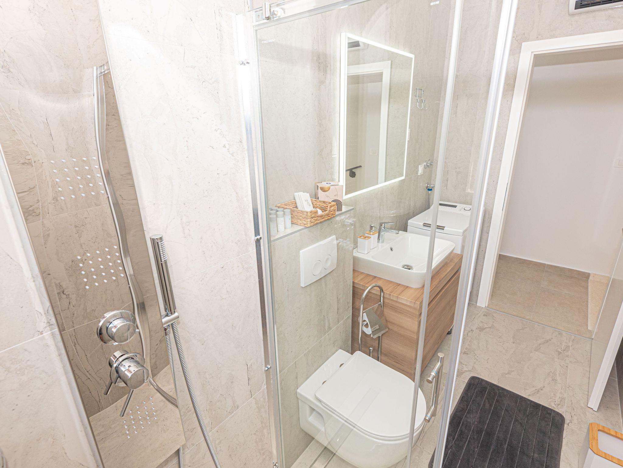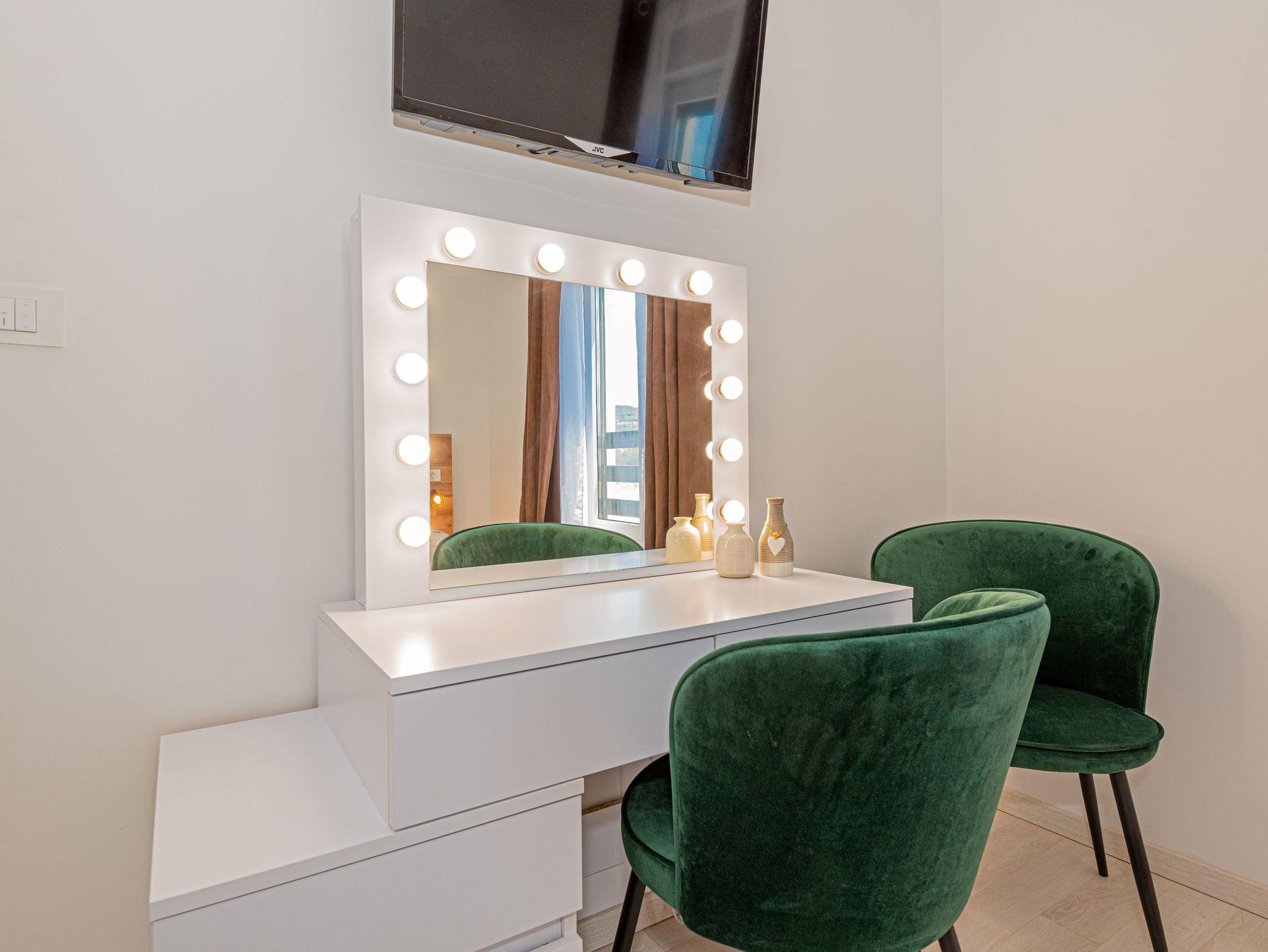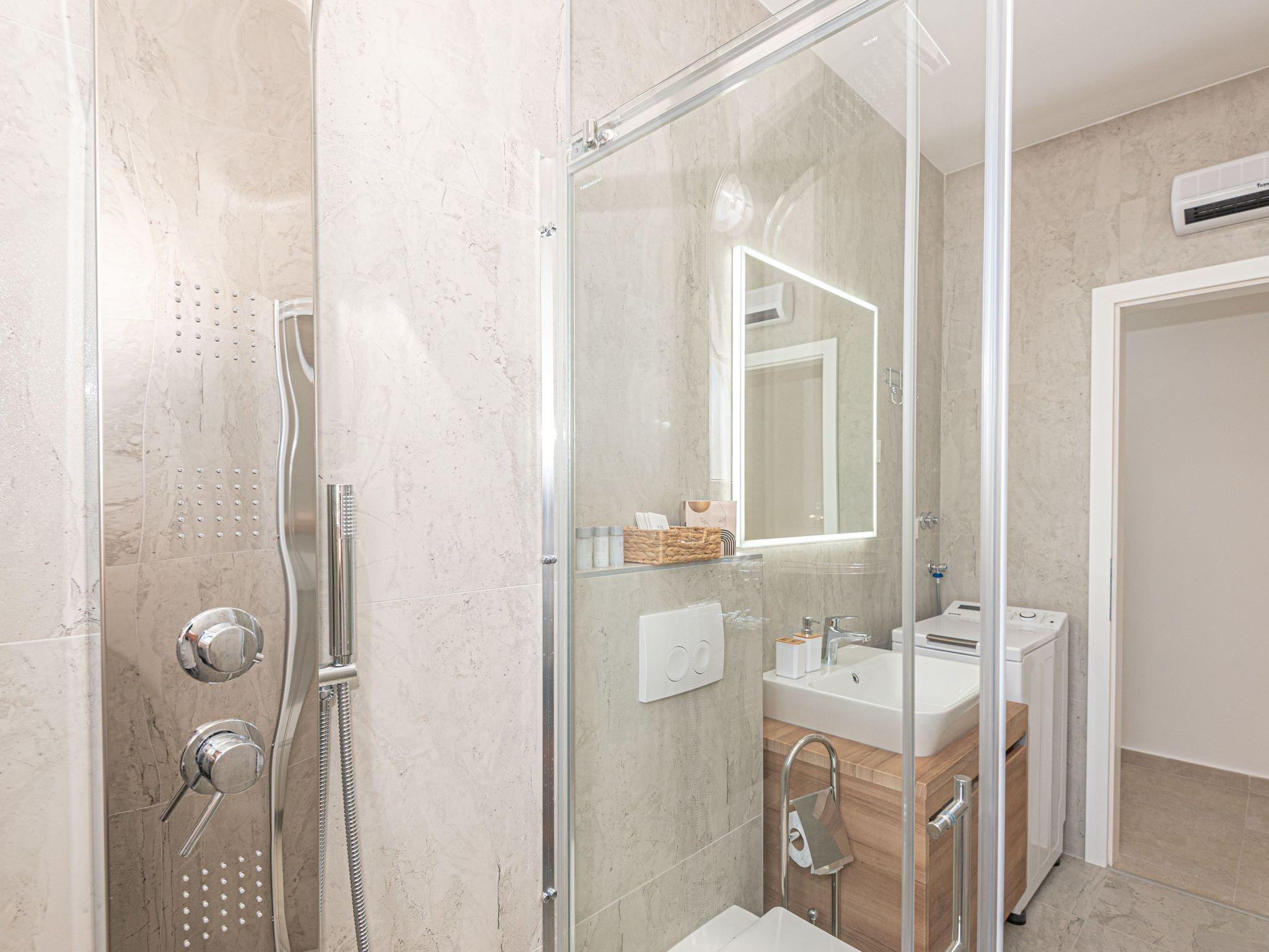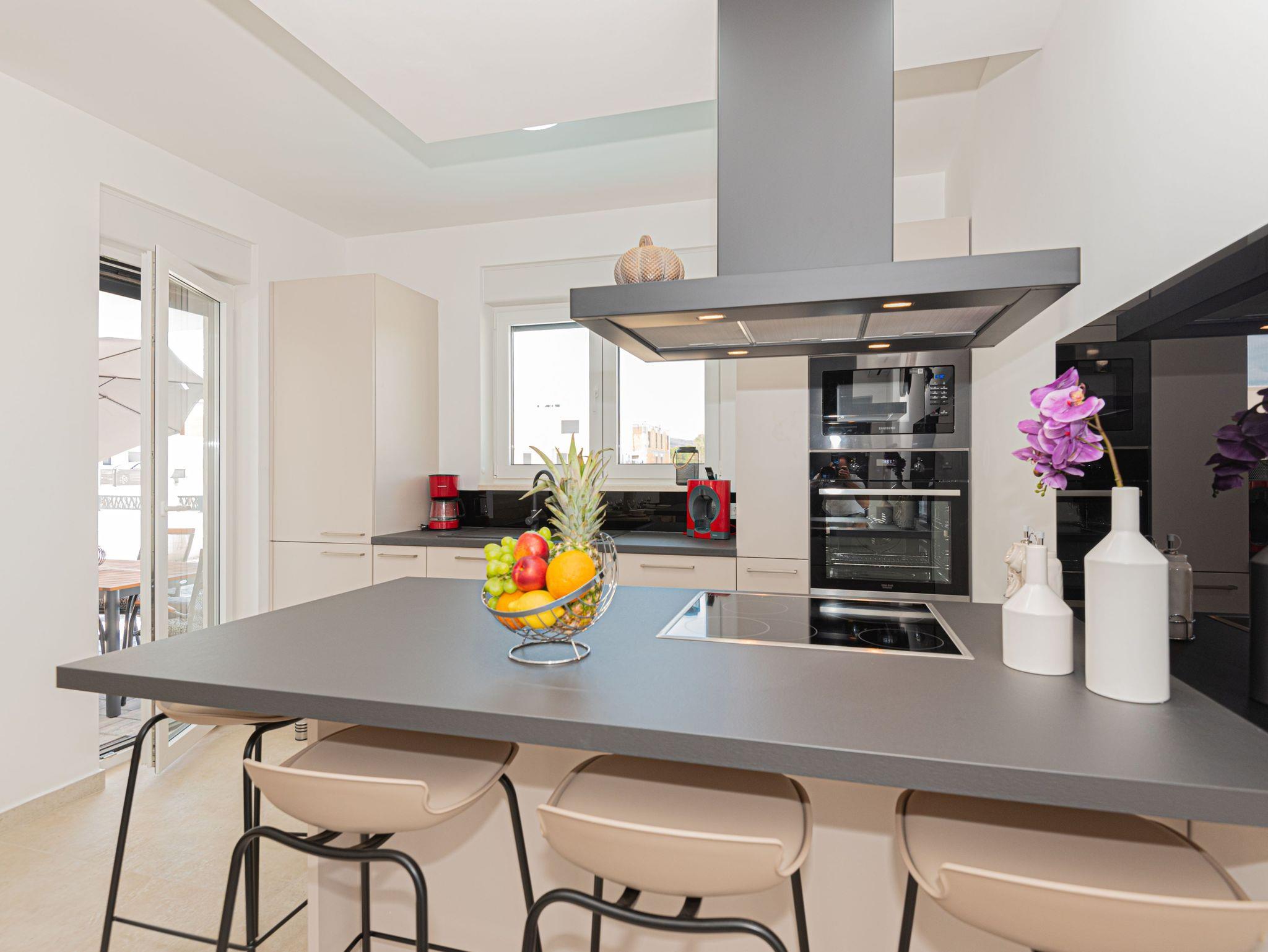 Haus bietet Platz für 6 Gäste. Die Betten sind in Schlafzimmern, die es 3 gibt, innerhalb einer Gesamtfläche von 101m2, angeordnet. Die Gäste haben eine eigene Terrasse zur Verfügung, auf der sie in warmen Sommernächten genießen können. Für vollen Genuss und Entspannung gibt es einen privaten Grill für Gäste dieser Unterkunft. Während ihres Aufenthalts können sich Gäste im privaten Schwimmbad entspannen. IM PREIS INBEGRIFFEN: Kurtaxe, Endreinigung, Klimatisierung, Pool, Parkplatz, Internet, Kinderbett, Bügeleisen, Bügelbrett, Föhn. VERBINDLICHE ZUSÄTZLICHE KOSTEN: Aufzahlung für Kurzaufenthalte (prozentualer Zuschlag pro Nächtigungsanzahl: 30% - 1, 20% - 2, 10% - 3). UNVERBINDLICHE ZUSÄTZLICHE KOSTEN: Boot (200,00 € pro Nacht). Die Verfügbarkeit zusätzlicher Dienstleistungen in Ihrem reservierten Termin und die Preise derselben (falls nicht aufgeführt) müssen im Voraus überprüft werden. Zusätzliche Dienstleistungen die in der Zahlungsaufforderung nicht aufgeführt sind werden direkt beim Vermieter bezahlt, angenommen der Gast nutzt auch diese. Ermäßigung auf den Grundpreis: Gratistag 14=13 (bei einem Aufenthalt von 14 Tagen oder mehr erhalten Sie einen Gratistag für den Aufenthalt bis 31.12.26).