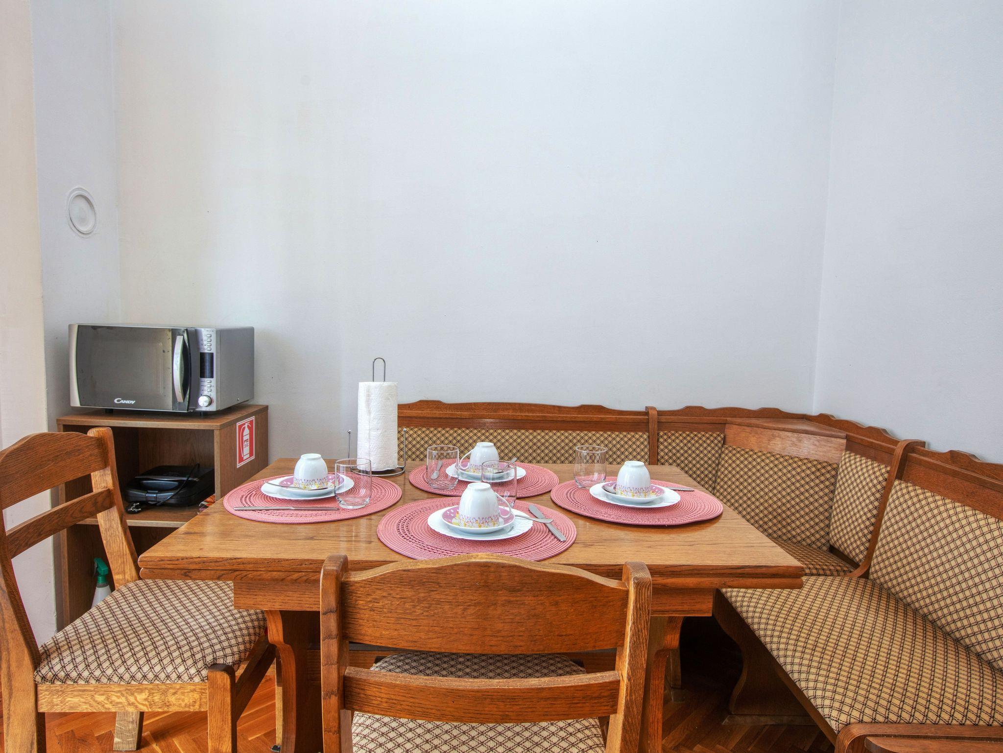Umgebung des Objekts (Ordentlich), Hof (50m2, Kinderbereich, Sitzbereich), Parkplatz (Anzahl der Parkplätze: 3, Entfernung vom Objekt: im Hof), Grill: gemeinsam, WiFi Internet, Föhn, Bügeleisen, Bügelbrett