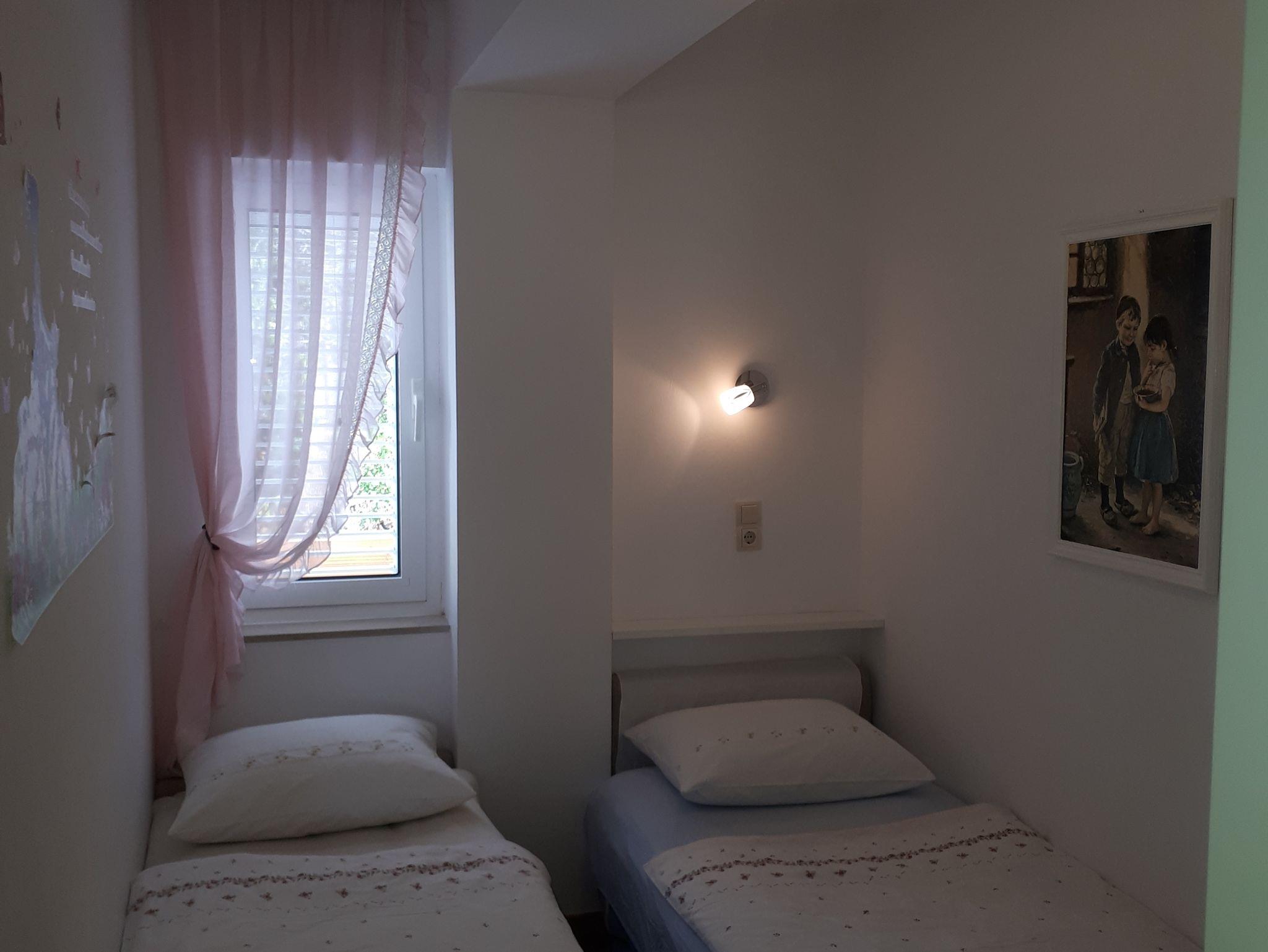 Ferienwohnung bietet Platz für 4 Gäste. Die Betten sind in Schlafzimmern, die es 2 gibt, innerhalb einer Gesamtfläche von 48m2, angeordnet. Die Gäste haben eine eigene Terrasse zur Verfügung, auf der sie in warmen Sommernächten genießen können. Es ist erlaubt, Speisen auf dem Gemeinschafts-Grill vorzubereiten. IM PREIS INBEGRIFFEN: Kurtaxe, Endreinigung, Klimatisierung, Parkplatz, Internet, Bügeleisen, Bügelbrett, Föhn. VERBINDLICHE ZUSÄTZLICHE KOSTEN: Aufzahlung für Kurzaufenthalte (prozentualer Zuschlag pro Nächtigungsanzahl: 30% - 1, 20% - 2, 10% - 3). UNVERBINDLICHE ZUSÄTZLICHE KOSTEN: Wäschewaschen (7,00 € Waschen), Zusatzbett (13,00 € pro Nacht). Die Verfügbarkeit zusätzlicher Dienstleistungen in Ihrem reservierten Termin und die Preise derselben (falls nicht aufgeführt) müssen im Voraus überprüft werden. Zusätzliche Dienstleistungen die in der Zahlungsaufforderung nicht aufgeführt sind werden direkt beim Vermieter bezahlt, angenommen der Gast nutzt auch diese. Ermäßigung auf den Grundpreis: Gratistag 21=19 (bei einem Aufenthalt von 21 Tagen oder mehr erhalten Sie 2 Gratistage für den Aufenthalt bis 31.12.26).