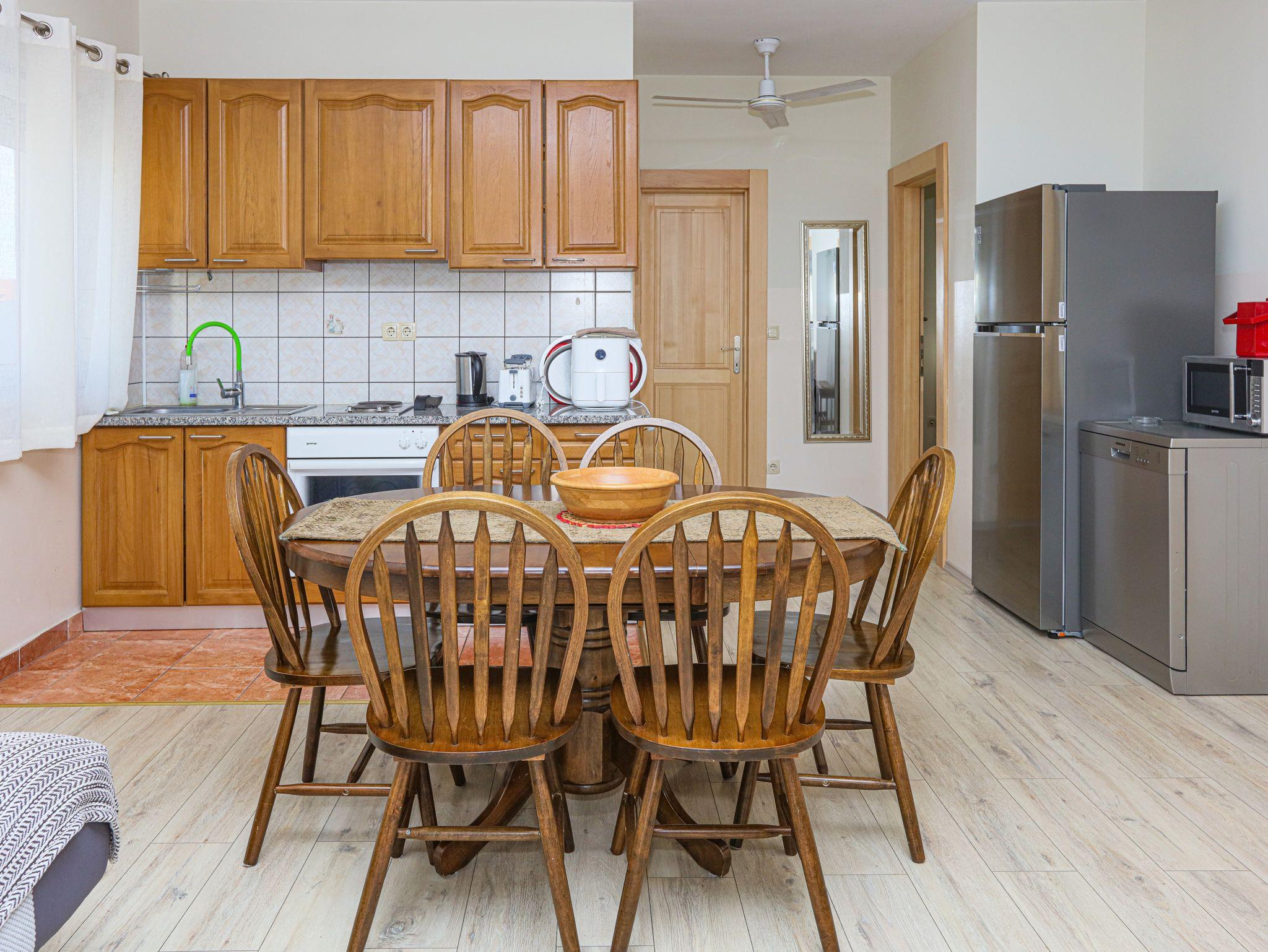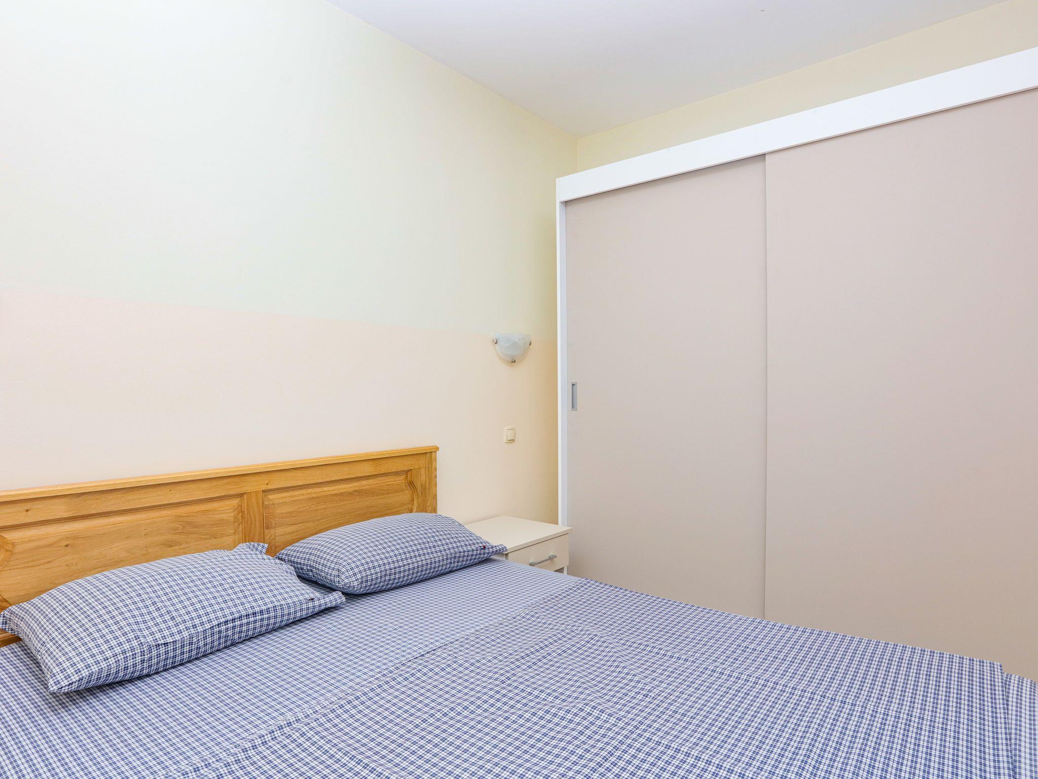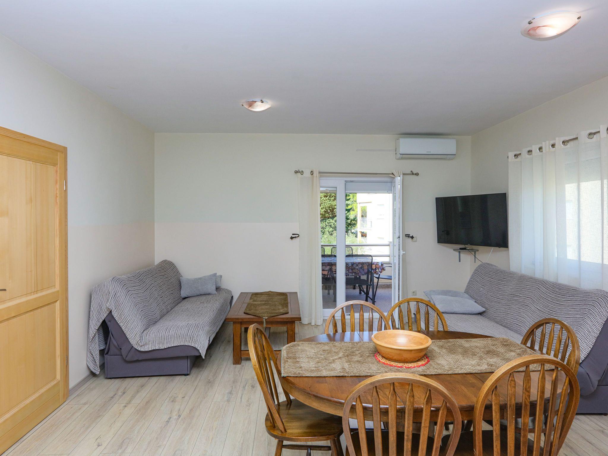 Ferienwohnung bietet Platz für 6 Gäste. Die Betten sind in Schlafzimmern, die es 2 gibt, und in Wohnzimmer, innerhalb einer Gesamtfläche von 60m2, angeordnet. Die Gäste haben einen eigenen Balkon zur Verfügung, auf der sie in warmen Sommernächten genießen können. Es ist erlaubt, Speisen auf dem Gemeinschafts-Grill vorzubereiten. In der Unterkunftseinheit besteht die Möglichkeit des Mitbringens von Haustieren, und die Dienstleistung ist im Preis der Unterkunft enthalten. IM PREIS INBEGRIFFEN: Kurtaxe, Endreinigung, Klimatisierung, Parkplatz, Internet, Wäschewaschen, Haustiere, Kinderbett, Zusatzbett, Föhn. Die Verfügbarkeit zusätzlicher Dienstleistungen in Ihrem reservierten Termin und die Preise derselben (falls nicht aufgeführt) müssen im Voraus überprüft werden. Zusätzliche Dienstleistungen die in der Zahlungsaufforderung nicht aufgeführt sind werden direkt beim Vermieter bezahlt, angenommen der Gast nutzt auch diese. Ermäßigung auf den Grundpreis: Gratistag 14=13 (bei einem Aufenthalt von 14 Tagen oder mehr erhalten Sie einen Gratistag für den Aufenthalt bis 31.12.26).