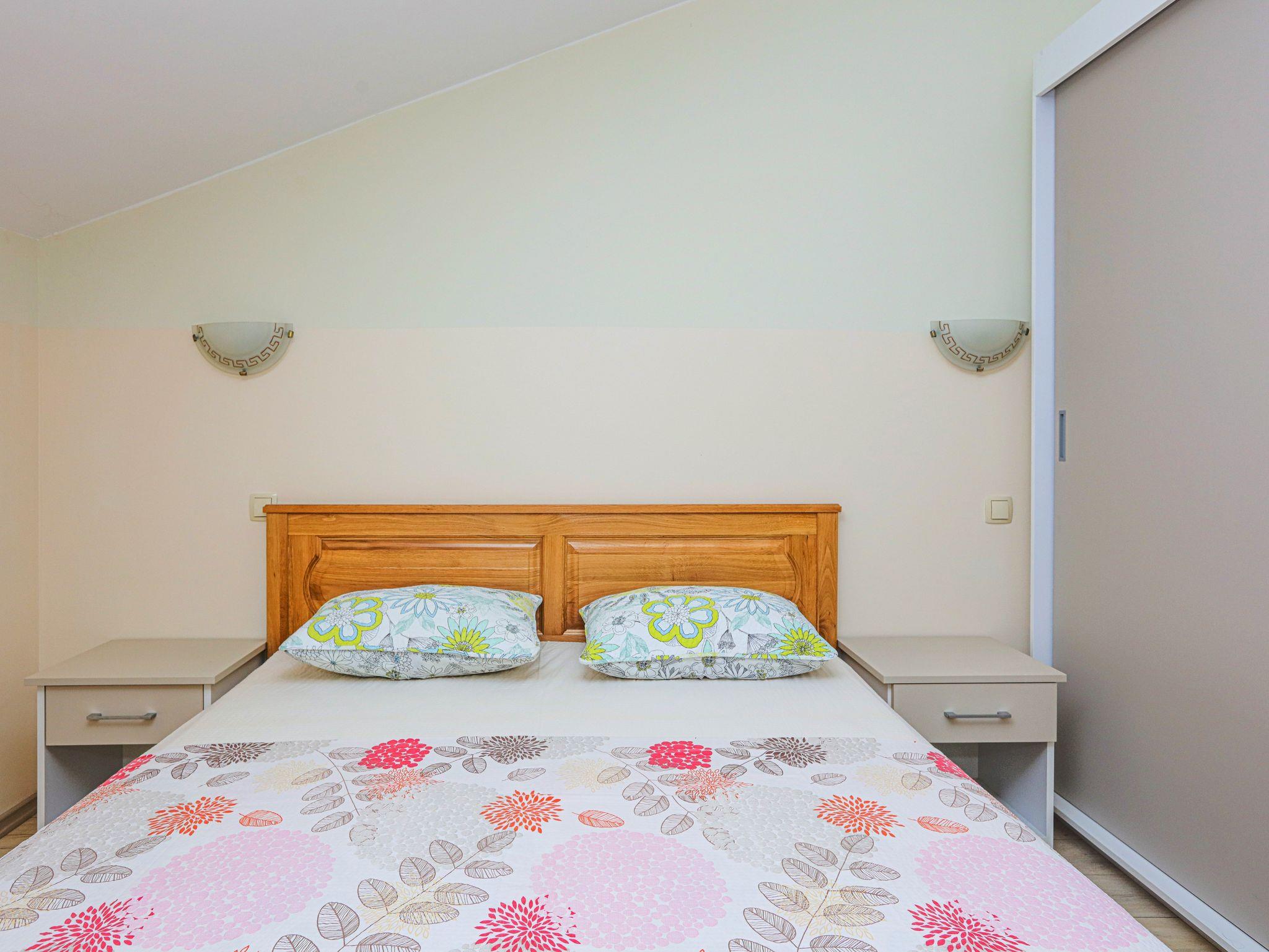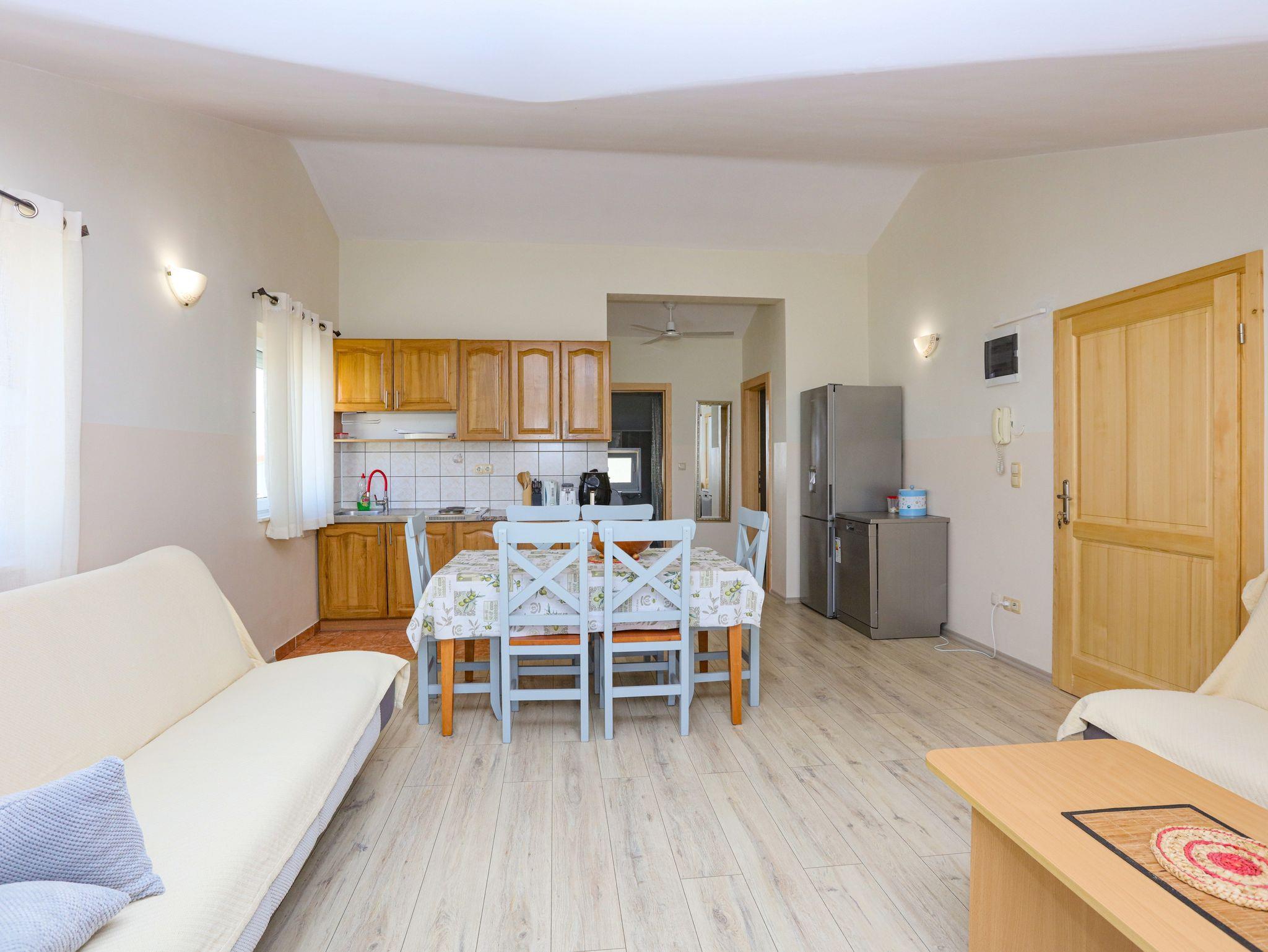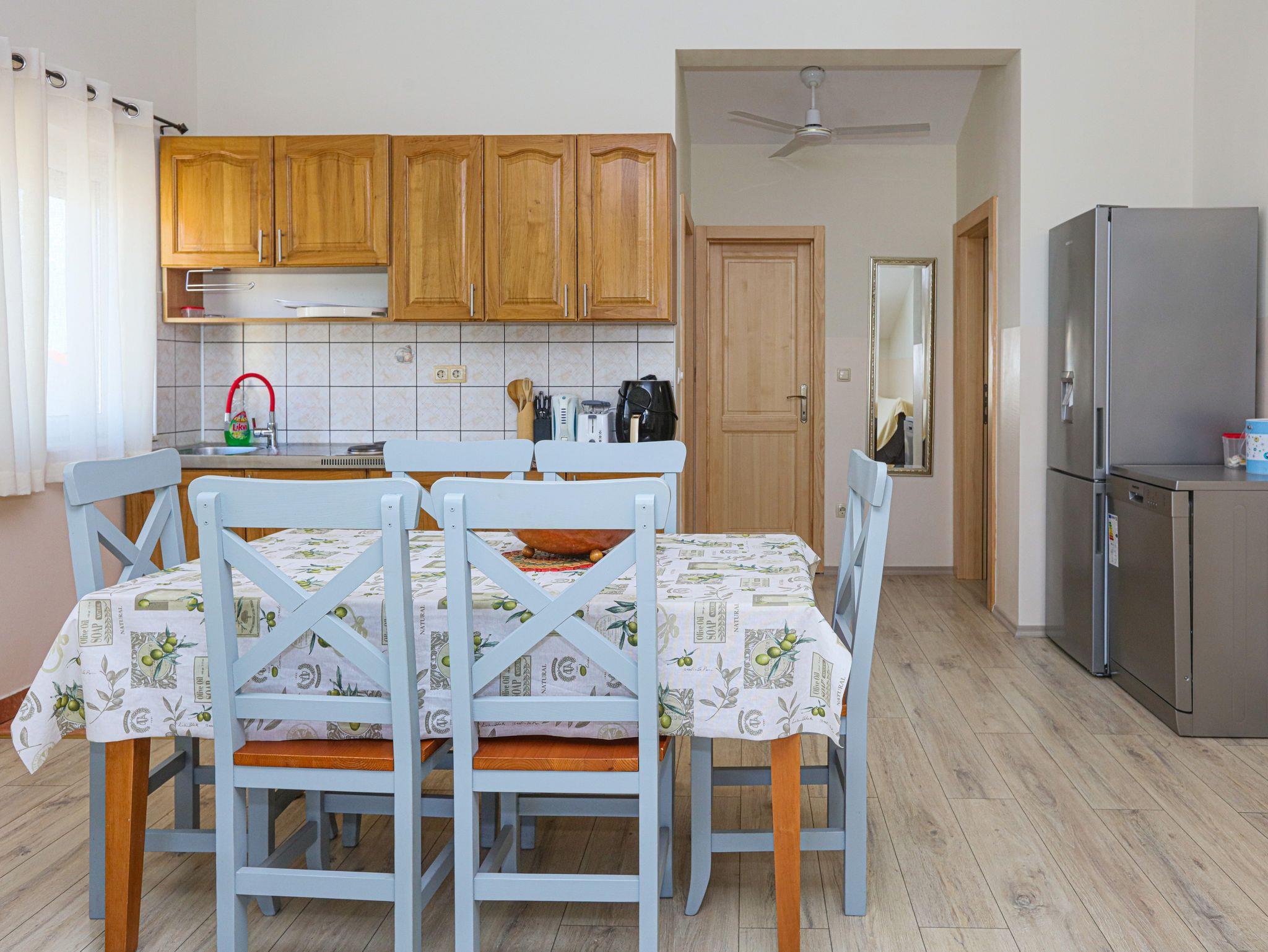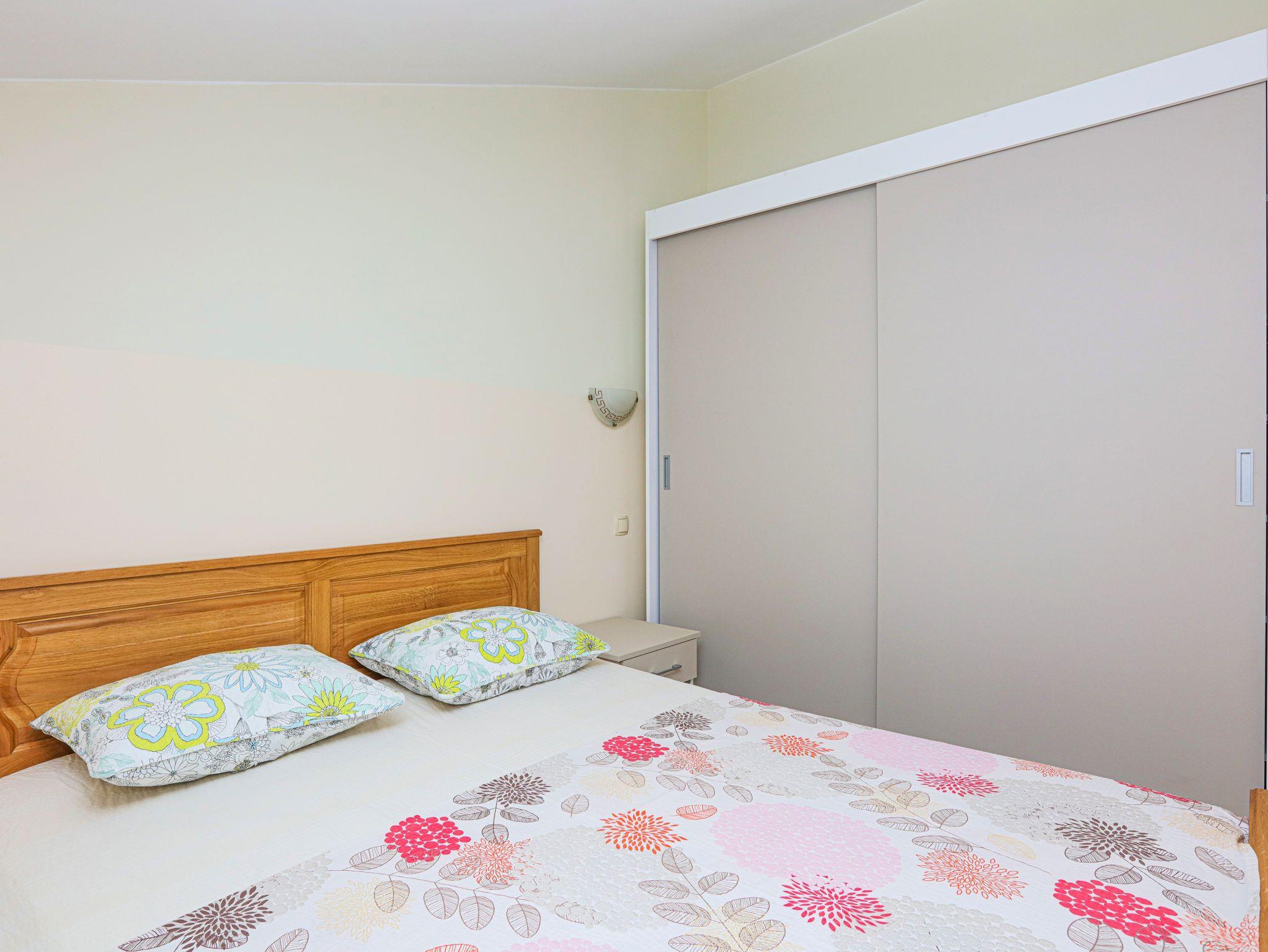 Ferienwohnung bietet Platz für 6 Gäste. Die Betten sind in Schlafzimmern, die es 2 gibt, und in Wohnzimmer, innerhalb einer Gesamtfläche von 57m2, angeordnet. Die Gäste haben einen eigenen Balkon zur Verfügung, auf der sie in warmen Sommernächten genießen können. Es ist erlaubt, Speisen auf dem Gemeinschafts-Grill vorzubereiten. In der Unterkunftseinheit besteht die Möglichkeit des Mitbringens von Haustieren, und die Dienstleistung ist im Preis der Unterkunft enthalten. IM PREIS INBEGRIFFEN: Kurtaxe, Endreinigung, Klimatisierung, Parkplatz, Internet, Wäschewaschen, Haustiere, Kinderbett, Zusatzbett, Föhn. Die Verfügbarkeit zusätzlicher Dienstleistungen in Ihrem reservierten Termin und die Preise derselben (falls nicht aufgeführt) müssen im Voraus überprüft werden. Zusätzliche Dienstleistungen die in der Zahlungsaufforderung nicht aufgeführt sind werden direkt beim Vermieter bezahlt, angenommen der Gast nutzt auch diese. Ermäßigung auf den Grundpreis: Gratistag 14=13 (bei einem Aufenthalt von 14 Tagen oder mehr erhalten Sie einen Gratistag für den Aufenthalt bis 31.12.26).