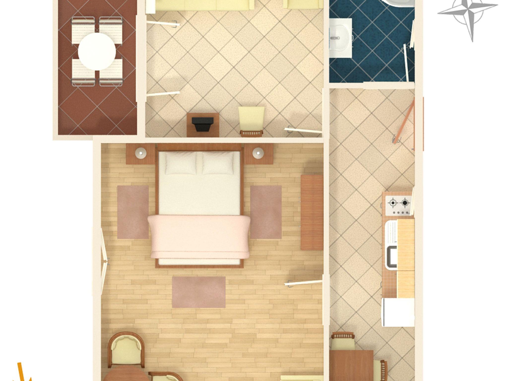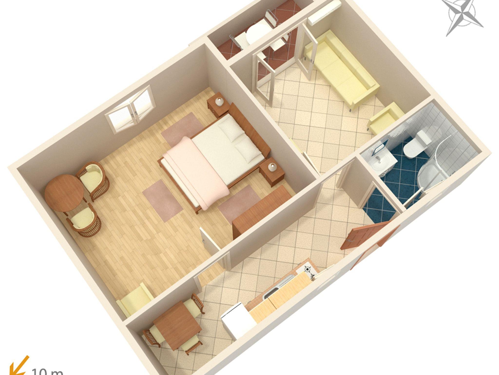 Ferienwohnung bietet Platz für 4 Gäste. Die Betten sind in Schlafzimmern, die es 1 gibt, und in Wohnzimmer, innerhalb einer Gesamtfläche von 40m2, angeordnet. Die Gäste haben eine eigene Terrasse zur Verfügung, auf der sie in warmen Sommernächten genießen können. Das Apartment bietet Meerblick. Es ist erlaubt, Speisen auf dem Gemeinschafts-Grill vorzubereiten. IM PREIS INBEGRIFFEN: Kurtaxe, Endreinigung, Parkplatz, Internet, Kinderbett. VERBINDLICHE ZUSÄTZLICHE KOSTEN: Aufzahlung für Kurzaufenthalte (prozentualer Zuschlag pro Nächtigungsanzahl: 30% - 1, 20% - 2, 10% - 3). UNVERBINDLICHE ZUSÄTZLICHE KOSTEN: Klimatisierung (7,00 € pro Nacht). Die Verfügbarkeit zusätzlicher Dienstleistungen in Ihrem reservierten Termin und die Preise derselben (falls nicht aufgeführt) müssen im Voraus überprüft werden. Zusätzliche Dienstleistungen die in der Zahlungsaufforderung nicht aufgeführt sind werden direkt beim Vermieter bezahlt, angenommen der Gast nutzt auch diese.