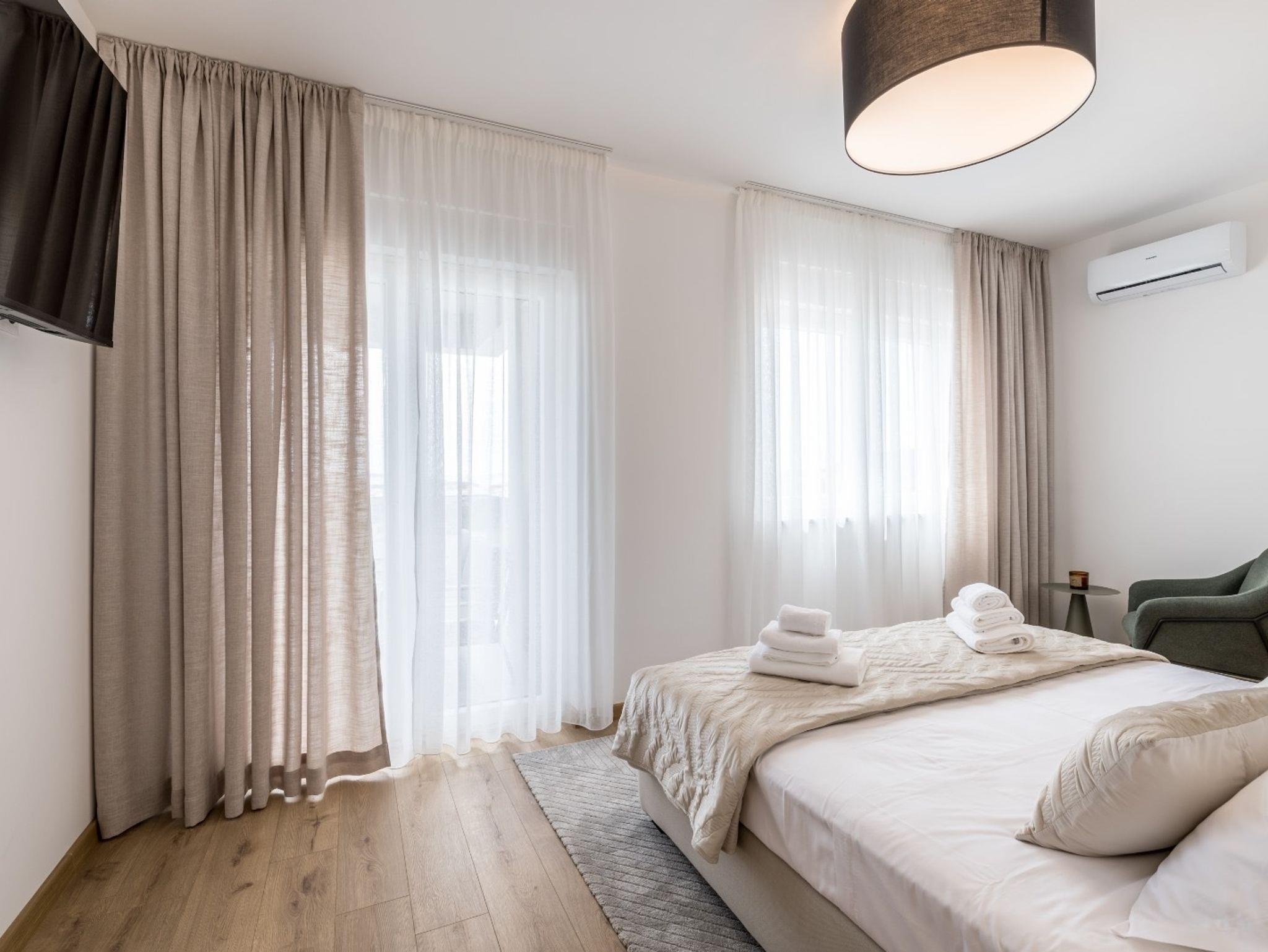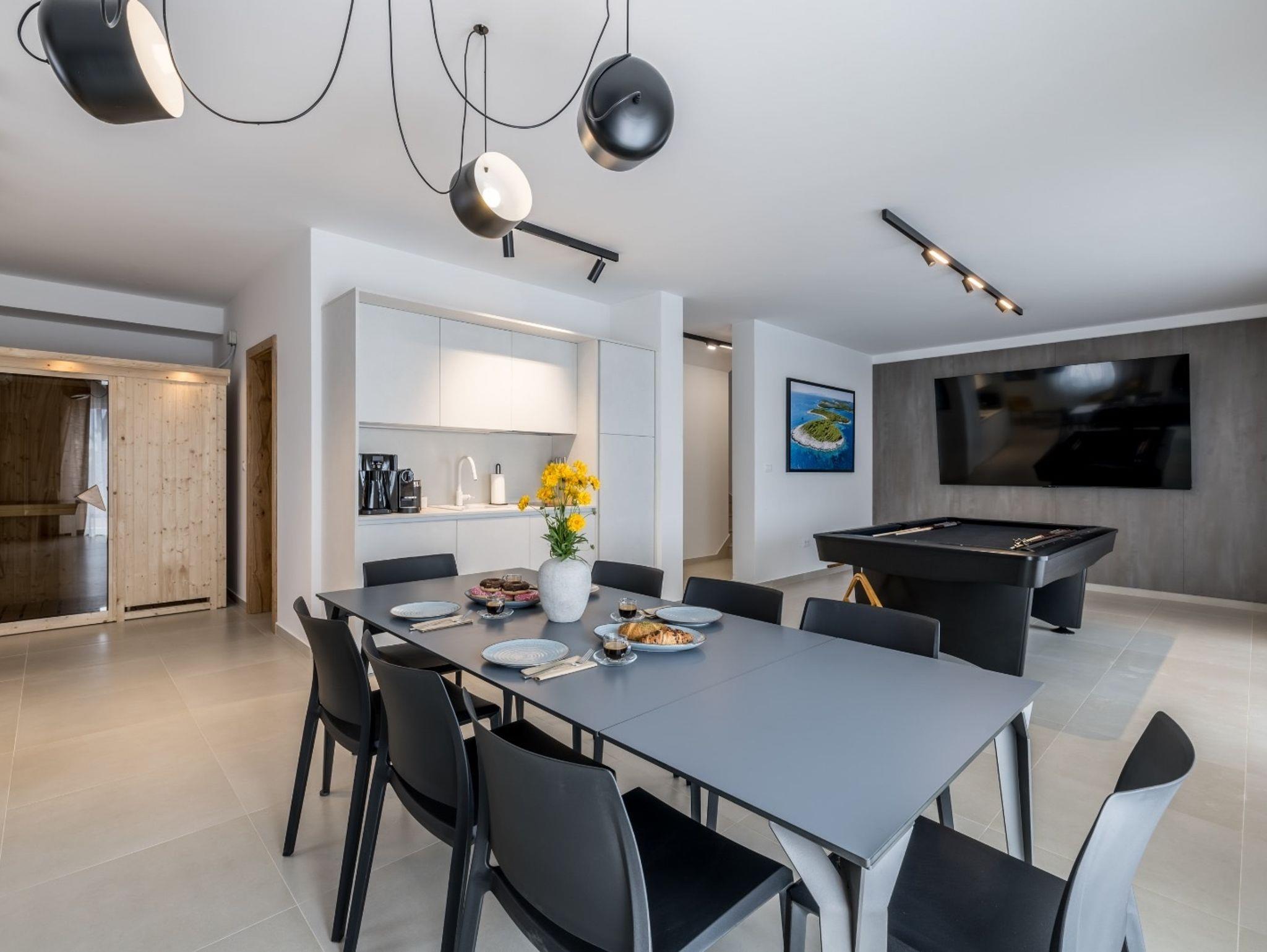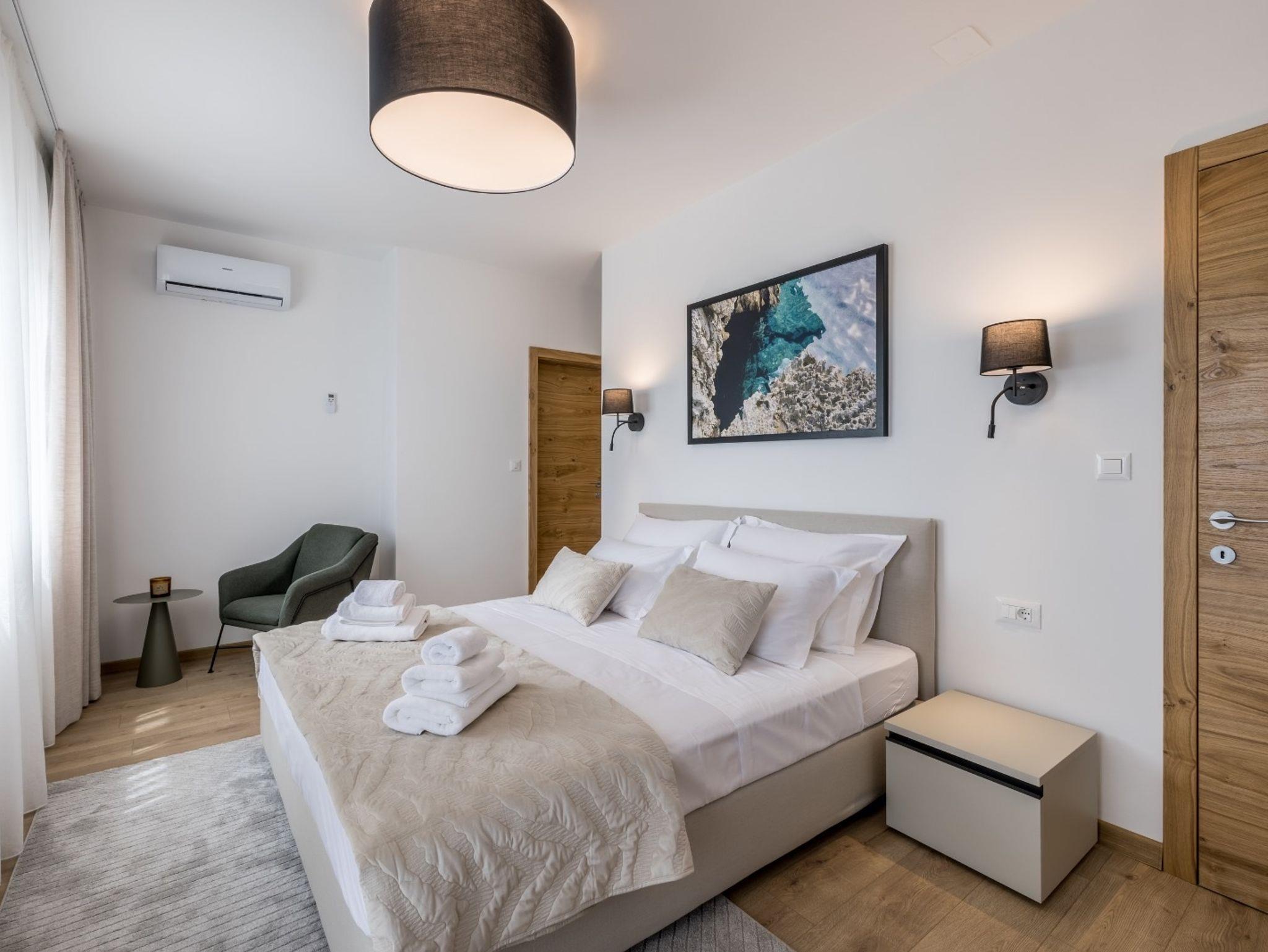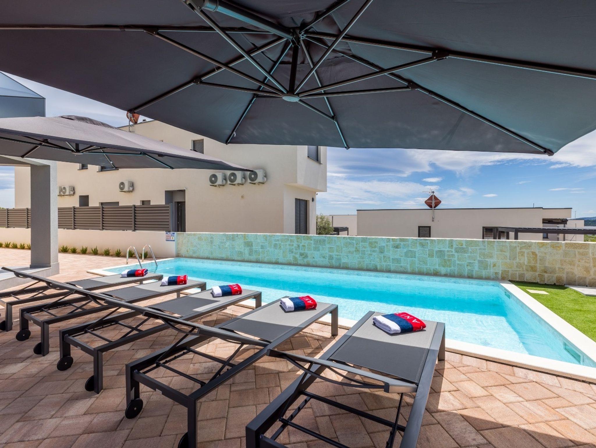 Haus bietet Platz für 10 Gäste. Die Betten sind in Schlafzimmern, die es 4 gibt, und in Wohnzimmer, innerhalb einer Gesamtfläche von 223m2, angeordnet. Die Gäste haben eine eigene Terrasse zur Verfügung, auf der sie in warmen Sommernächten genießen können. Das Haus bietet Meerblick. Für vollen Genuss und Entspannung gibt es einen privaten Grill für Gäste dieser Unterkunft. Während ihres Aufenthalts können sich Gäste im privaten Schwimmbad entspannen. IM PREIS INBEGRIFFEN: Kurtaxe, Endreinigung, Klimatisierung, Pool, Parkplatz, Internet, Kinderbett, Bügeleisen, Bügelbrett, Föhn, Sonnenschirm, Liegestühle. Die Verfügbarkeit zusätzlicher Dienstleistungen in Ihrem reservierten Termin und die Preise derselben (falls nicht aufgeführt) müssen im Voraus überprüft werden. Zusätzliche Dienstleistungen die in der Zahlungsaufforderung nicht aufgeführt sind werden direkt beim Vermieter bezahlt, angenommen der Gast nutzt auch diese.