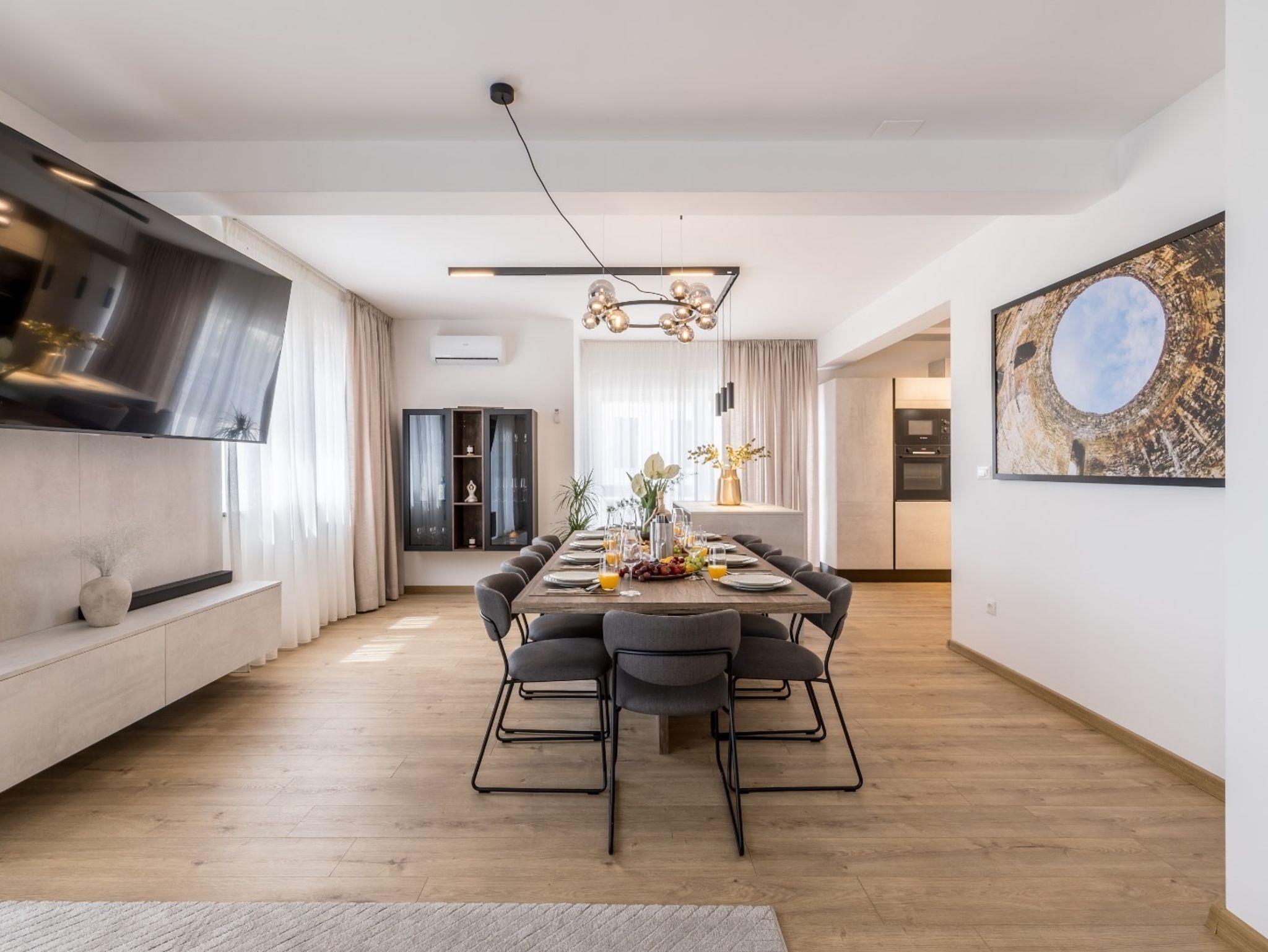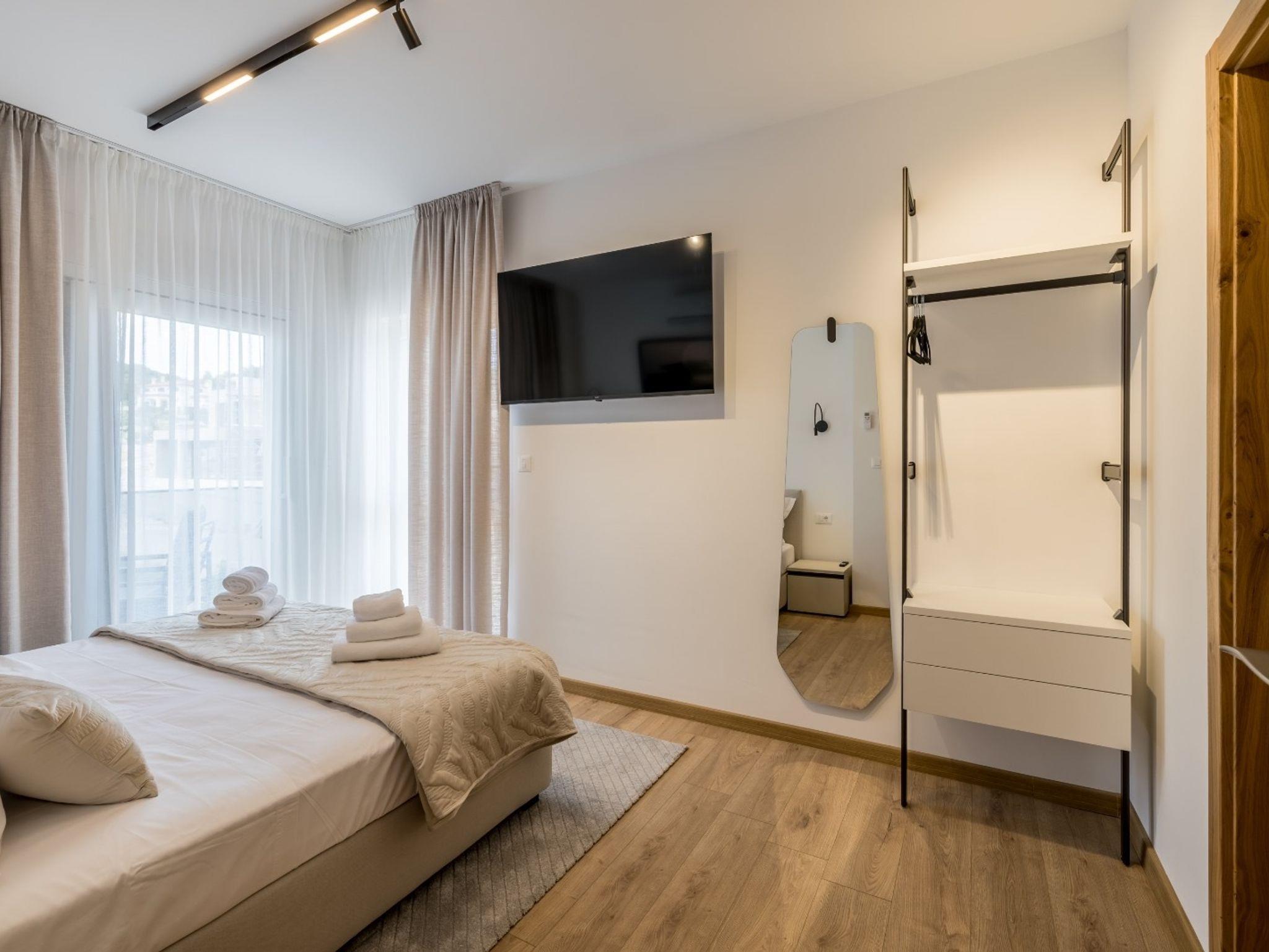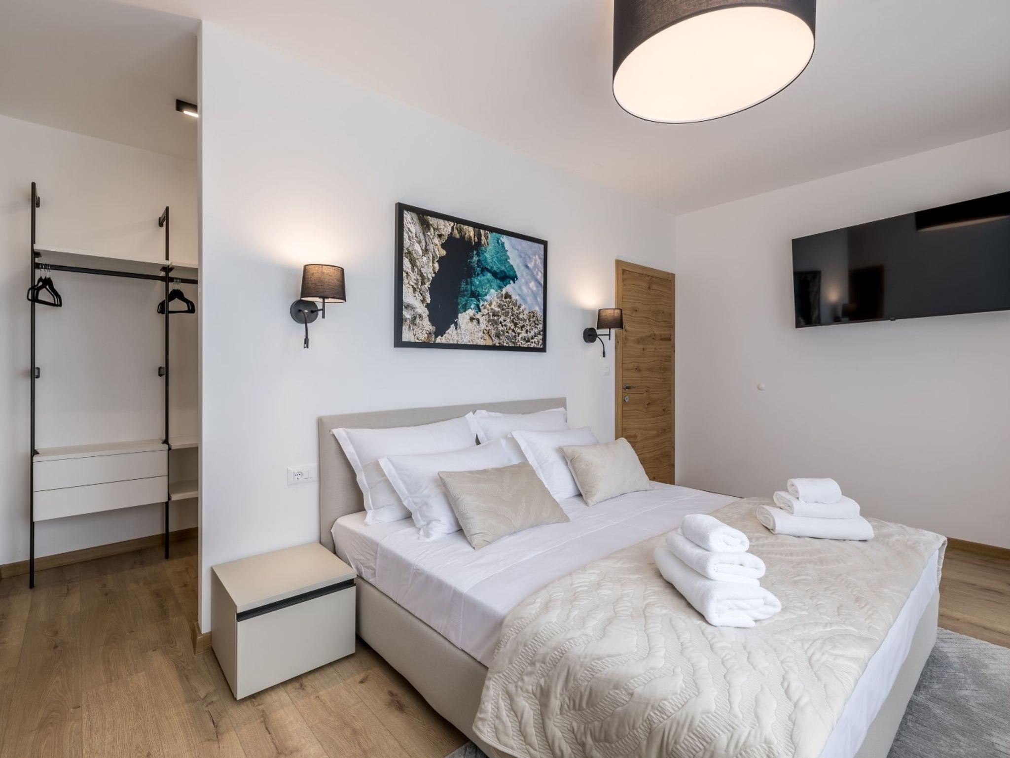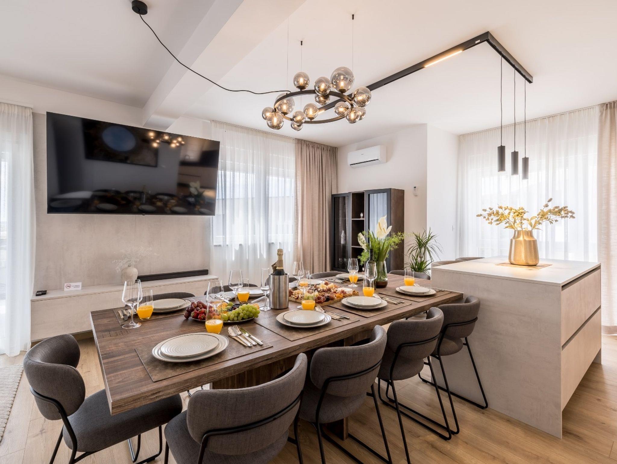 Haus bietet Platz für 10 Gäste. Die Betten sind in Schlafzimmern, die es 4 gibt, und in Wohnzimmer, innerhalb einer Gesamtfläche von 223m2, angeordnet. Die Gäste haben eine eigene Terrasse zur Verfügung, auf der sie in warmen Sommernächten genießen können. Das Haus bietet Meerblick. Für vollen Genuss und Entspannung gibt es einen privaten Grill für Gäste dieser Unterkunft. Während ihres Aufenthalts können sich Gäste im privaten Schwimmbad entspannen. IM PREIS INBEGRIFFEN: Kurtaxe, Endreinigung, Klimatisierung, Pool, Parkplatz, Internet, Kinderbett, Bügeleisen, Bügelbrett, Föhn, Sonnenschirm, Liegestühle. Die Verfügbarkeit zusätzlicher Dienstleistungen in Ihrem reservierten Termin und die Preise derselben (falls nicht aufgeführt) müssen im Voraus überprüft werden. Zusätzliche Dienstleistungen die in der Zahlungsaufforderung nicht aufgeführt sind werden direkt beim Vermieter bezahlt, angenommen der Gast nutzt auch diese.