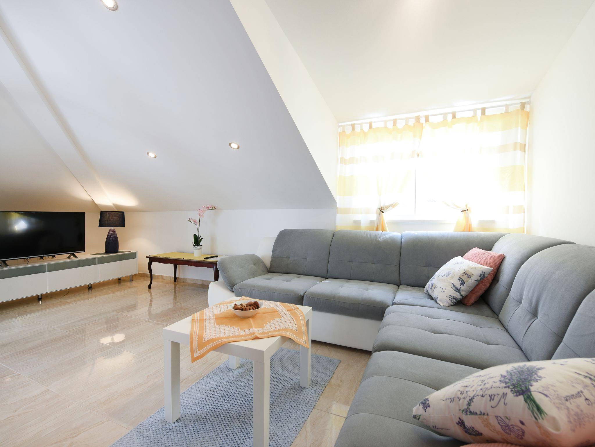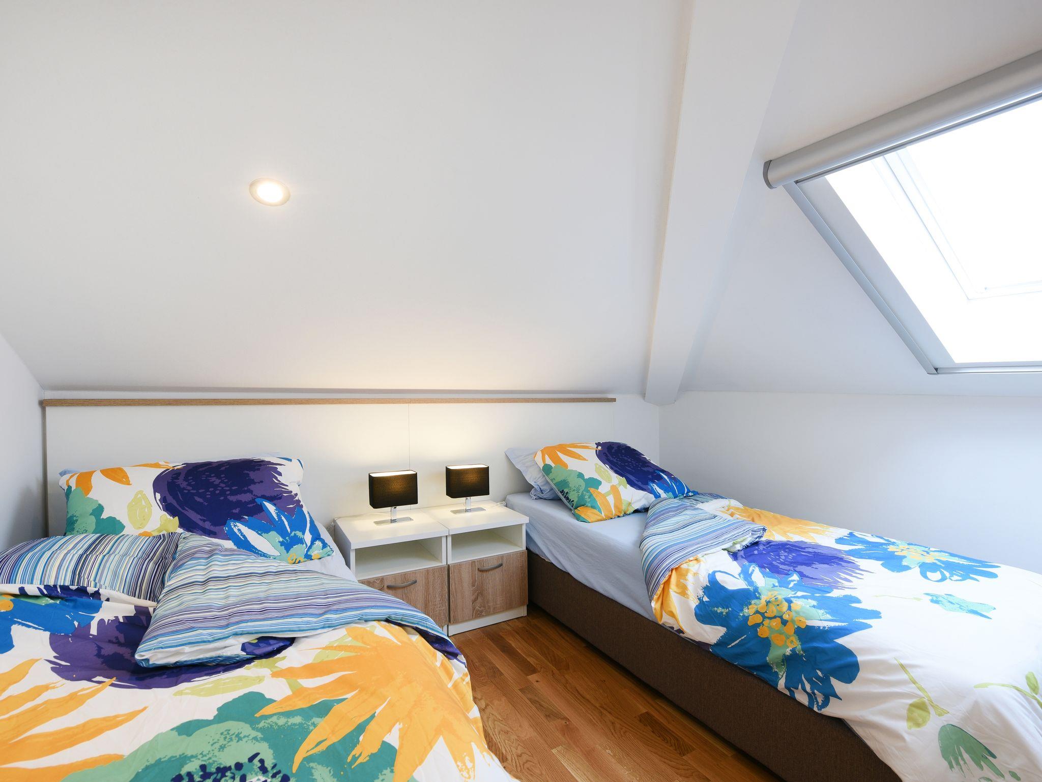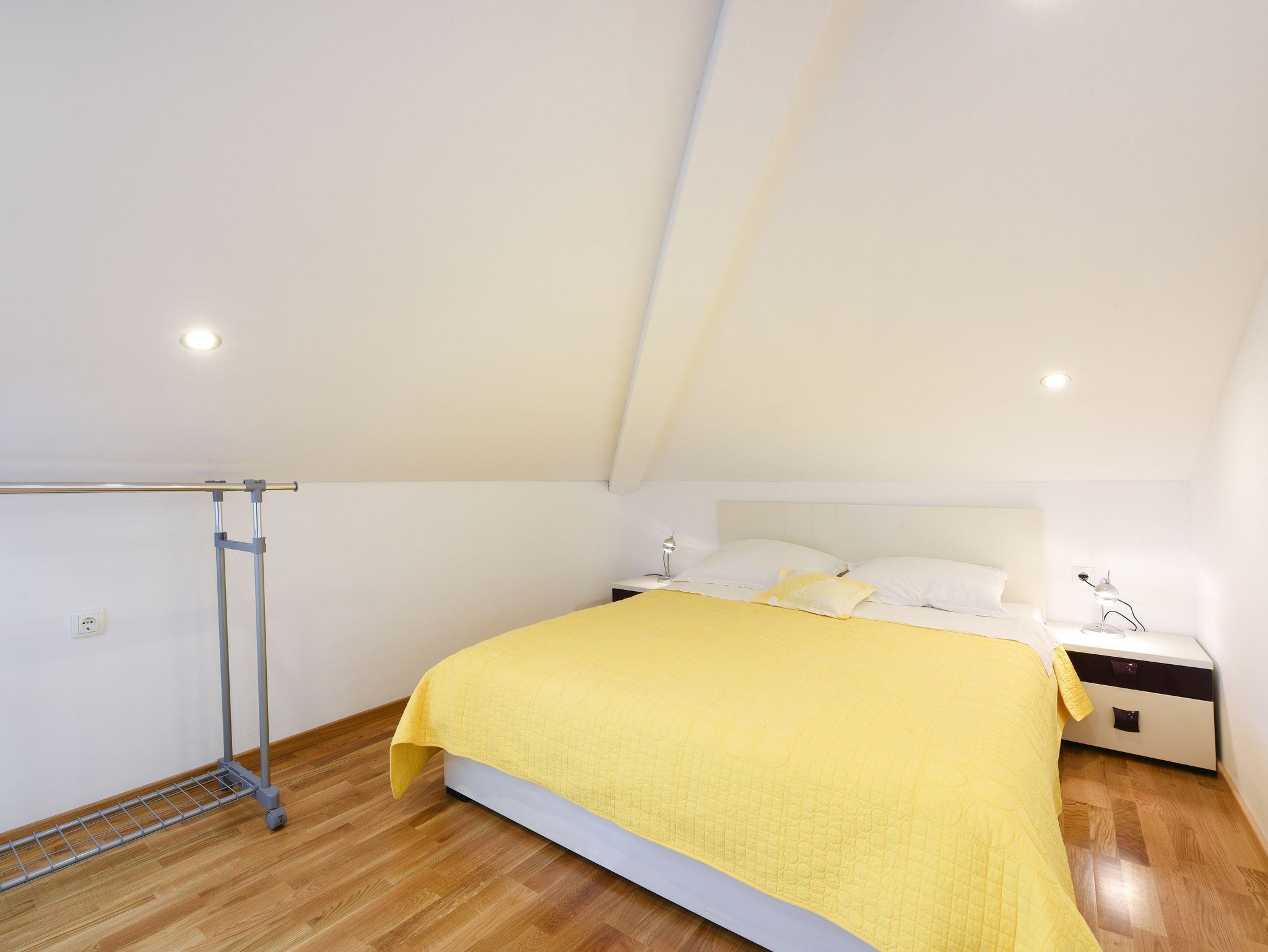 Ferienwohnung bietet Platz für 4 Gäste. Die Betten sind in Schlafzimmern, die es 2 gibt, innerhalb einer Gesamtfläche von 61m2, angeordnet. Die Gäste haben einen eigenen Balkon zur Verfügung, auf der sie in warmen Sommernächten genießen können. Das Apartment bietet Meerblick. Es ist erlaubt, Speisen auf dem Gemeinschafts-Grill vorzubereiten. IM PREIS INBEGRIFFEN: Kurtaxe, Endreinigung, Klimatisierung, Parkplatz, Internet, Bügeleisen, Bügelbrett, Föhn. VERBINDLICHE ZUSÄTZLICHE KOSTEN: Aufzahlung für Kurzaufenthalte (prozentualer Zuschlag pro Nächtigungsanzahl: 30% - 1, 20% - 2, 10% - 3). UNVERBINDLICHE ZUSÄTZLICHE KOSTEN: Wäschewaschen (7,00 € Waschen). Die Verfügbarkeit zusätzlicher Dienstleistungen in Ihrem reservierten Termin und die Preise derselben (falls nicht aufgeführt) müssen im Voraus überprüft werden. Zusätzliche Dienstleistungen die in der Zahlungsaufforderung nicht aufgeführt sind werden direkt beim Vermieter bezahlt, angenommen der Gast nutzt auch diese. Ermäßigung auf den Grundpreis: Gratistag 21=19 (bei einem Aufenthalt von 21 Tagen oder mehr erhalten Sie 2 Gratistage für den Aufenthalt bis 31.12.26).