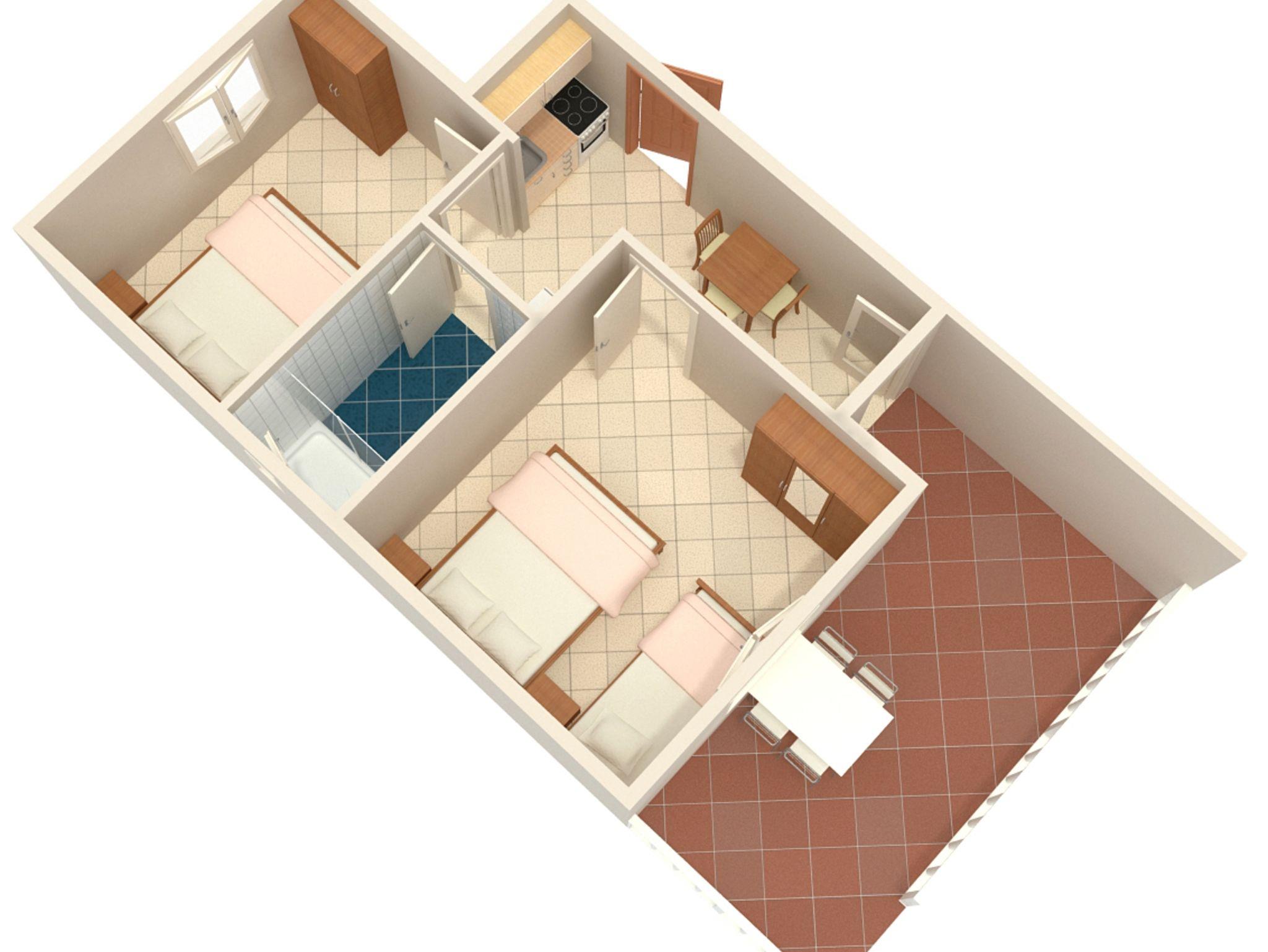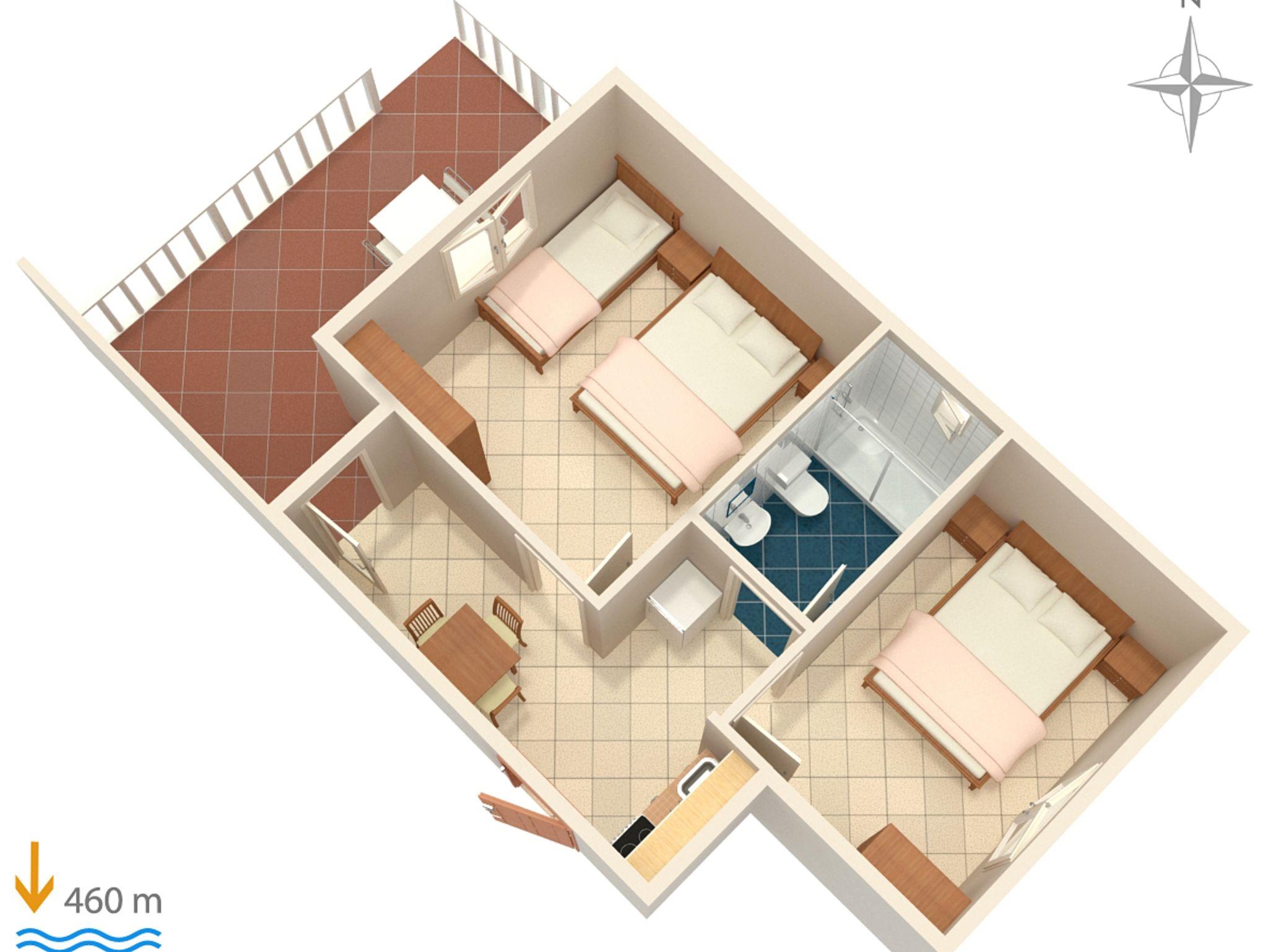 Ferienwohnung bietet Platz für 5 Gäste. Die Betten sind in Schlafzimmern, die es 2 gibt, innerhalb einer Gesamtfläche von 33m2, angeordnet. Die Gäste haben eine eigene Terrasse zur Verfügung, auf der sie in warmen Sommernächten genießen können. Es ist erlaubt, Speisen auf dem Gemeinschafts-Grill vorzubereiten. IM PREIS INBEGRIFFEN: Kurtaxe, Endreinigung, Klimatisierung, Parkplatz, Internet, Kinderbett, tragbarer Grill. VERBINDLICHE ZUSÄTZLICHE KOSTEN: Aufzahlung für Kurzaufenthalte (prozentualer Zuschlag pro Nächtigungsanzahl: 30% - 1, 20% - 2, 10% - 3). Die Verfügbarkeit zusätzlicher Dienstleistungen in Ihrem reservierten Termin und die Preise derselben (falls nicht aufgeführt) müssen im Voraus überprüft werden. Zusätzliche Dienstleistungen die in der Zahlungsaufforderung nicht aufgeführt sind werden direkt beim Vermieter bezahlt, angenommen der Gast nutzt auch diese.