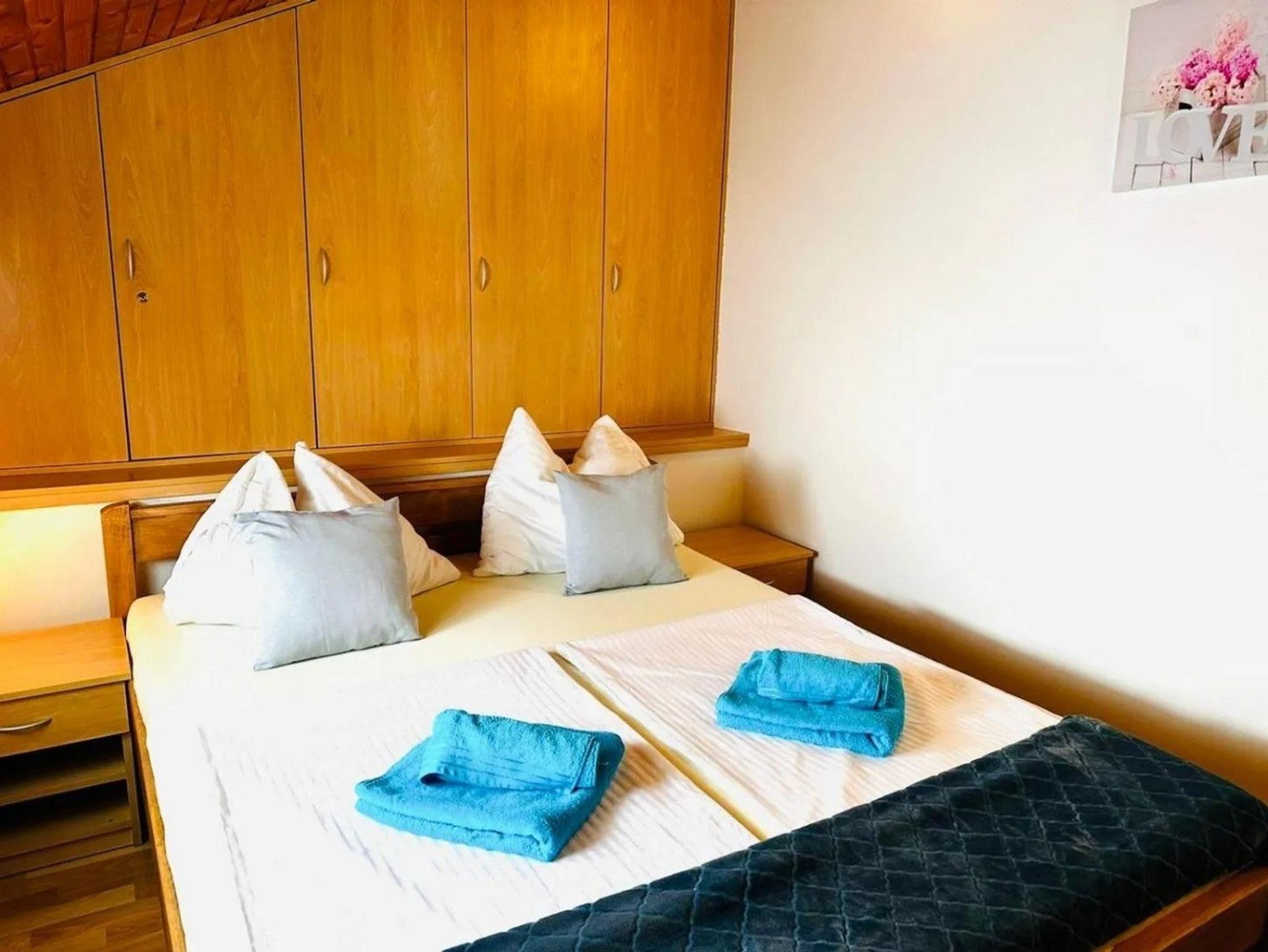 Ferienwohnung bietet Platz für 2 Gäste. Die Betten sind in Schlafzimmern, die es 1 gibt, innerhalb einer Gesamtfläche von 40m2, angeordnet. Die Gäste haben eine eigene Terrasse zur Verfügung, auf der sie in warmen Sommernächten genießen können. Es ist erlaubt, Speisen auf dem Gemeinschafts-Grill vorzubereiten. IM PREIS INBEGRIFFEN: Kurtaxe, Endreinigung, Klimatisierung, Parkplatz, Internet, Kinderbett, Bügelbrett. VERBINDLICHE ZUSÄTZLICHE KOSTEN: Aufzahlung für Kurzaufenthalte (prozentualer Zuschlag pro Nächtigungsanzahl: 30% - 1, 20% - 2, 10% - 3). UNVERBINDLICHE ZUSÄTZLICHE KOSTEN: Wäschewaschen (3,00 € Waschen), Zusatzbett (15,00 € pro Nacht). Die Verfügbarkeit zusätzlicher Dienstleistungen in Ihrem reservierten Termin und die Preise derselben (falls nicht aufgeführt) müssen im Voraus überprüft werden. Zusätzliche Dienstleistungen die in der Zahlungsaufforderung nicht aufgeführt sind werden direkt beim Vermieter bezahlt, angenommen der Gast nutzt auch diese. Ermäßigung auf den Grundpreis: Gratistag 14=13 (bei einem Aufenthalt von 14 Tagen oder mehr erhalten Sie einen Gratistag für den Aufenthalt bis 31.12.26).