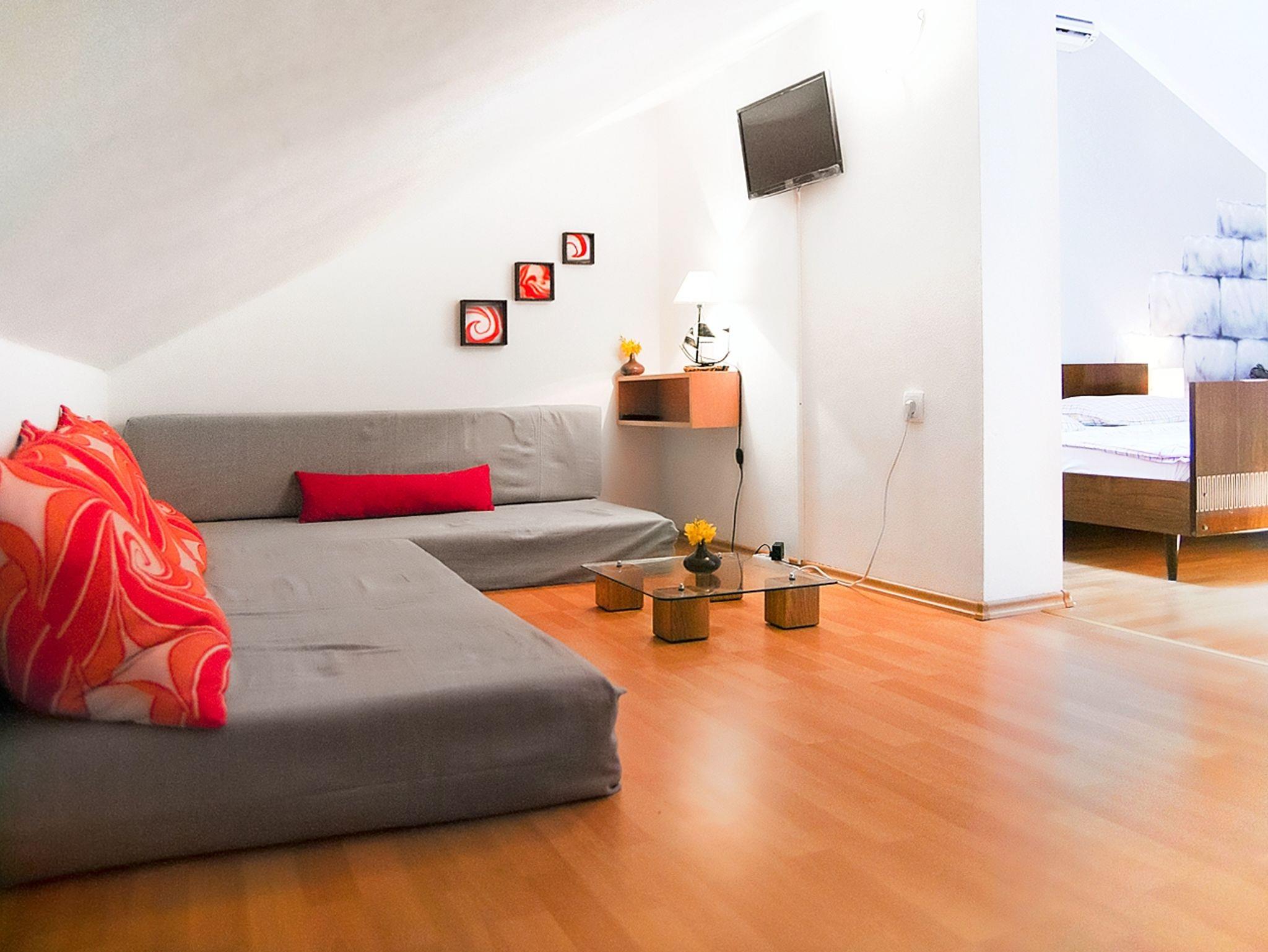 Ferienwohnung bietet Platz für 7 Gäste. Die Betten sind in Schlafzimmern, die es 2 gibt, und in Wohnzimmer, innerhalb einer Gesamtfläche von 55m2, angeordnet. Die Gäste haben eine eigene Terrasse zur Verfügung, auf der sie in warmen Sommernächten genießen können. In der Unterkunftseinheit besteht die Möglichkeit des Mitbringens von Haustieren, und die Dienstleistung ist im Preis der Unterkunft enthalten. IM PREIS INBEGRIFFEN: Kurtaxe, Endreinigung, Klimatisierung, Parkplatz, Internet, Haustiere, Kinderbett, Föhn. Die Verfügbarkeit zusätzlicher Dienstleistungen in Ihrem reservierten Termin und die Preise derselben (falls nicht aufgeführt) müssen im Voraus überprüft werden. Zusätzliche Dienstleistungen die in der Zahlungsaufforderung nicht aufgeführt sind werden direkt beim Vermieter bezahlt, angenommen der Gast nutzt auch diese. Ermäßigung auf den Grundpreis: Gratistag 21=19 (bei einem Aufenthalt von 21 Tagen oder mehr erhalten Sie 2 Gratistage für den Aufenthalt bis 31.12.26).