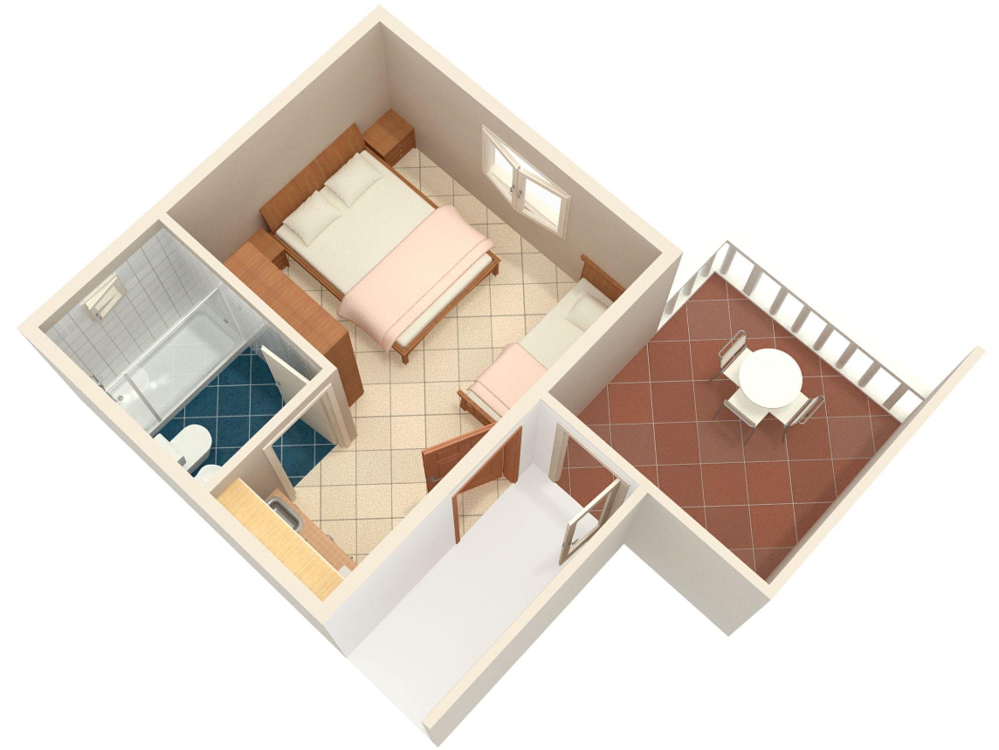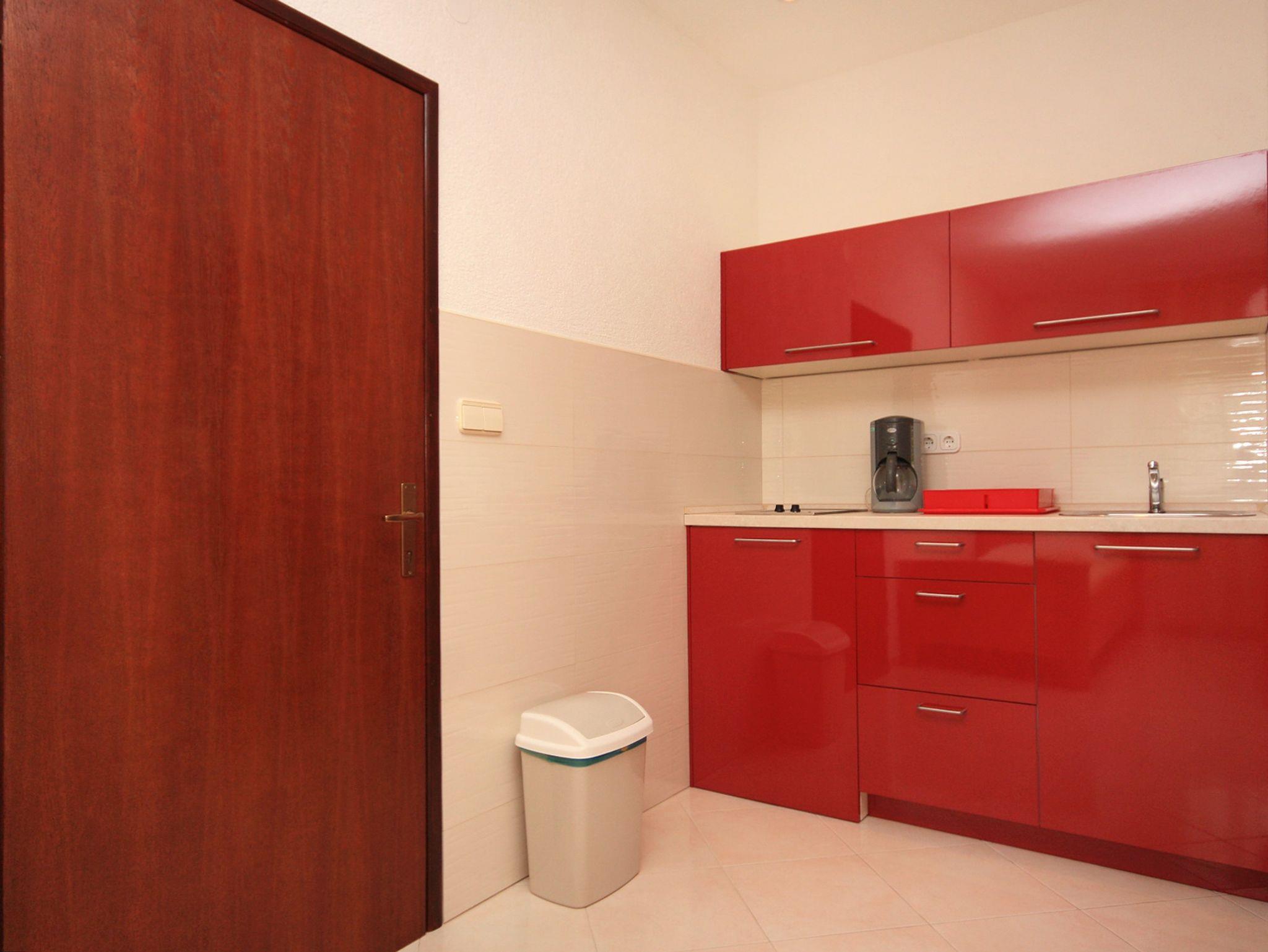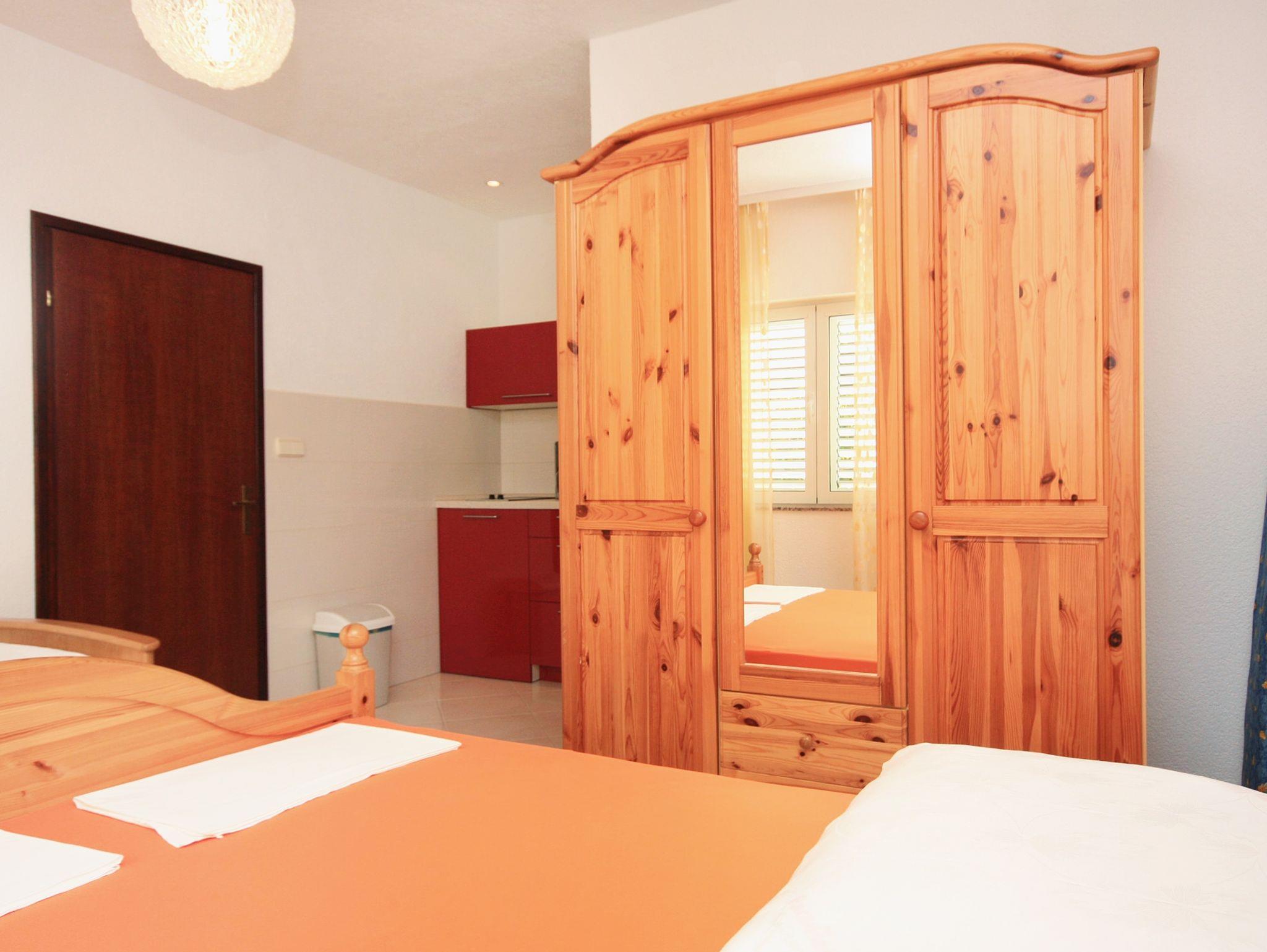 Studio bietet Platz für 3 Gäste. Die Betten sind in Schlafzimmern, die es 1 gibt, innerhalb einer Gesamtfläche von 18m2, angeordnet. Die Gäste haben eine eigene Terrasse zur Verfügung, auf der sie in warmen Sommernächten genießen können. Es ist erlaubt, Speisen auf dem Gemeinschafts-Grill vorzubereiten. Unterkunftseinheit hat Räume, die von dem Rest der Einheit abgetrennt werden. IM PREIS INBEGRIFFEN: Kurtaxe, Endreinigung, Klimatisierung, Parkplatz, Internet, Kinderbett, tragbarer Grill. VERBINDLICHE ZUSÄTZLICHE KOSTEN: Aufzahlung für Kurzaufenthalte (prozentualer Zuschlag pro Nächtigungsanzahl: 30% - 1, 20% - 2, 10% - 3). Die Verfügbarkeit zusätzlicher Dienstleistungen in Ihrem reservierten Termin und die Preise derselben (falls nicht aufgeführt) müssen im Voraus überprüft werden. Zusätzliche Dienstleistungen die in der Zahlungsaufforderung nicht aufgeführt sind werden direkt beim Vermieter bezahlt, angenommen der Gast nutzt auch diese.