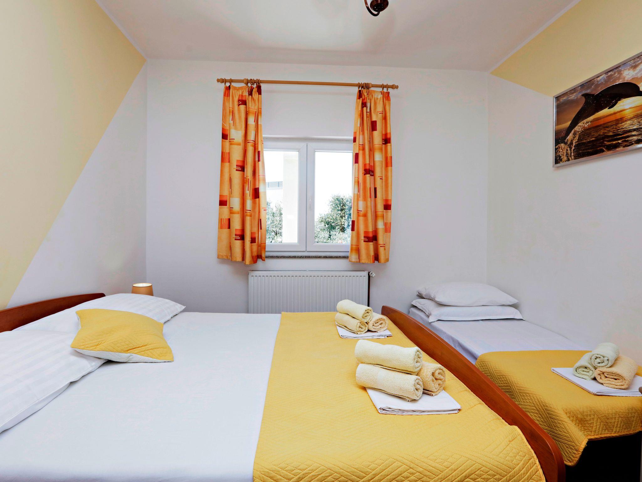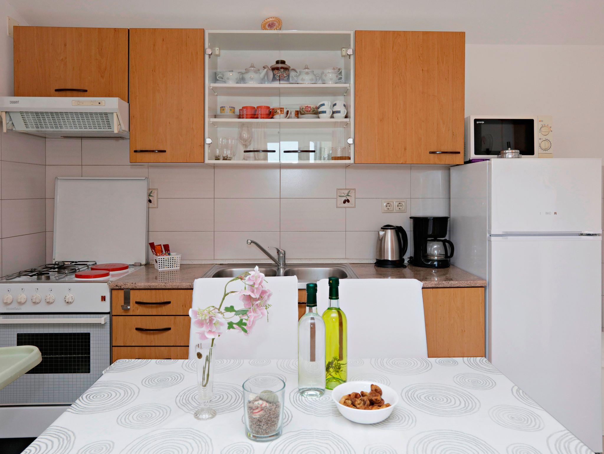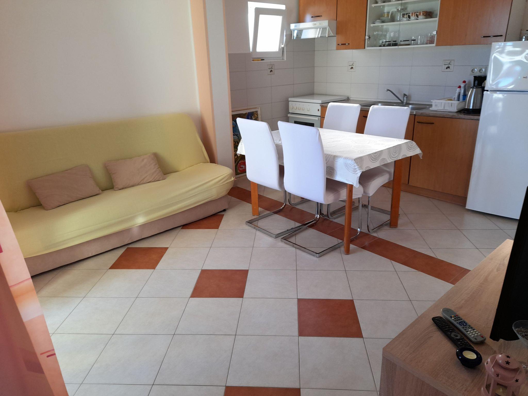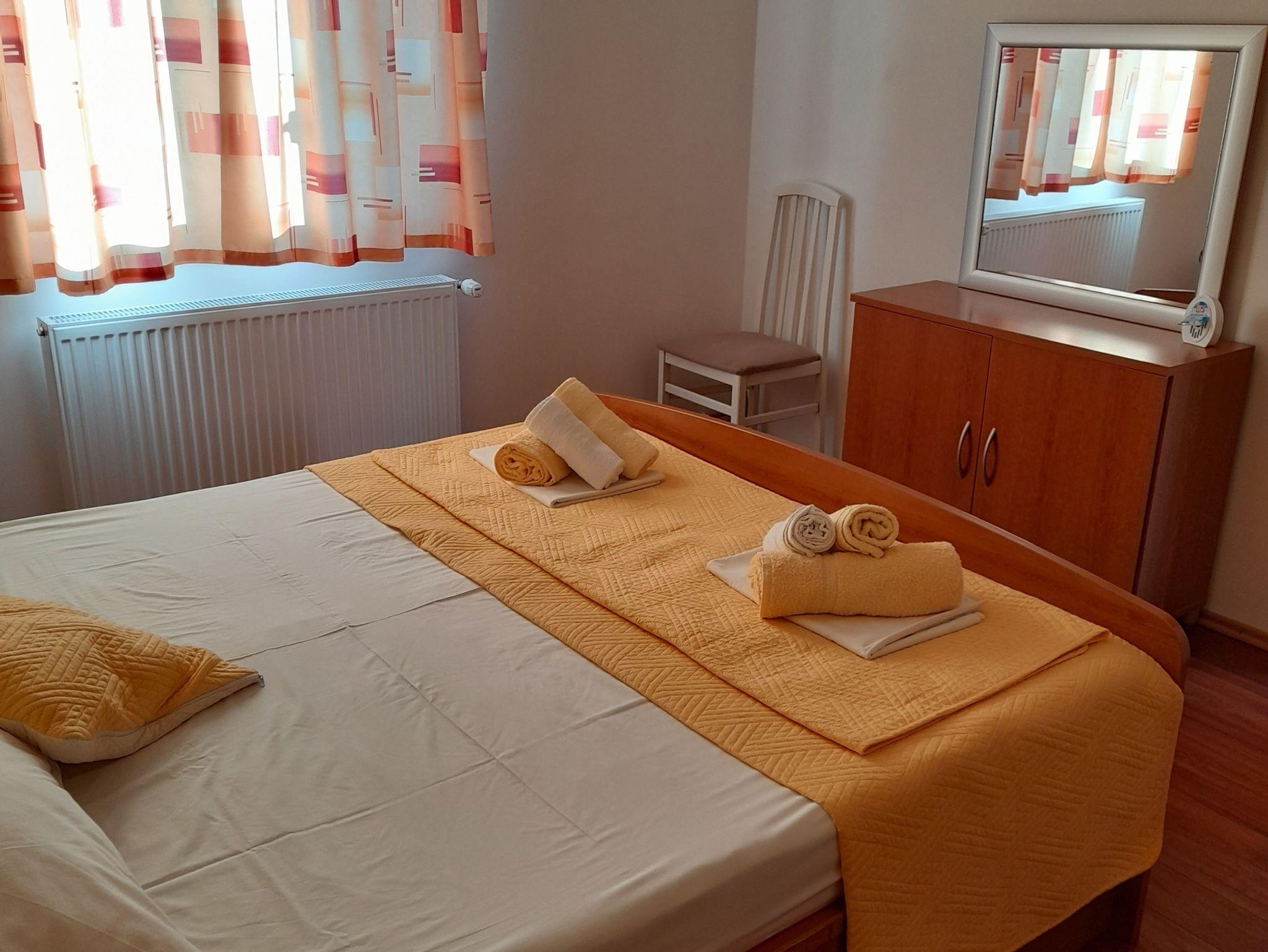 Ferienwohnung bietet Platz für 4 Gäste. Die Betten sind in Schlafzimmern, die es 1 gibt, und in Wohnzimmer, innerhalb einer Gesamtfläche von 45m2, angeordnet. Die Gäste haben eine eigene Terrasse zur Verfügung, auf der sie in warmen Sommernächten genießen können. Es ist erlaubt, Speisen auf dem Gemeinschafts-Grill vorzubereiten. In der Unterkunftseinheit besteht die Möglichkeit des Mitbringens von Haustieren, und die Dienstleistung ist im Preis der Unterkunft enthalten. IM PREIS INBEGRIFFEN: Kurtaxe, Endreinigung, Klimatisierung, Parkplatz, Internet, Wäschewaschen, Bootsanlegeplatz, Haustiere, Kinderbett, Bügeleisen, Bügelbrett, Föhn, 1 Bett für Kinder (im Preis enthalten). Die Verfügbarkeit zusätzlicher Dienstleistungen in Ihrem reservierten Termin und die Preise derselben (falls nicht aufgeführt) müssen im Voraus überprüft werden. Zusätzliche Dienstleistungen die in der Zahlungsaufforderung nicht aufgeführt sind werden direkt beim Vermieter bezahlt, angenommen der Gast nutzt auch diese.