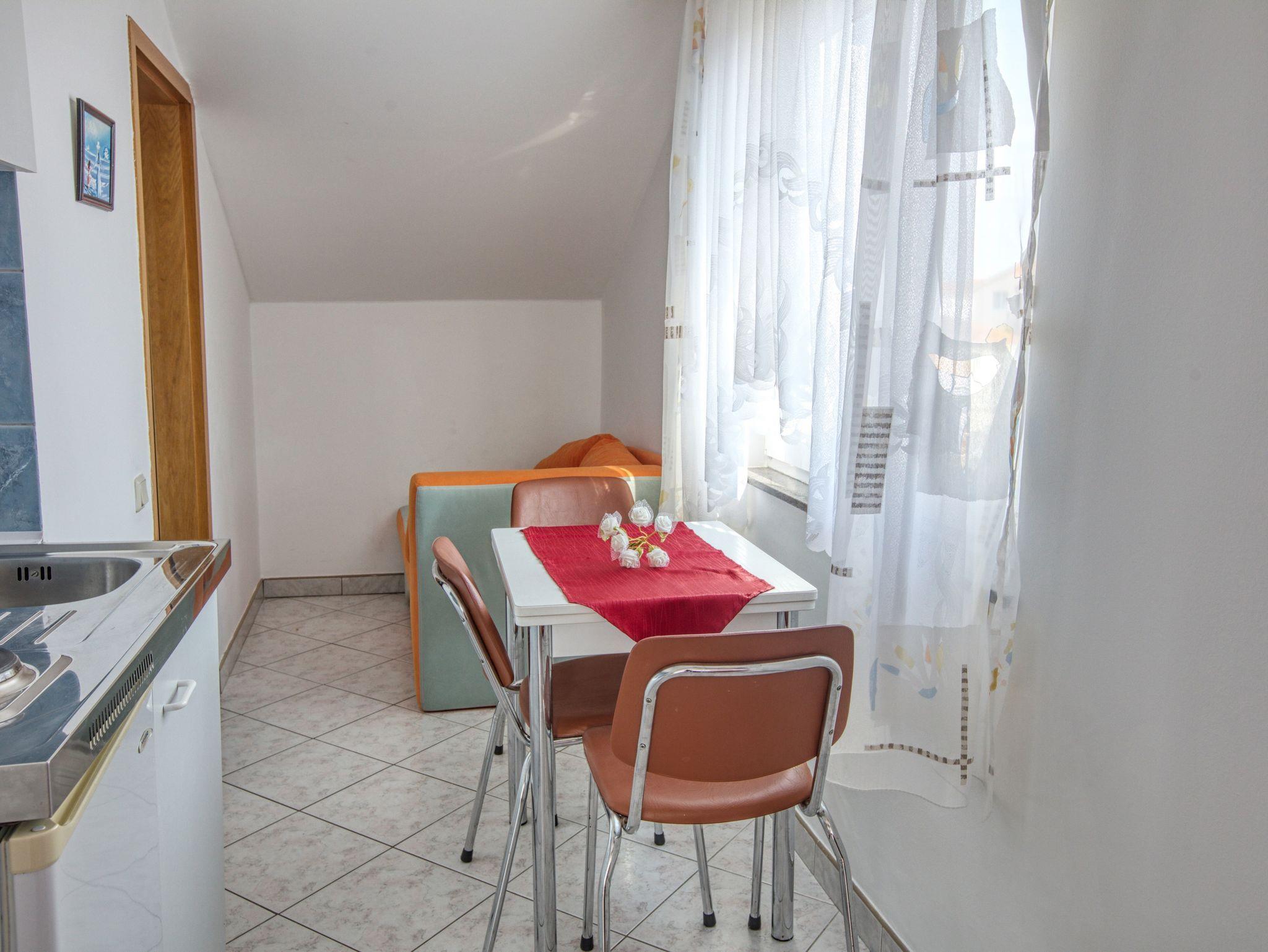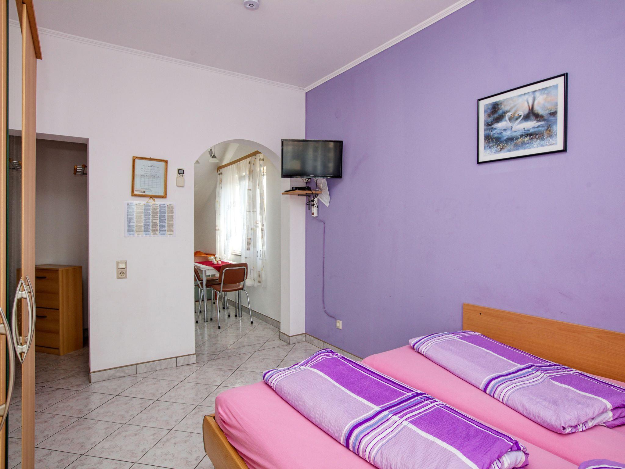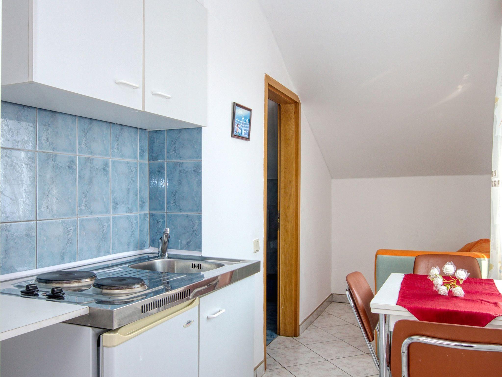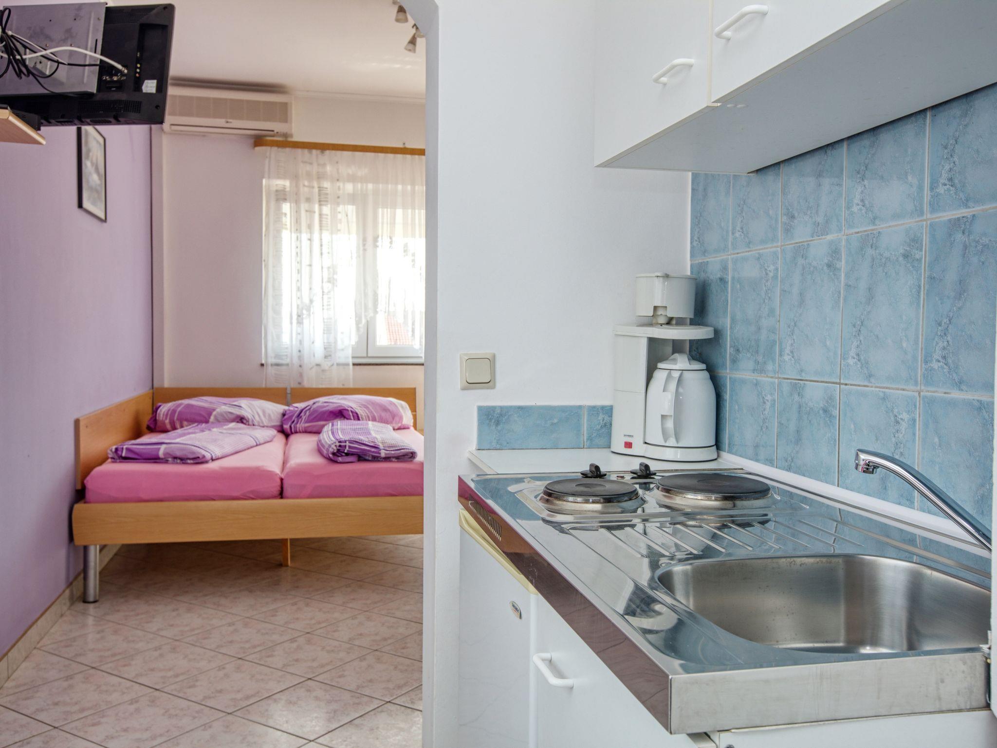 Studio bietet Platz für 3 Gäste. Die Betten sind in Schlafzimmern, die es 1 gibt, und in Esszimmer, innerhalb einer Gesamtfläche von 23m2, angeordnet. Die Gäste haben einen eigenen Balkon zur Verfügung, auf der sie in warmen Sommernächten genießen können. Das Studio-Apartment bietet Meerblick. Es ist erlaubt, Speisen auf dem Gemeinschafts-Grill vorzubereiten. IM PREIS INBEGRIFFEN: Kurtaxe, Endreinigung, Klimatisierung, Parkplatz, Internet. VERBINDLICHE ZUSÄTZLICHE KOSTEN: Aufzahlung für Kurzaufenthalte (prozentualer Zuschlag pro Nächtigungsanzahl: 30% - 1, 20% - 2, 10% - 3). UNVERBINDLICHE ZUSÄTZLICHE KOSTEN: Wäschewaschen (3,00 € Waschen). Die Verfügbarkeit zusätzlicher Dienstleistungen in Ihrem reservierten Termin und die Preise derselben (falls nicht aufgeführt) müssen im Voraus überprüft werden. Zusätzliche Dienstleistungen die in der Zahlungsaufforderung nicht aufgeführt sind werden direkt beim Vermieter bezahlt, angenommen der Gast nutzt auch diese. Ermäßigung auf den Grundpreis: Gratistag 14=13 (bei einem Aufenthalt von 14 Tagen oder mehr erhalten Sie einen Gratistag für den Aufenthalt bis 31.12.26).