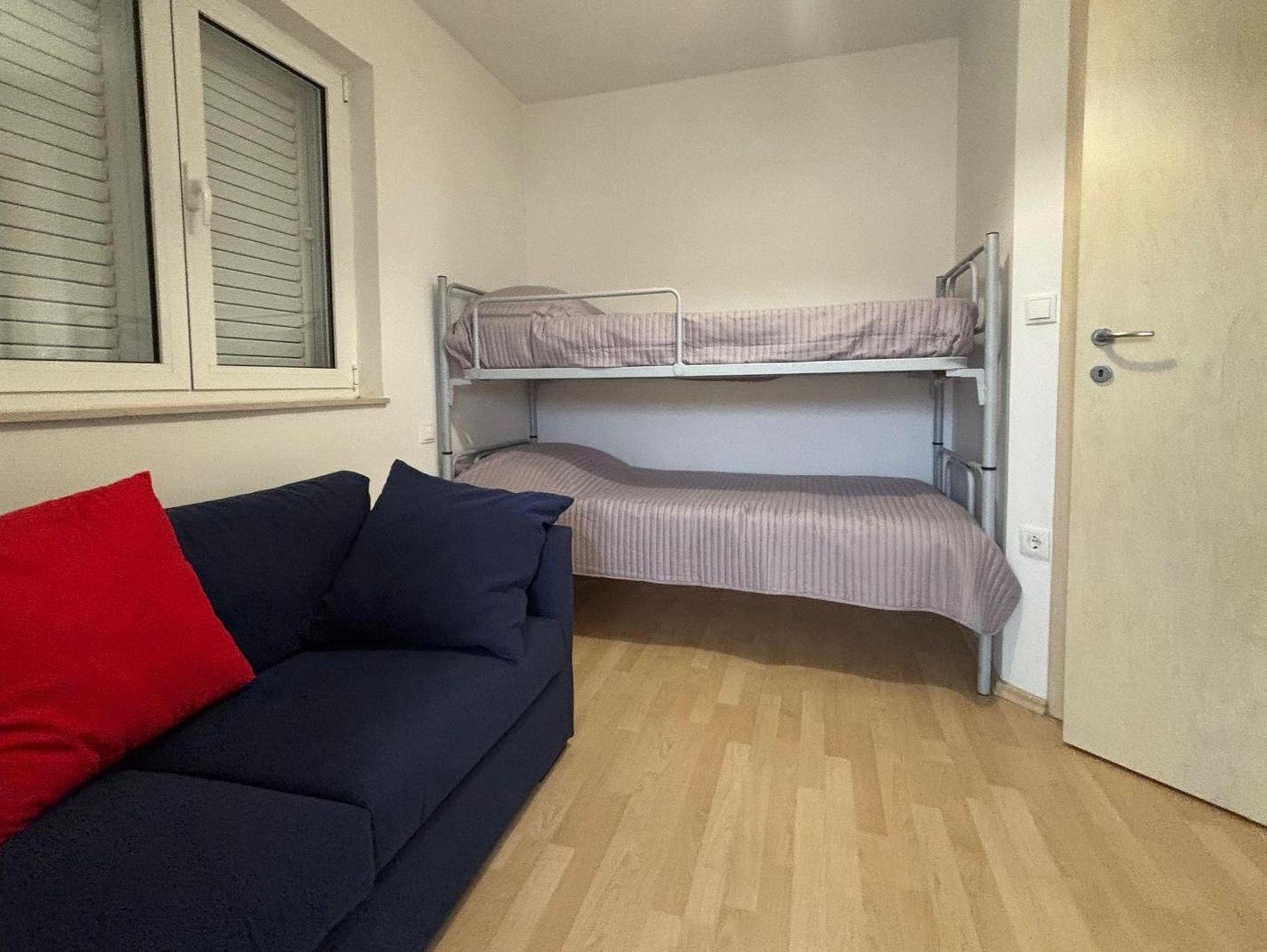 Ferienwohnung bietet Platz für 5 Gäste. Die Betten sind in Schlafzimmern, die es 2 gibt, innerhalb einer Gesamtfläche von 43m2, angeordnet. Die Gäste haben eine eigene Terrasse zur Verfügung, auf der sie in warmen Sommernächten genießen können. Das Apartment bietet Meerblick. Für vollen Genuss und Entspannung gibt es einen privaten Grill für Gäste dieser Unterkunft. IM PREIS INBEGRIFFEN: Kurtaxe, Endreinigung, Klimatisierung, Parkplatz, Internet, Bügeleisen, Bügelbrett, Föhn. Die Verfügbarkeit zusätzlicher Dienstleistungen in Ihrem reservierten Termin und die Preise derselben (falls nicht aufgeführt) müssen im Voraus überprüft werden. Zusätzliche Dienstleistungen die in der Zahlungsaufforderung nicht aufgeführt sind werden direkt beim Vermieter bezahlt, angenommen der Gast nutzt auch diese. Ermäßigung auf den Grundpreis: Gratistag 14=13 (bei einem Aufenthalt von 14 Tagen oder mehr erhalten Sie einen Gratistag für den Aufenthalt bis 31.12.26).
