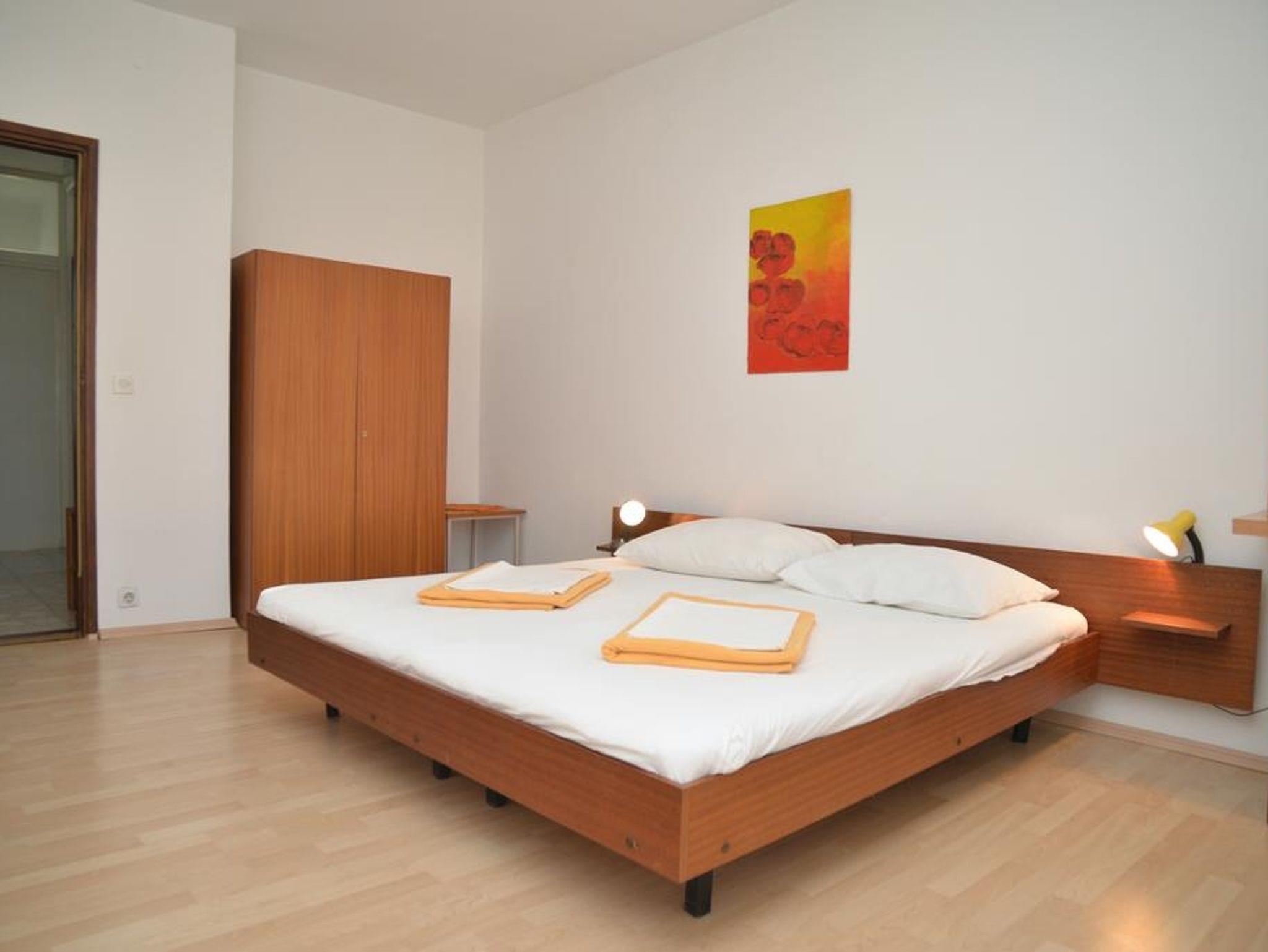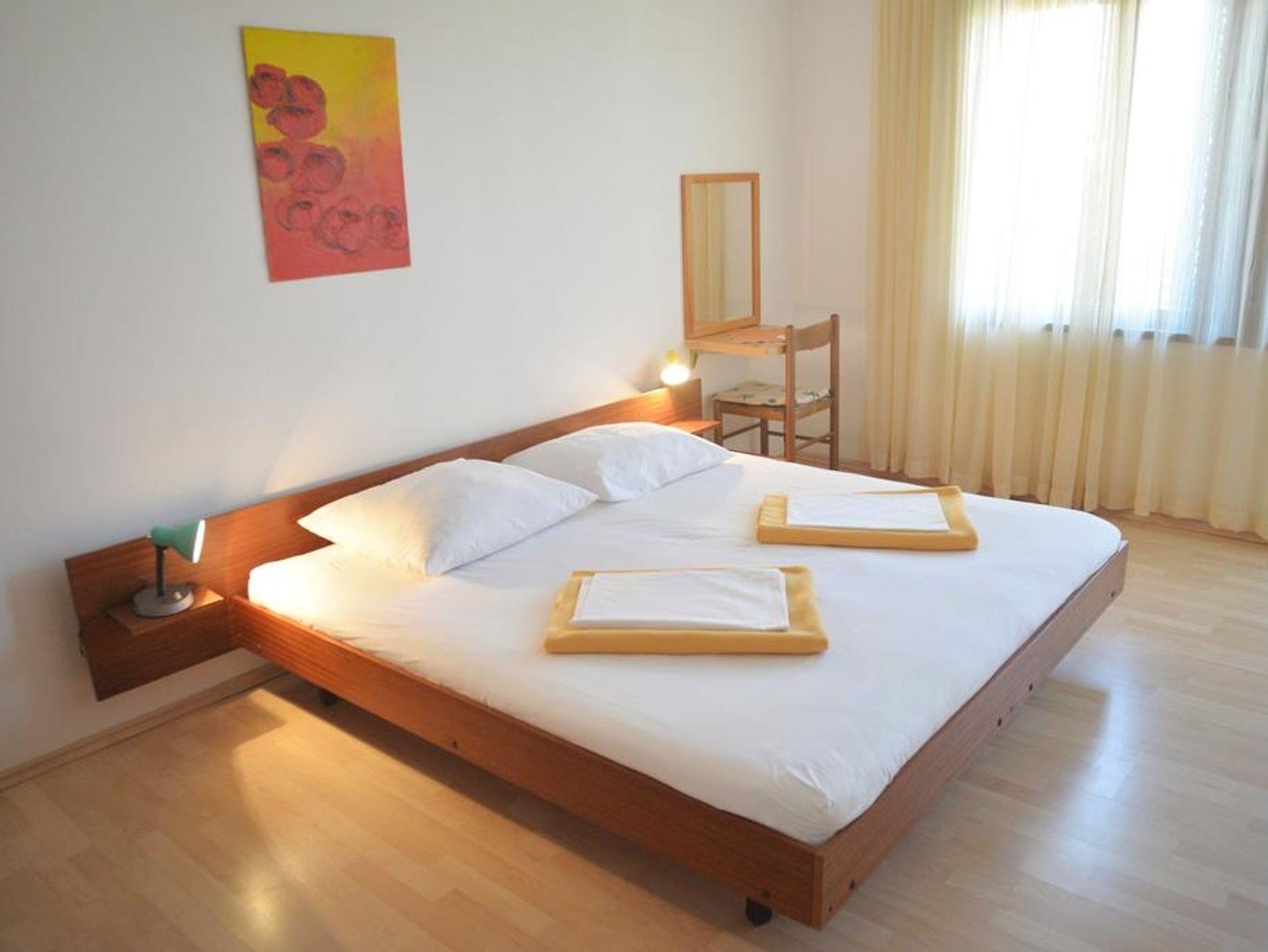 Ferienwohnung bietet Platz für 4 Gäste. Die Betten sind in Schlafzimmern, die es 2 gibt, innerhalb einer Gesamtfläche von 68m2, angeordnet. Die Gäste haben eine eigene Terrasse zur Verfügung, auf der sie in warmen Sommernächten genießen können. Es ist erlaubt, Speisen auf dem Gemeinschafts-Grill vorzubereiten. IM PREIS INBEGRIFFEN: Kurtaxe, Endreinigung, Klimatisierung, Parkplatz, Bügeleisen, Bügelbrett, Föhn, tragbarer Grill. VERBINDLICHE ZUSÄTZLICHE KOSTEN: Aufzahlung für Kurzaufenthalte (prozentualer Zuschlag pro Nächtigungsanzahl: 30% - 1, 20% - 2, 10% - 3). UNVERBINDLICHE ZUSÄTZLICHE KOSTEN: Zentralheizung (7,00 € pro Nacht), Zusatzbett (15,00 € pro Nacht). Die Verfügbarkeit zusätzlicher Dienstleistungen in Ihrem reservierten Termin und die Preise derselben (falls nicht aufgeführt) müssen im Voraus überprüft werden. Zusätzliche Dienstleistungen die in der Zahlungsaufforderung nicht aufgeführt sind werden direkt beim Vermieter bezahlt, angenommen der Gast nutzt auch diese.