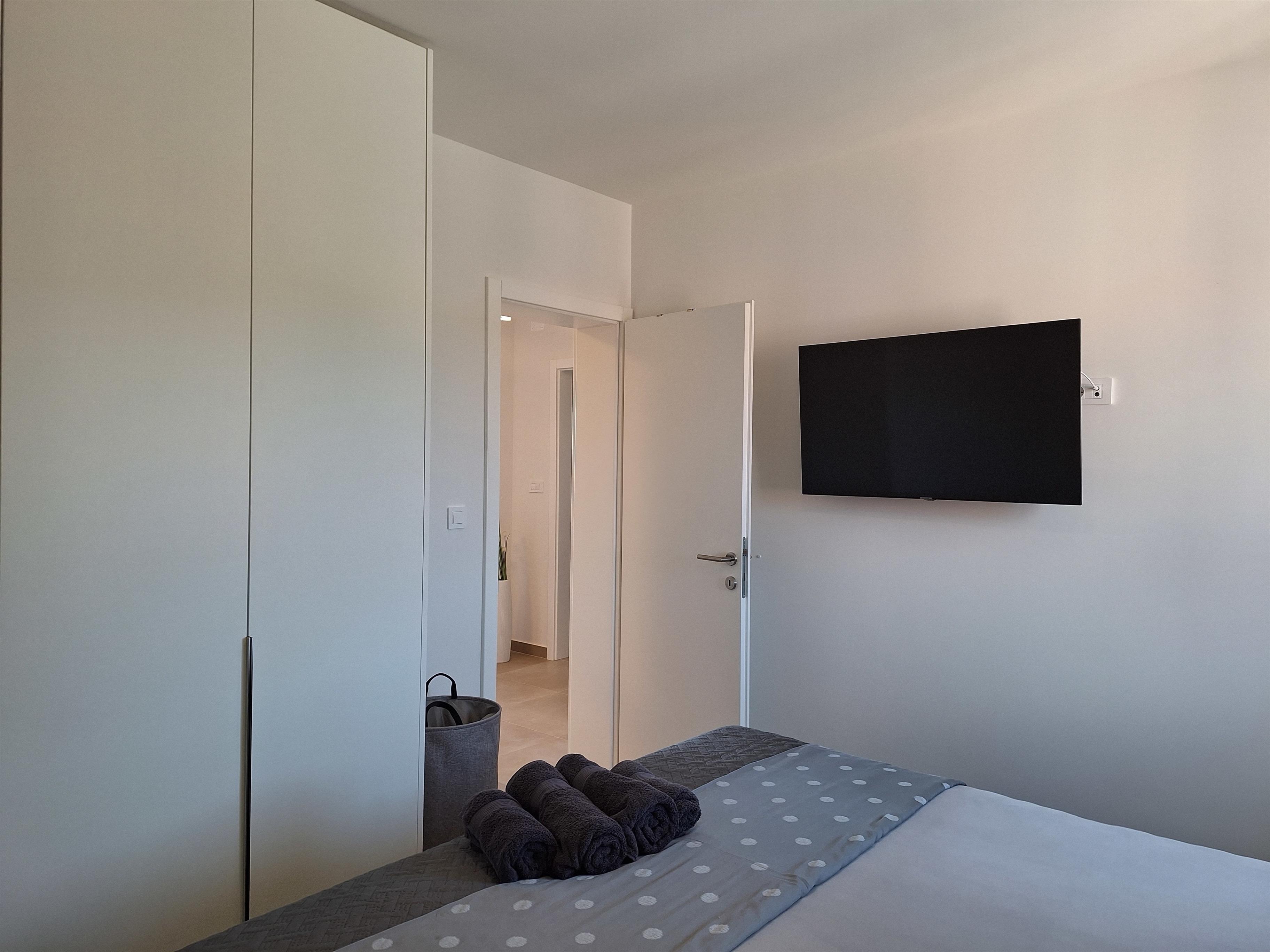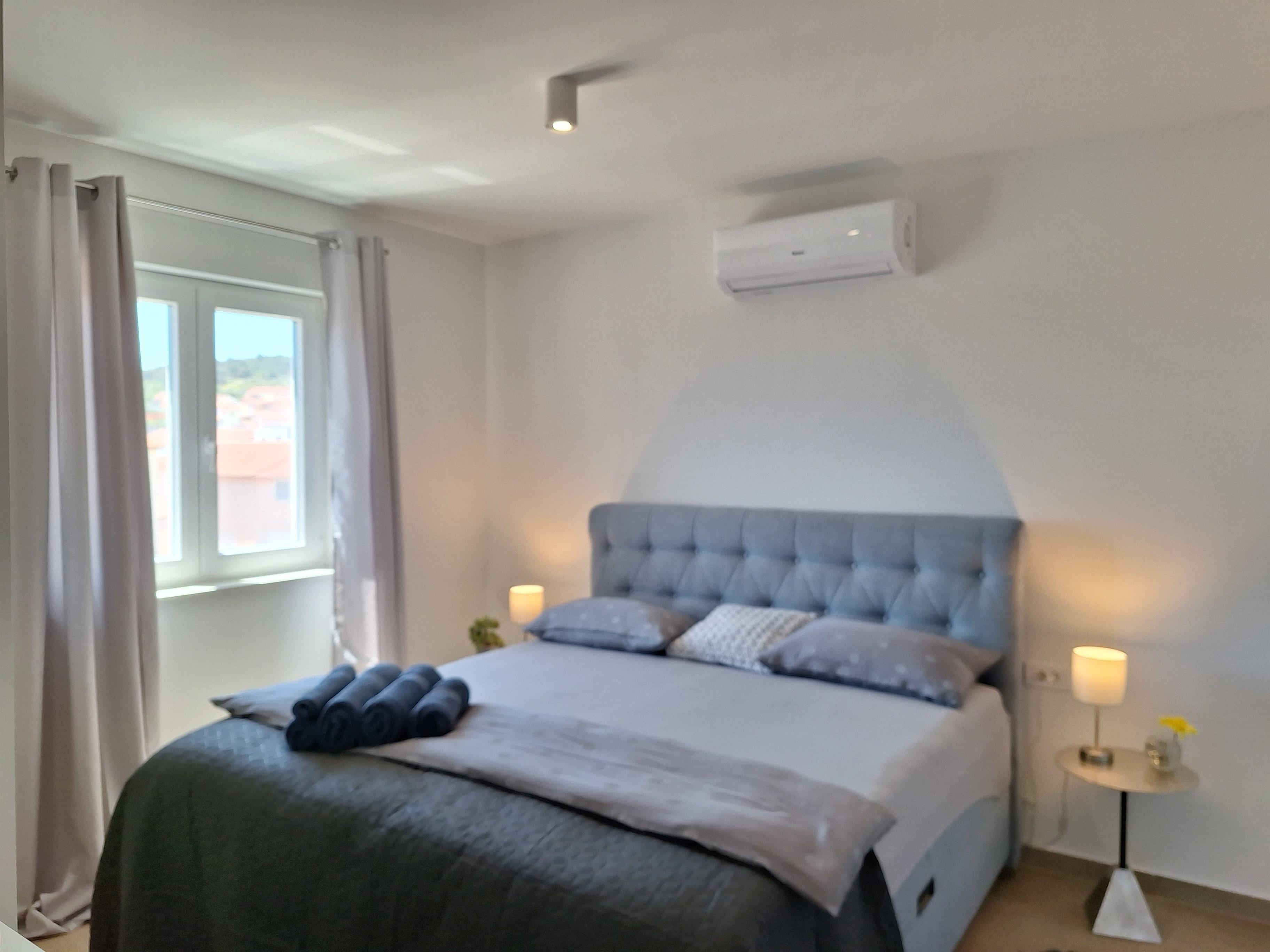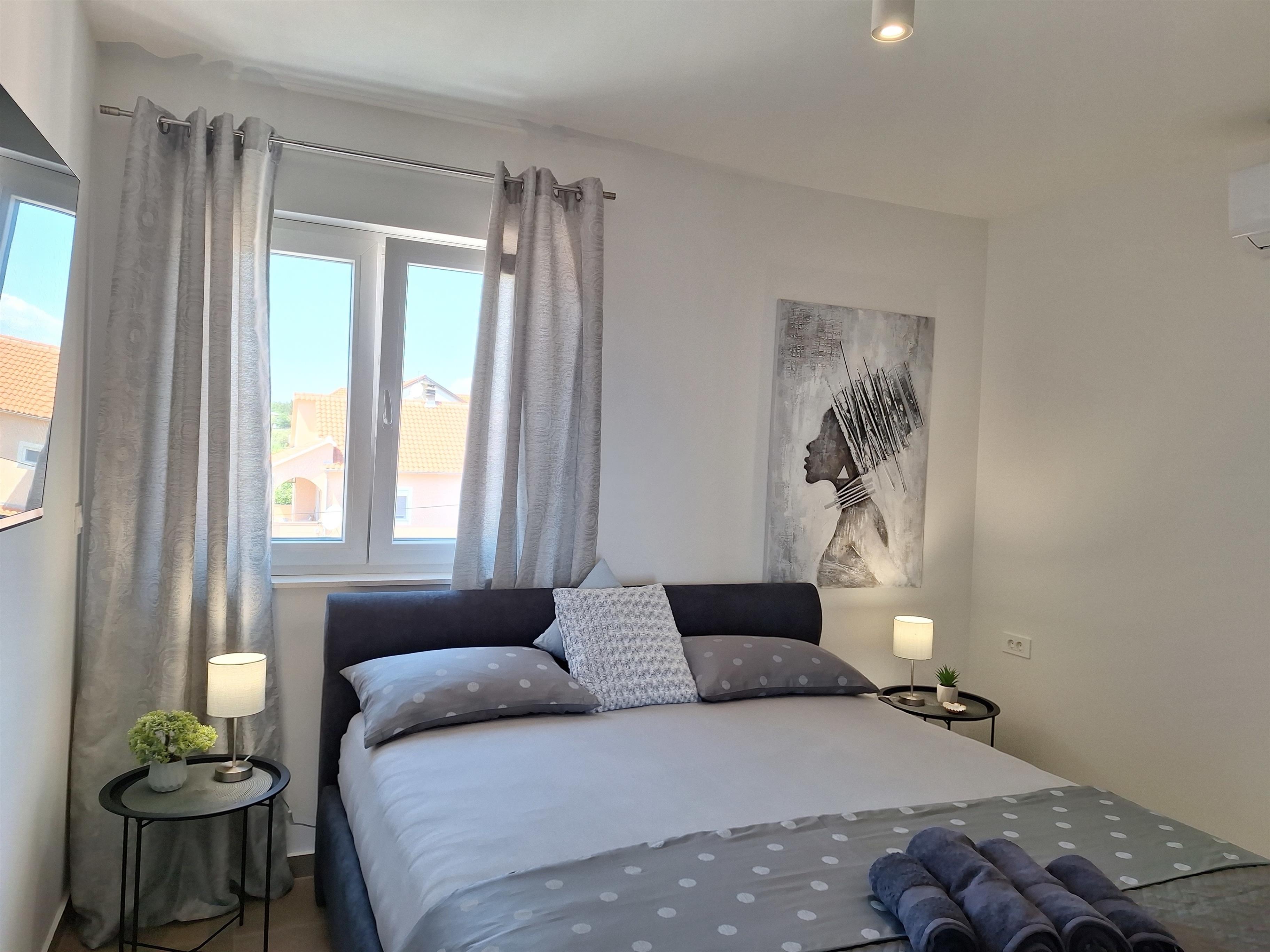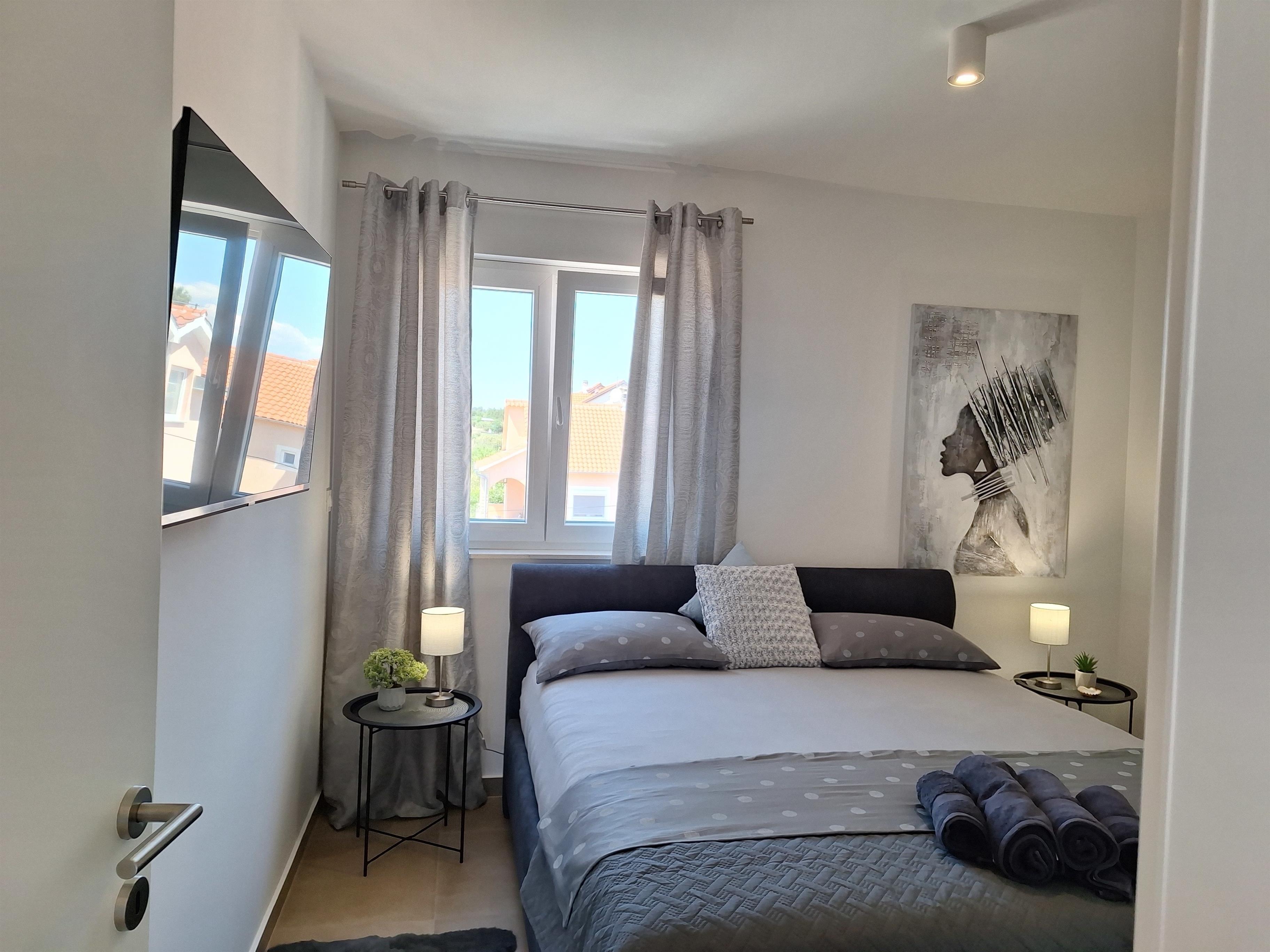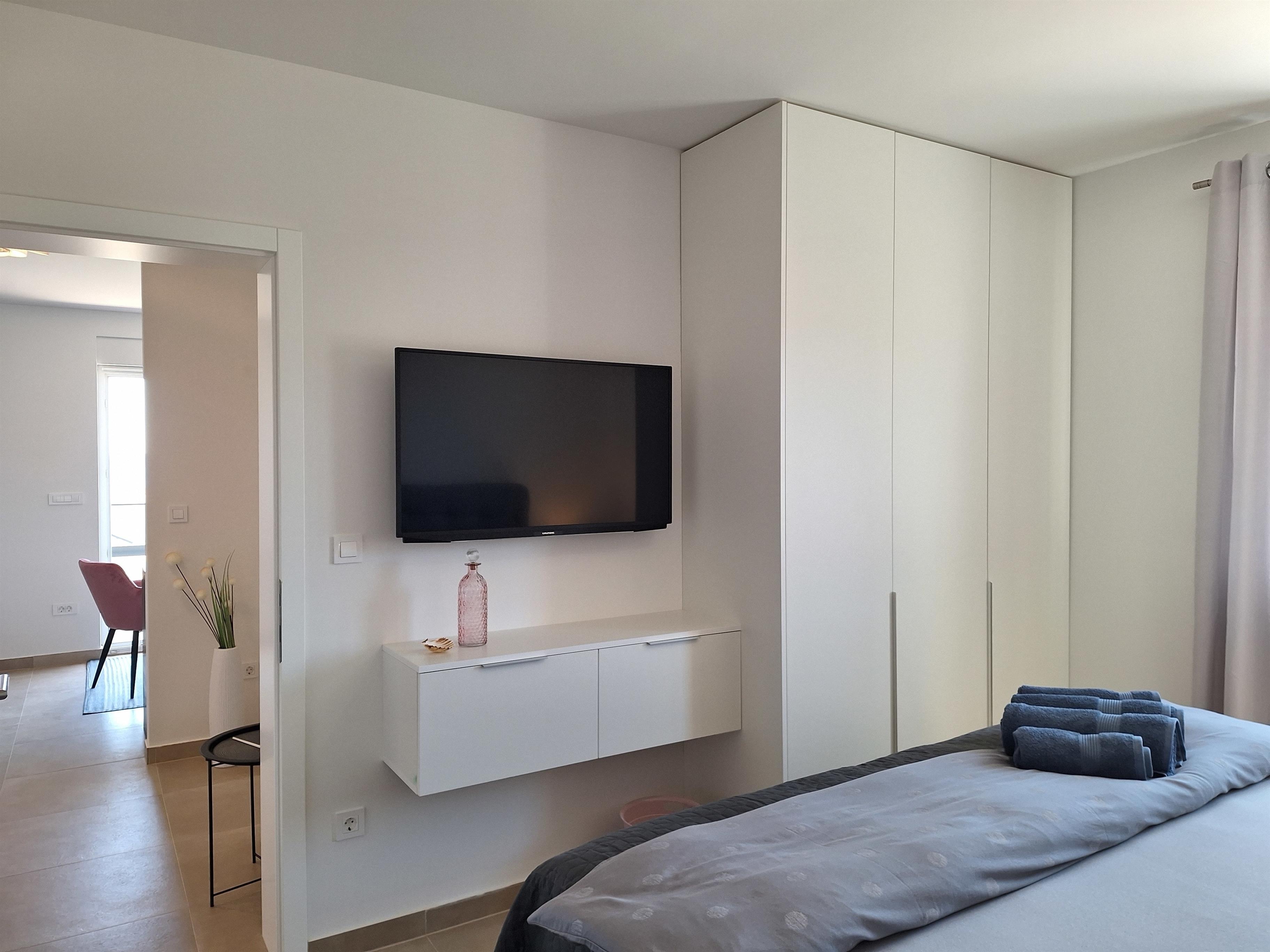- 2 Schlafzimmer mit gemütlichen Polsterbetten 180 x 200cm, TV, Safe , maßgeschreinerten Schränken und Ablagen. Bettwäsche