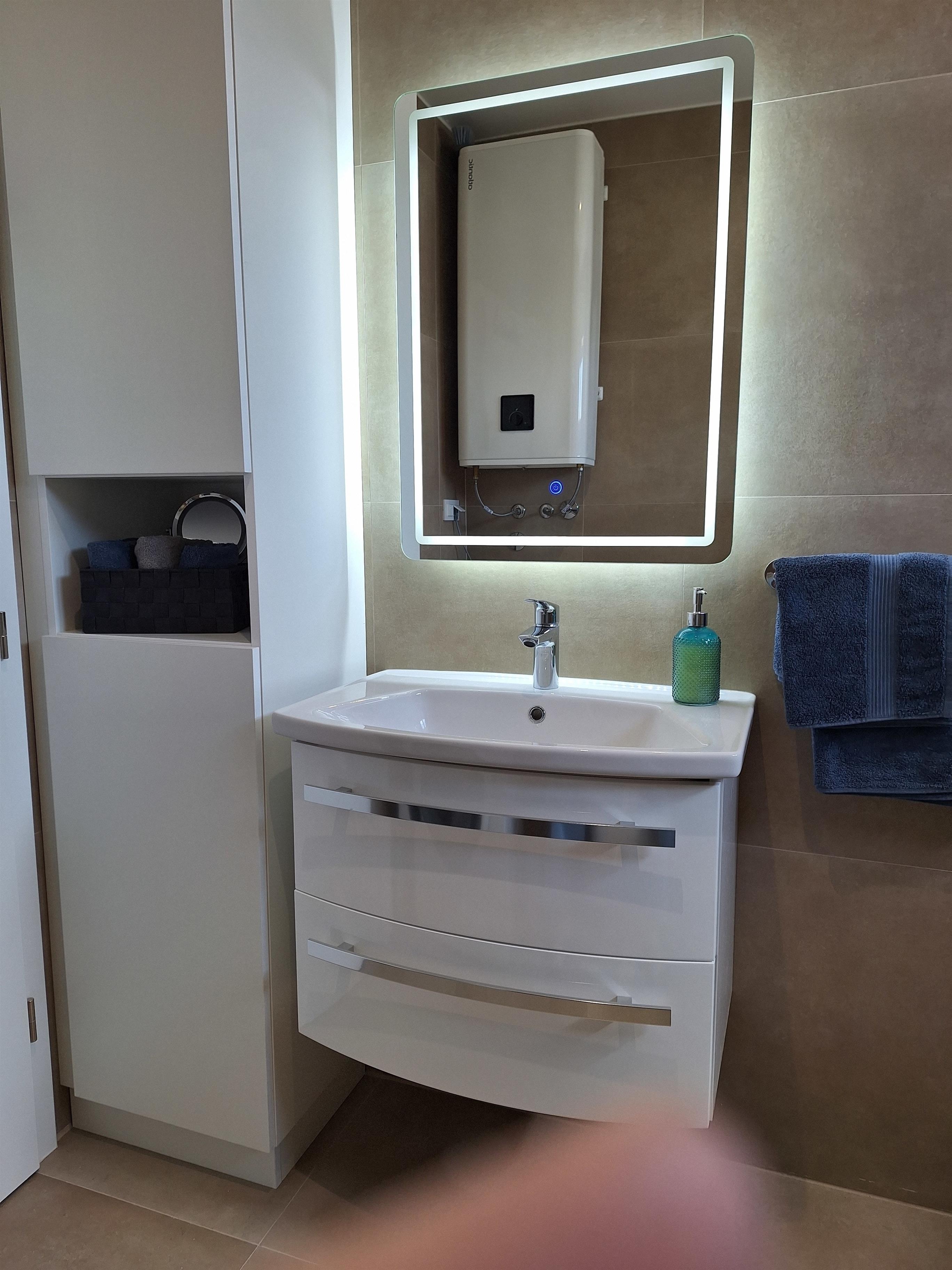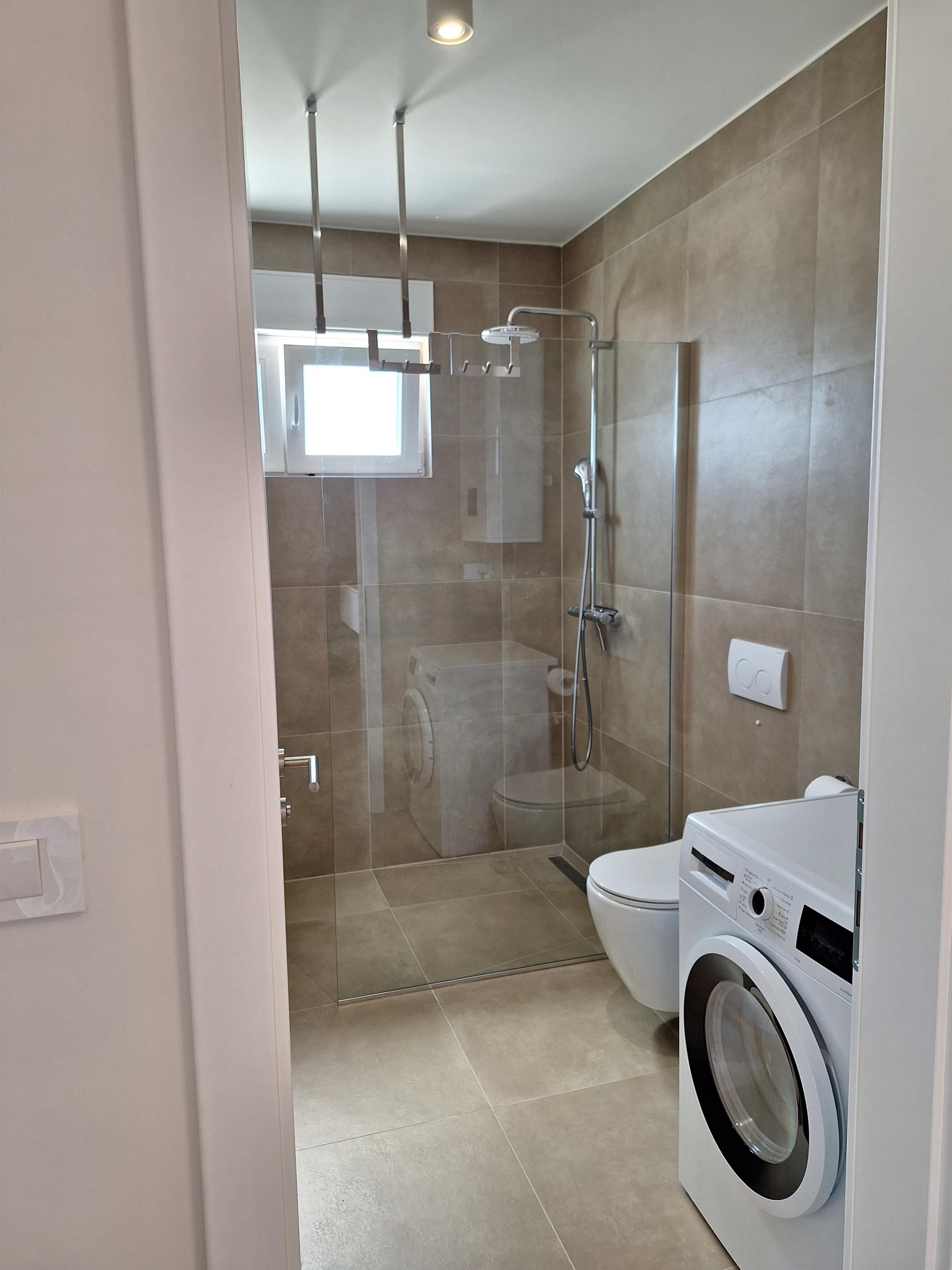-Bad mit hochwertiger Keramik, Fenster, beleuchtetem Spiegel, Waschmaschine,