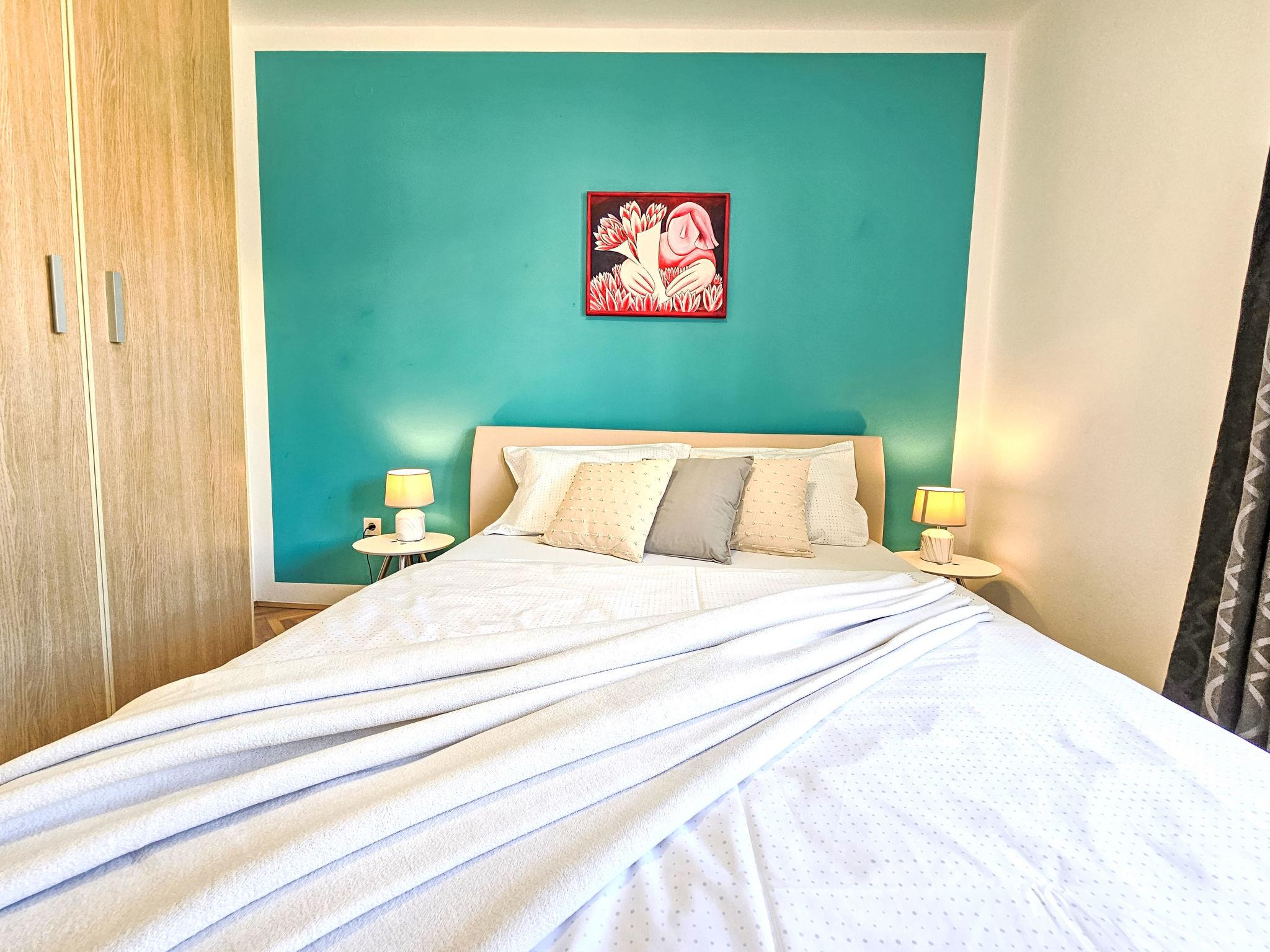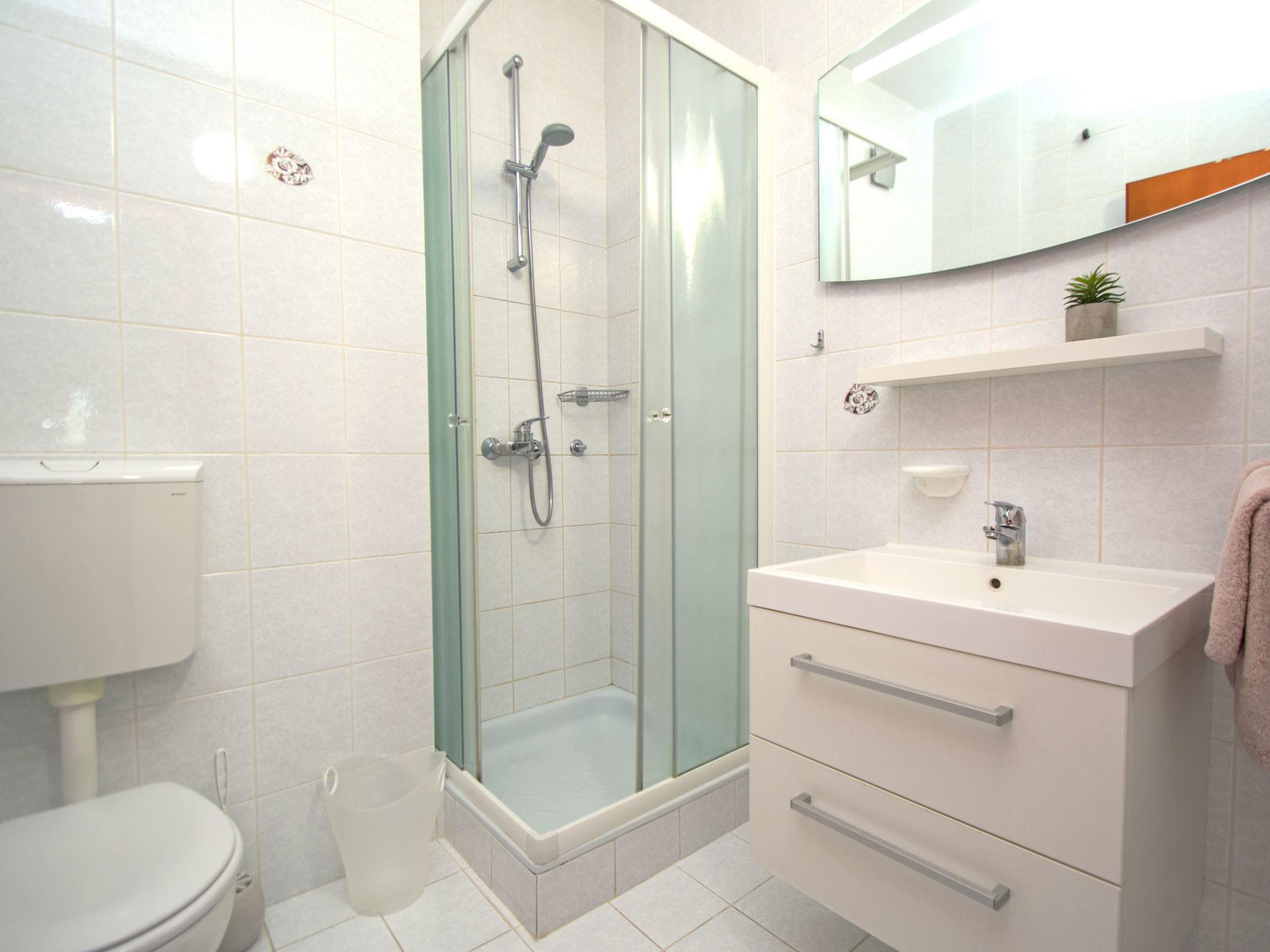 2-room apartment 30 m2, on the ground floor. Tasteful and cosy furnishings: living/dining room 15 m2 with 1 double sofabed (140 cm, length 200 cm), satellite TV (flat screen), air conditioning. Exit to the balcony. 1 room with 1 french bed (160 cm, length 200 cm). Exit to the balcony. Kitchenette (dishwasher, 2 induction hot plates, kettle, microwave, electric coffee machine). Shower/WC. No heating option. Balcony 8 m2. Terrace furniture. Facilities: Internet (WiFi, free).